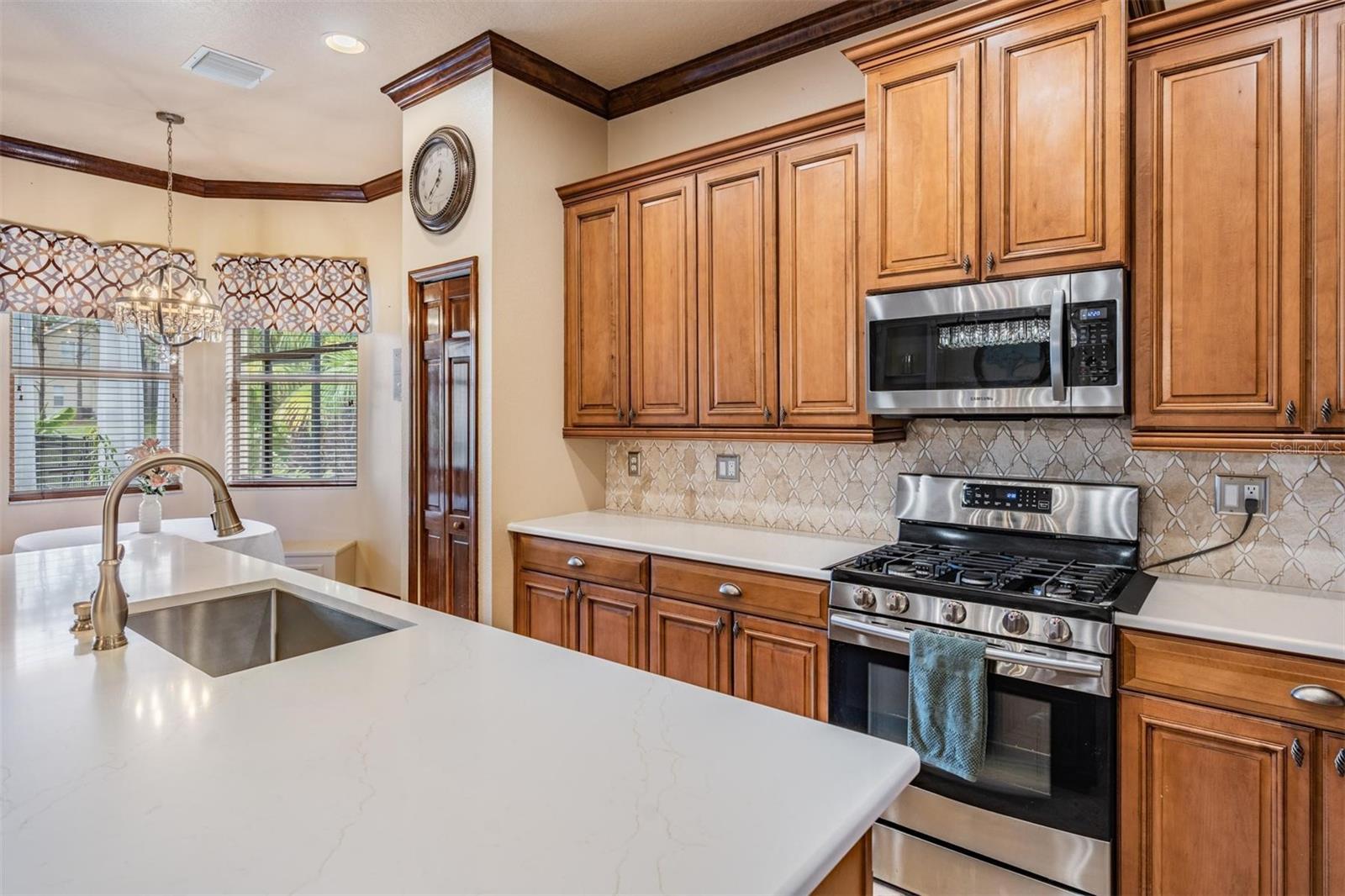 Bem-vindo ao 4400 English Turn Way-uma antiga casa de modelo deslumbrante e pronta para se mover na comunidade altamente desejável da Country Walk! Este lindamente mantido com 3 quartos e 2 banheiros combina as atualizações de conforto, estilo e inteligência para oferecer um estilo de vida elevado da Flórida. Passe pela porta da frente decorativa de vidro em uma planta baixa iluminada pelo sol com tetos abobadados, molduras de coroas e bancadas de pedra que falam com sabor refinado. A cozinha é o sonho de um chef - observando balcões de granito, armários de madeira de bordo, um elegante backsplash, despensa e utensílios de aço inoxidável, incluindo uma faixa de gás de propano. Existe até um espaço de alimentação aconchegante ideal para o café da manhã! O layout de quartos divididos garante a privacidade, com o retiro do proprietário com vanidades duplas, um closet com embutidos por armários por design e uma nova porta de celeiro para adicionar um charme. O segundo banho foi recentemente atualizado para um toque moderno. Relaxe em seu spa/jacuzzi particular, ou entretenimento, ou entretenam o lanai estendido e exibido com ventiladores internos, alto-falantes e pavimentadoras atualizadas (selado em março de 2025). Paisagismo tropical, uma varanda coberta e cercas de metal completam este oásis tranquilo. Outras vantagens incluem um novo telhado (dezembro de 2024), A/C (2016) com manutenção regular, aquecedor de água (2018) e novas luminárias na cozinha e no hall de entrada. Desfrute de tranquilidade com detectores de fumaça, fechaduras codificadas e um abridor de portas de garagem, além de som surround em toda a casa e lanai. Alguns móveis estão disponíveis para venda - apenas pergunte! Localizados na comunidade Country Walk, no estilo resort, os moradores desfrutam de acesso a uma piscina de luxo, clube, centro de fitness, quadras de tênis e basquete, playground e muito mais. O HOA inclui cabo, internet, manutenção externa do gramado, irrigação - tornando a vida aqui relaxante e conveniente. Esta casa tem tudo - estilo, substância e atualizações sérias. Não perca a chance de possuir esta jóia no coração de Wesley Chapel!