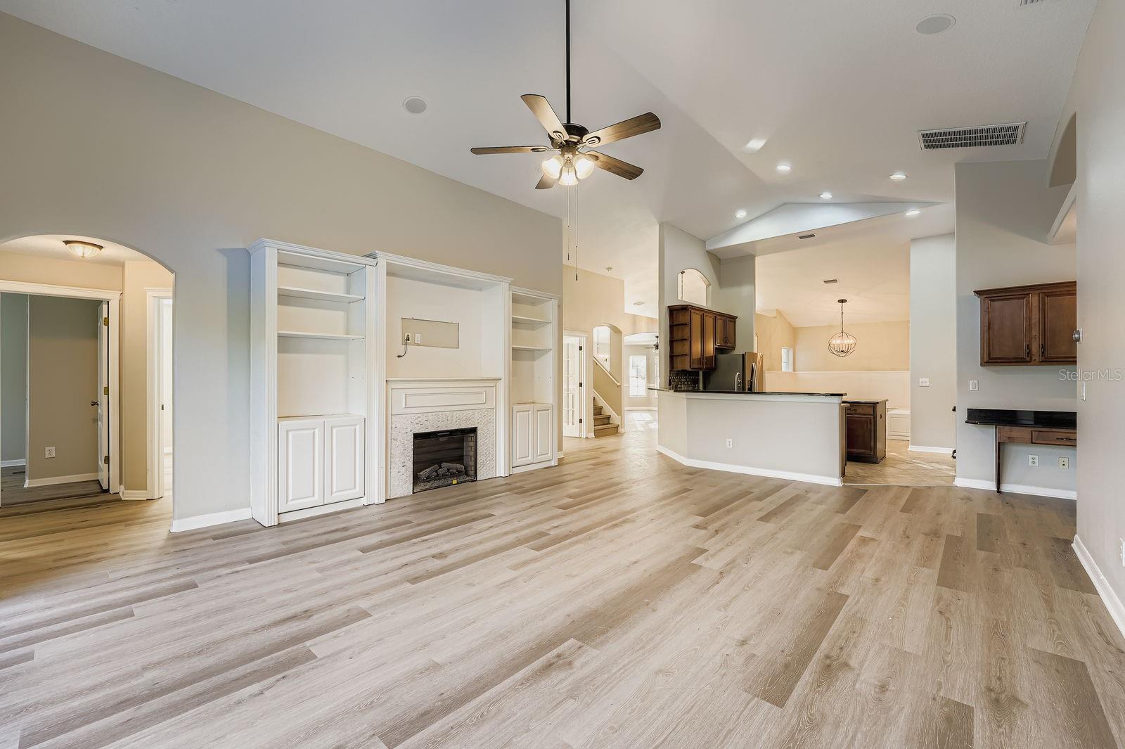 Bem-vindo a esta grande e iluminada casa de 5 quartos e 3 banheiros que oferece uma combinação perfeita de conforto, elegância e funcionalidade. Situada em um condomínio desejável com comodidades de primeira linha, esta residência foi projetada tanto para a vida cotidiana quanto para entretenimento sem esforço. Entre em um layout de conceito aberto com tetos altos, muita luz natural e elegantes pisos de cerâmica e madeira laminada por toda parte. O coração da casa é a espaçosa cozinha, completa com ricos armários em tons escuros, bancadas em granito e um conjunto completo de eletrodomésticos em aço inoxidável. Desfrute de um fluxo contínuo da cozinha para a sala de café da manhã - com bancos embutidos personalizados - e para a convidativa sala de estar, onde uma lareira aconchegante e estantes embutidas adicionam charme e aconchego. Grandes janelas emolduram vistas pitorescas do pátio fechado e da luxuosa piscina privativa, criando uma verdadeira experiência de vida interna e externa. Um dos três banheiros da casa oferece acesso direto e conveniente à piscina - perfeito para receber convidados. A ampla suíte principal é um retiro tranquilo, com tetos altos e luz natural abundante. O banheiro privativo é de tamanho generoso com pia dupla, banheira de imersão separada, box amplo e closet espaçoso. Quatro quartos adicionais no nível principal oferecem amplo espaço para a família ou convidados, com uma sala bônus versátil no andar de cima, ideal para home office, academia ou sala de mídia. Esta casa está localizada em uma vibrante comunidade HOA que oferece comodidades em estilo resort, incluindo um clube, duas piscinas comunitárias, um lago, quadras de tênis, playground e quadra de basquete. Não perca a oportunidade de possuir esta casa lindamente decorada em um bairro muito procurado. O vendedor NÃO está aberto ao financiamento do vendedor. O vendedor NÃO sabe a idade do telhado, AC ou outros sistemas.