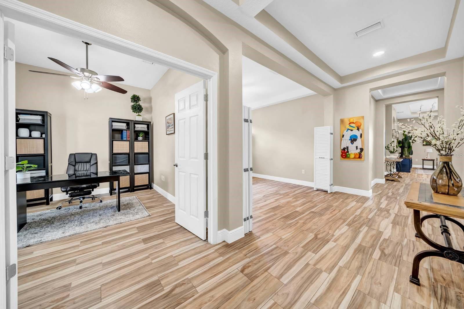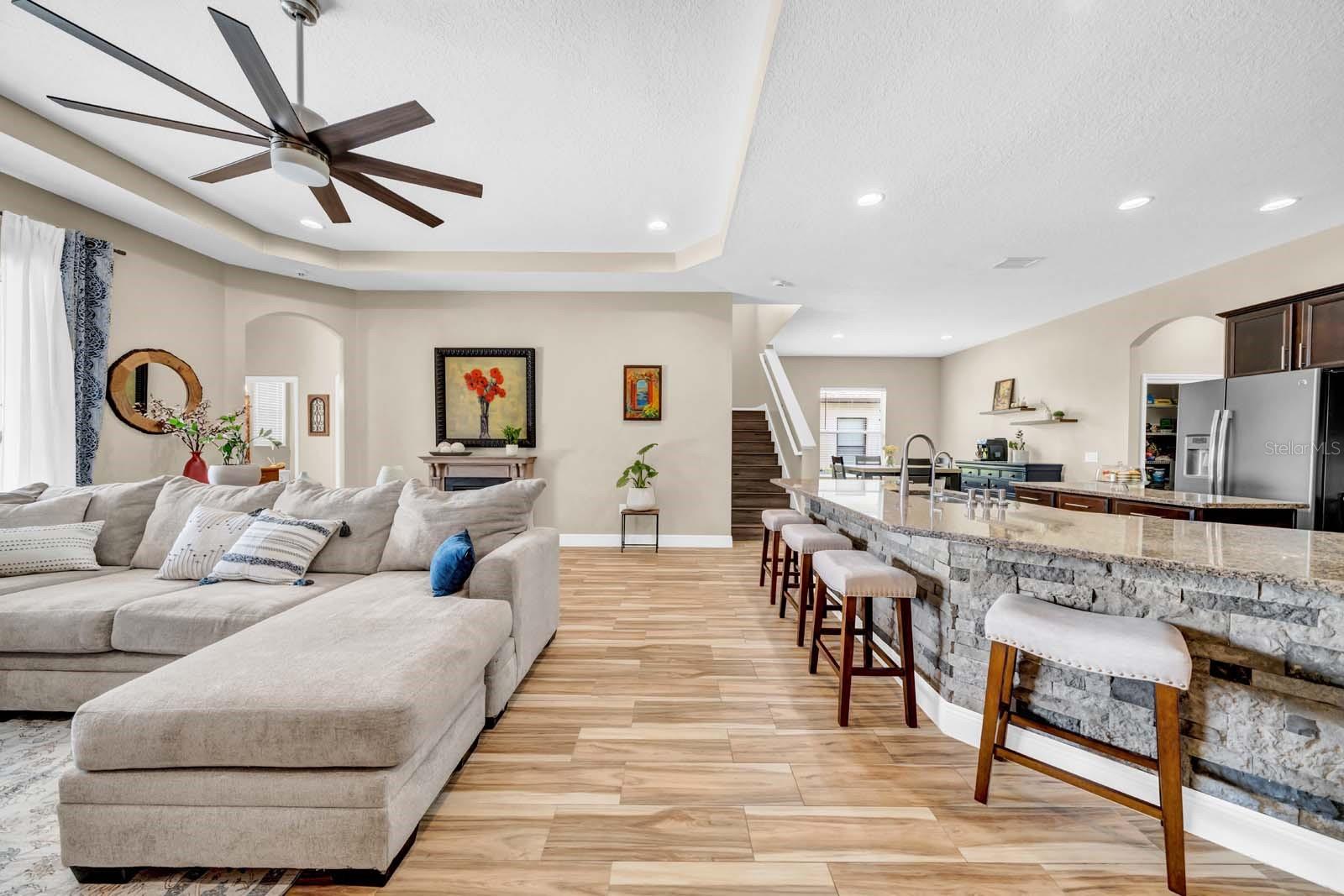 Casa de 5 quartos em Watergrass fechado - pátio grande, quintal privativo, localização privilegiada, preço abaixo das vendas recentes - Bem-vindo ao 32624 Summerglade Dr, uma casa de 5 quartos, 4 banheiros e mais de 3.500 pés quadrados no vilarejo fechado de Peregrina, Watergrass, em um lote de quase um quarto de acre, sem vizinhos traseiros. O primeiro andar possui um escritório dedicado com portas duplas, jantar formal com tetos retangulares e iluminação atualizada, um quarto de hóspedes com acesso ao banheiro completo e uma espaçosa suíte principal com tetos retangulares, área de estar, armário embutido personalizado com penteadeira de granito e um grande banheiro com pias duplas, área de maquiagem e box amplo. A cozinha oferece bancadas de granito, backsplash de mosaico, eletrodomésticos de aço inoxidável, despensa e uma grande ilha com balcão de café da manhã com detalhes em pedra, abrindo para uma área de estar iluminada com piso de cerâmica luxuoso, tetos de bandeja e iluminação embutida. O andar de cima inclui um grande loft, três quartos de bom tamanho, um banheiro Jack-and-Jill para dois e um banheiro completo separado para o terceiro. Todos os quartos e áreas de estar no andar de cima apresentam piso de pranchas de vinil de luxo atualizado, e a casa não tem carpete em lugar nenhum. Do lado de fora, você encontrará um pátio coberto e uma ampla área de estar externa de concreto em um quintal privativo totalmente cercado. As características adicionais incluem garagem para 3 carros, construção com certificação energética e acesso às comodidades em estilo resort do Watergrass, incluindo várias piscinas, clube, academia, playgrounds, quadras esportivas e trilhas. Localizado perto de Publix, Starbucks, Chick-fil-A, Epperson Lagoon, Wiregrass Mall e I-75. Com preço abaixo das vendas comparáveis recentes, esta casa oferece um valor excepcional em um condomínio fechado de Wesley Chapel. Agende sua exibição hoje.
