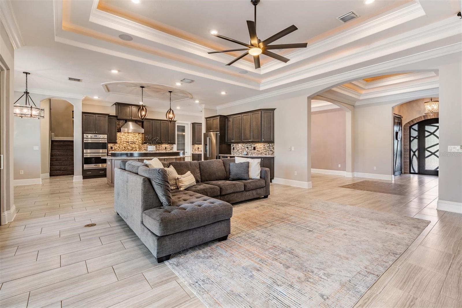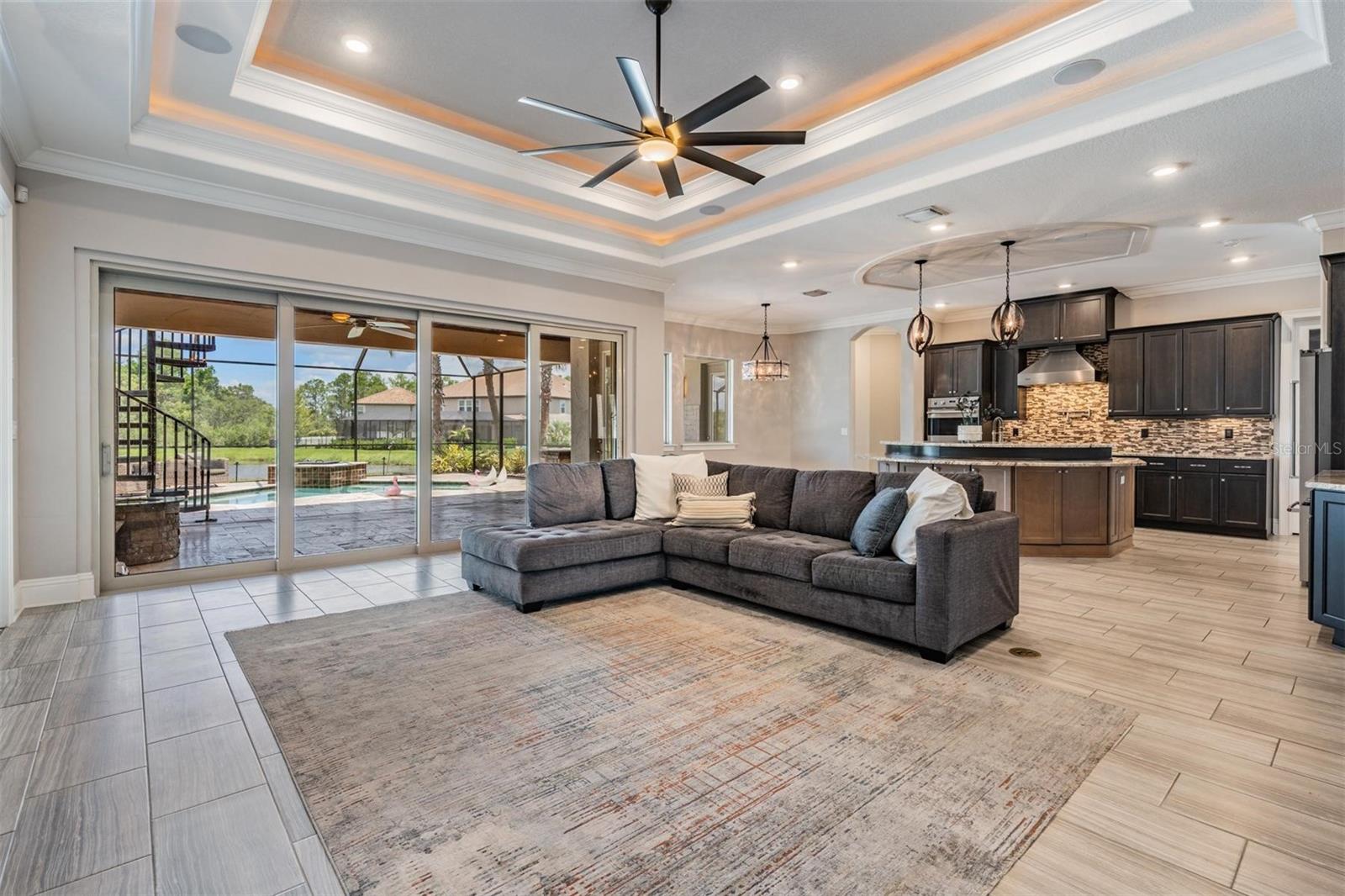 Casa de imóveis personalizada de uma espécie! Deve ver acreditar nesta casa altamente atualizada. Você vai adorar esta propriedade deslumbrante desde o minuto em que dirige pelos portões e puxa para o Circle Drive, com paisagismo tropical exuberante. Você se sentirá com a realeza ao se aproximar do castelo como a varanda da frente, também notará a requintada porta de ferro construída personalizada. Uma vez lá dentro, as coisas continuam ficando cada vez melhores! A atenção aos detalhes é superior ... confira as vigas de madeira, lindos tetos de bandeja iluminada e molduras pesadas da coroa. A porta personalizada do celeiro que adiciona privacidade ao seu escritório/covil é ladeada por persianas, piso de azulejos e tetos fabulosos da bandeja iluminada. Continue e você verá a espaçosa sala de jantar que manterá até a maior mesa para uma enorme reunião com facilidade, incluindo o bar de vinhos embutido com porta de vidro, armários e geladeira de vinho permitirá que você entre no estilo. A espaçosa sala da família possui tetos de bandeja dupla iluminada e está aberta à cozinha sonhadora, incluindo utensílios viking, incluindo 5 fogão a gás, preenchimento de panela, fornos duplos, gaveta de microondas, ventilação de capuz, iluminação de armários e armários abundantes, além de um enorme armazenamento extra sob a ilha central extra grande. Despensa com armários personalizados e iluminação automática. A suíte do proprietário é incrível, dois enormes armários personalizados embutidos com luzes automáticas, tetos de bandeja iluminados, piso de ladrilhos de madeira, luzes de leitura com comutação dupla e banho de banheiro privativo fabuloso! A porta do banheiro personalizada leva a um chuveiro com chuveiro de chuva, vários chuveiros com jatos corporais e um banco de bancada dentro do chuveiro! Banheira de imersão européia, pias duplas, armários abundantes e armário de água privada. Os quartos secundários também estão no primeiro andar, com um arranjo dividido para a privacidade. O quarto 2 e 4 também possui banheiros privativos incluídos e todos os armários são espaçosos. Esta é uma casa de um andar com um grande bônus no andar de cima, incluindo um banho completo, armário de mídia e portas francesas para uma varanda coberta e enjaulada com uma escada em espiral até a parte inferior coberta e exibida em Lanai. Desfrute de relaxar em seu novo retiro da Flórida em sua piscina/spa, que é aquecida e jato para relaxamento total. Pisos de travertino lindos na área de Lanai de tela extra grande, com muito espaço para entretenimento e grelhar na sua cozinha ao ar livre com espaço para preparar ou comer alimentos. Observe a vida selvagem na lagoa e a conservação enquanto desfruta do seu café da manhã ou relaxa à noite com um copo de vinho. Relaxe nesta casa deslumbrante que tem tudo! Características do bairro: piscina de entrada zero em estilo resort e zona de respingo, piscina olímpica de 6 ln jr e piscina por pavilhão. Fitness Center, Club House, Tênis e quadras de basquete, parque de cães grandes e pequenos, quadra de respingos, 2 grandes parques com playground Plus, quadras esportivas privadas com quadra de playground e basquete em cada vila. Excelente localização com um novo Publix, Florida Medical Clinic, uma nova creche, Starbucks Circle K, Chick-fil-A e mais vindo do lado de fora da entrada do bairro. Perto de ótimas escolas, faculdade comunitária, hospitais, wire grama shopp, tampa premium outlet shopp, pista de gelo, clube de sams, costco, cinema e muito restaurante. Fácil acesso ao I75, 275, Tampa Inteacional Airport e Downtown Tampa. O CDD já está incluído no valor do imposto.