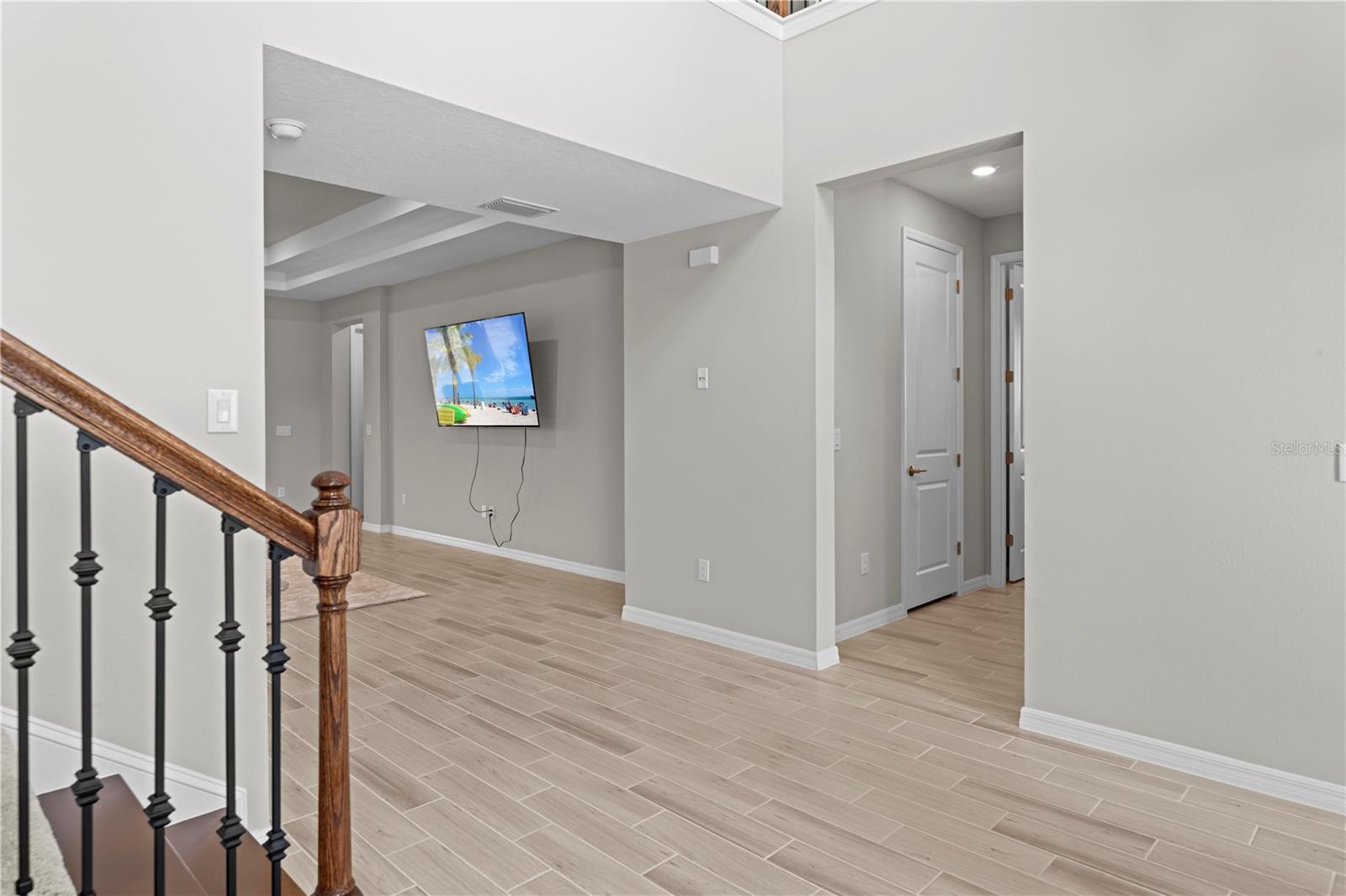 Uma ou mais fotos foram praticamente encenadas. Experimente luxo e conveniência neste novo modelo Taylor Morrison Tortola, oferecendo 5 quartos, 4,5 banheiros e uma garagem de 3 carros em um lote premium sem vizinhos frontal ou traseiro. Localizada na comunidade de pouso de River Gated de Wesley Chapel, esta casa foi vivida levemente há apenas 3 meses - o vendedor está se mudando para uma transferência de emprego, fazendo desta a oportunidade de se mudar dentro de 40 dias! Com 3.461 pés quadrados de espaço bem projetado, esta casa recursos: Dois quartos do primeiro andar, incluindo uma espaçosa suíte de proprietário com vistas para lago, banheiro semelhante ao spa e armários duplos de walk-in Cozinha de um chef com bancadas de quartzo, fogão a gás, fornos duplos, ilha de grandes dimensões e despensa Áreas de estar e jantar de conceito aberto com tetos altos e luz natural abundante Lanai de tela panorâmica com uma cozinha externa totalmente equipada, ideal para entretenimento ou relaxamento No andar de cima do andar de cima e da sala de mídia, além de três quartos de tamanho generoso e dois banheiros completos. As atualizações adicionais incluem a barra seca/úmida na cozinha, um lanchonete estendido, um sistema de filtragem de água doméstica inteira, calhas e um carregador de carro elétrico na garagem. Desfrute de vistas pacíficas da lagoa e da área de conservação, sem vizinhos traseiros - oferecendo rara privacidade e tranquilidade. O River Landing oferece comodidades no estilo resort, incluindo um clube, piscina, tênis e quadras de pickleball, parque de cães, playground, academia ao ar livre e trilhas cênicas. Minutos das escolas com melhor classificação, tomadas premium de Tampa, shopping de arame, restaurantes e grandes rodovias. Não espere para construir-esta casa de chave está pronta agora!