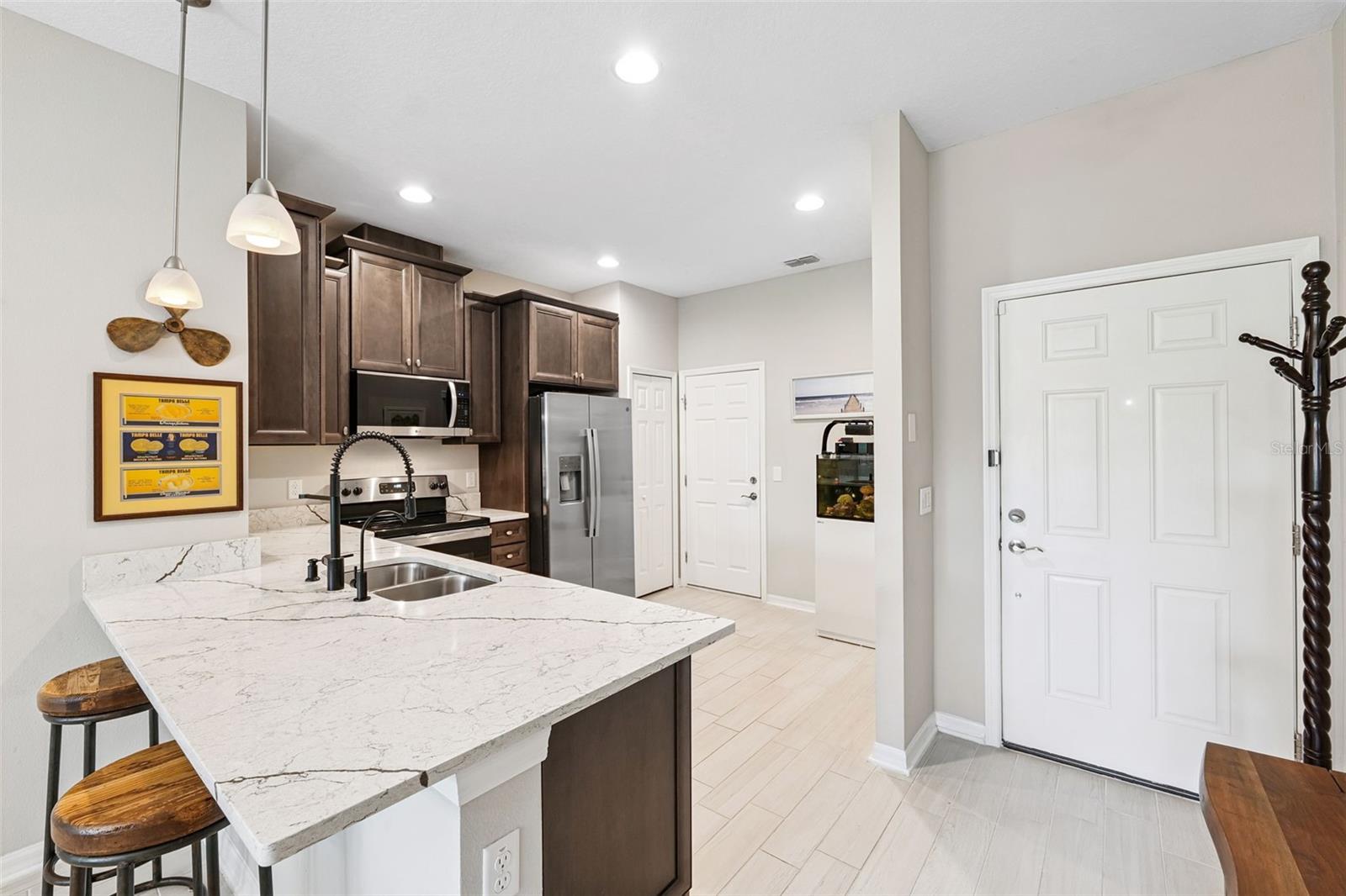 Bem-vindo ao Windermere Estates Townhomes - onde o conforto encontra a elegância moderna no coração de Wesley Chapel. Este modelo Andover II lindamente projetado oferece a combinação perfeita de estilo e funcionalidade, com 2 quartos, 2,5 banheiros e um loft versátil que pode ser facilmente convertido em um terceiro quarto ou escritório privado. Entre em um hall de entrada acolhedor que leva a uma cozinha atualizada, completa com eletrodomésticos de aço inoxidável - incluindo uma máquina de lavar louça e micro-ondas mais recentes - bancadas de quartzo e armários grandes, ideais para refeições caseiras. Um conveniente bar de café da manhã se abre para uma espaçosa área de jantar, perfeita para entretenimento, com um lavabo próximo para os hóspedes. A sala de estar de conceito aberto é ampla e iluminada, destacada pelo piso de pranchas de vinil premium e portas de vidro deslizantes que levam a um pátio tranquilo no quintal - seu oásis privado para o café da manhã ou relaxamento à noite. A garagem anexa para um carro oferece acesso interno, para que você possa ficar seco enquanto descarrega mantimentos em um dia chuvoso. No andar de cima, você encontrará um grande loft bônus que oferece infinitas possibilidades – use-o como recanto de leitura, espaço de trabalho ou converta-o em um terceiro quarto. O armário da lavanderia com localização central acrescenta comodidade, enquanto o corredor leva a um banheiro completo bem equipado com bancadas em granito, azulejos brancos do metrô e acabamentos em preto fosco. Um generoso quarto secundário é ideal para hóspedes ou crianças. No final do corredor, a suíte privada do proprietário possui dois closets e um banheiro privativo tipo spa com chuveiro amplo, pia dupla, vaso sanitário privativo e armário de roupa de cama separado. Destaques da comunidade e localização: Windermere Estates é uma comunidade tranquila e bem conservada, localizada a poucos minutos de tudo o que faz de Wesley Chapel um dos destinos mais procurados da Flórida. Aproveite: A lagoa cristalina Epperson (natação, caiaque, paddleboarding). The Shops at Wiregrass e KRATE at The Grove para refeições, compras e entretenimento. Florida Hospital Center Gelo, parques, trilhas e reservas naturais. Escolas de primeira linha e fácil acesso à I-75 e SR-56 para deslocamento diário. Quer você queira relaxar ou se manter ativo, este local oferece tudo isso. Não perca a oportunidade de personalizar esta linda moradia. Confira o Tour Virtual Interativo 3D e agende sua exibição privada hoje mesmo!