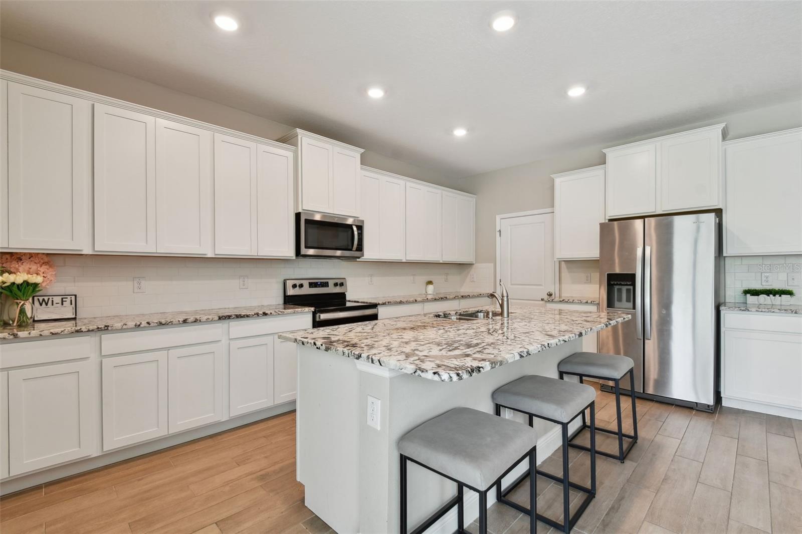 MELHORIA DE PREÇO! Espaçosa casa de 5 quartos com garagem para 3 carros no Union Park! Bem-vindo a esta casa de dois andares com 5 quartos e 3 banheiros, lindamente conservada, localizada na altamente desejável comunidade de Union Park. Construída em 2021 e oferecendo 3.113 pés quadrados aquecidos, esta casa combina design moderno com vida funcional. Ao entrar, você é recebido por um espaço de escritório flexível com portas de vidro, atualmente utilizado como sexto quarto. O corredor de entrada possui um armário de casacos e um armário de armazenamento separado. Continue até a ampla cozinha e área de estar de conceito aberto, perfeita para entretenimento. A cozinha possui bancadas de granito, eletrodomésticos de aço inoxidável, armários abundantes e uma espaçosa despensa - ideal para qualquer chef caseiro. O andar de baixo também inclui um quarto de hóspedes e banheiro completo, perfeito para visitantes ou residências multigeracionais. No andar de cima, você encontrará quatro quartos adicionais, todos com closets, e um grande loft/sala de jogos perfeito para home office, centro de mídia ou área de recreação. A suíte principal oferece um retiro sereno com closets duplos, banheira de imersão e chuveiro separado com box de vidro. Convenientemente, a lavandaria também se encontra no segundo andar, juntamente com arrumação extra em toda a casa e na espaçosa garagem para 3 carros. Situado na procurada comunidade de Union Park, você desfrutará de comodidades em estilo resort, incluindo piscina, splash pad, playgrounds, trilhas e muito mais, tudo cercado por belezas naturais. Não perca a oportunidade de possuir esta casa deslumbrante em um dos bairros mais desejáveis de Wesley Chapel!