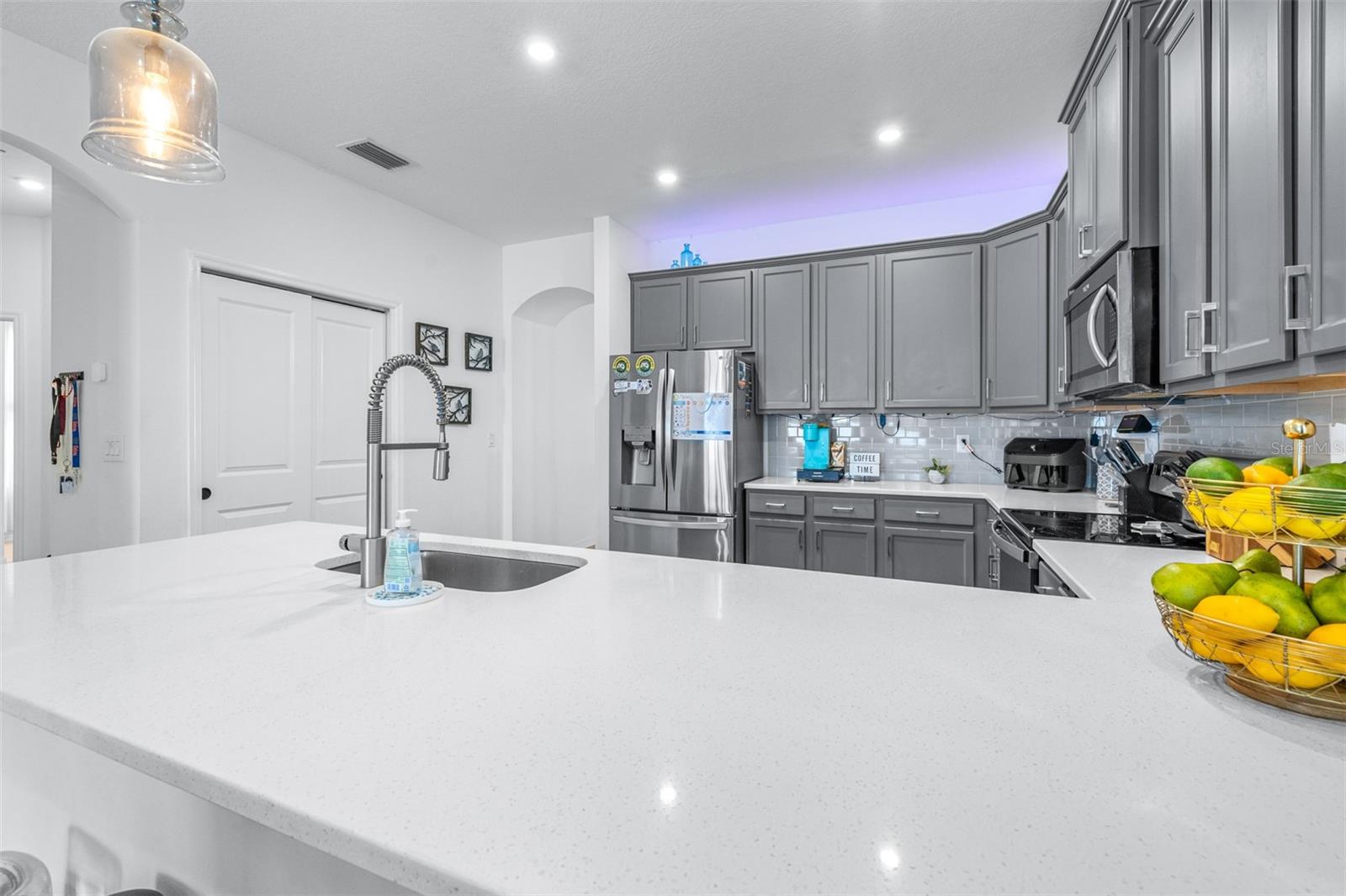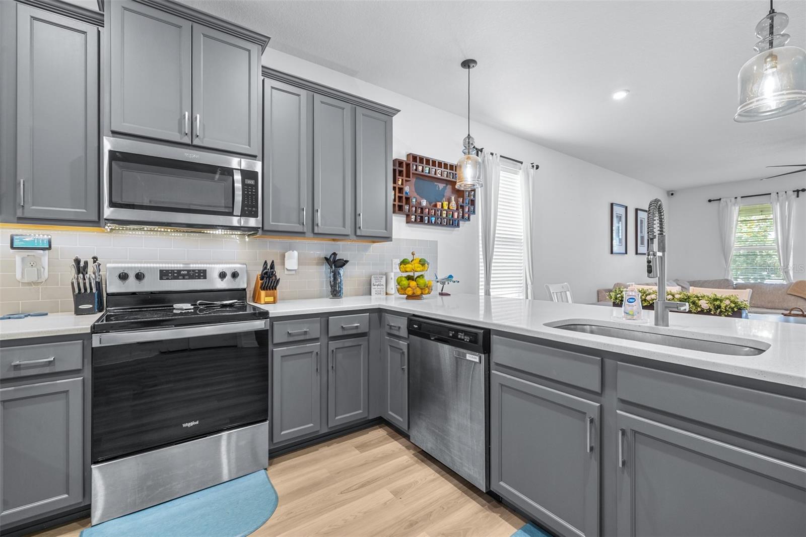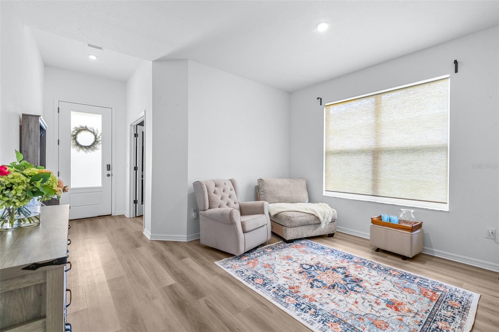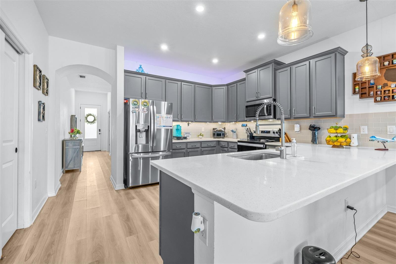 Localizado na comunidade desejável de capim-aquático, esta casa construída em 2021 inclui um carrinho de golfe elétrico 2021 e um carregador EV instalado em garagem com qualquer oferta aceita! Esta casa de 3 quartos e 2 banheiros possui uma planta baixa, perfeita para famílias. Uma grande sala para refeições e reuniões de família fica no centro da casa. Espaços adicionais incluem uma sala flexível versátil, um escritório tranquilo e um pátio exibido perfeito para apreciar a vista do vasto quintal vedado e vedado. A cozinha possui armários de madeira de 42 polegadas, bancadas de quartzo, utensílios de aço inoxidável e uma conveniente barra de café da manhã. A grande sala oferece espaço suficiente para uma mesa de jantar com acomodações de 6 a 8 pessoas, ao lado de seus móveis favoritos da sala de estar. O banheiro principal está equipado com um chuveiro, um chuveiro de chuva, um chuveiro de varinha, pias duplas e um armário de água privado. O banho secundário inclui uma combinação de barra de banheira para versatilidade. O piso de aparência de madeira laminado se estende por todas as principais áreas de estar, com quartos e ladrilhos acarpetados nos banheiros, cozinha e lavanderia. O espaço de lavanderia oferece armários embutidos para armazenamento extra. A garagem está cuidadosamente equipada com prateleiras suspensas, um carregador Tesla EV e escadas embutidas para o sótão. O exterior possui novas luzes de LED de Govee embutidas, permitindo que você ilumine sua casa em qualquer cor que você escolher. Venha conferir e aproveitar o carrinho de golfe para entregar/pegar na escola ou ir para o Publix próximo! Esta casa fica em um dos principais distritos escolares do condado de Pasco e está convenientemente localizado perto de tudo o que a Wesley Chapel tem a oferecer. A apenas 10 minutos da I-75, você pode chegar a Tampa em cerca de 30 minutos.