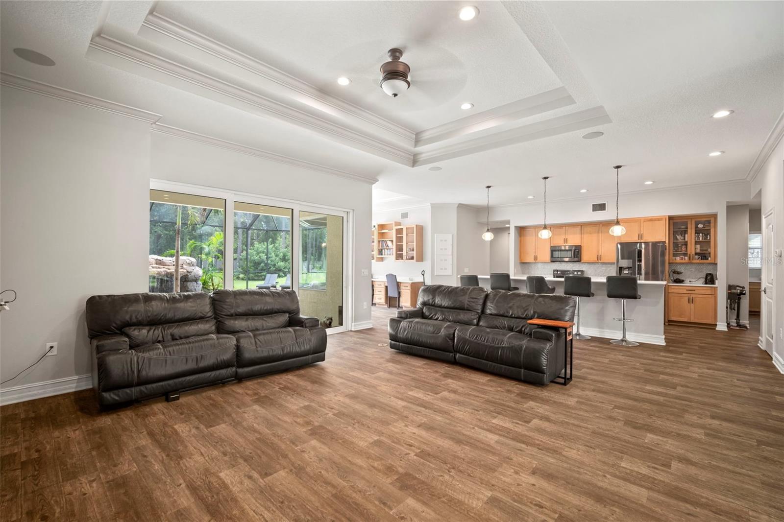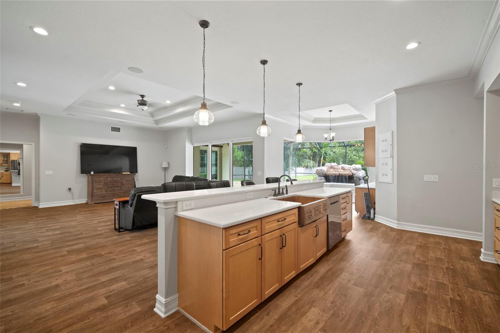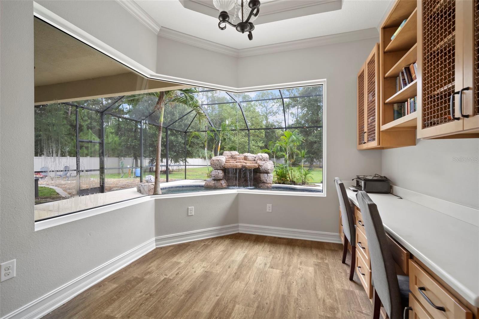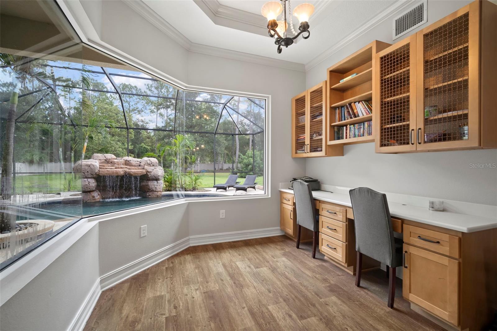 Viva como a realeza nesta impressionante Wesley Chapel Pool Home! Experimente o luxo e a funcionalidade nesta espaçosa e dividida a planta baixa, com tetos de bandeja crescente e três asas particulares projetadas para conforto e privacidade. O layout de conceito aberto apresenta uma grande área comum com uma cozinha gourmet, bancadas de quartzo, utensílios de aço inoxidável cinza e uma ilha de grandes dimensões que flui para a ampla sala da família, a área de jantar formal e o recanto do café da manhã com mesas embutidas. Portas deslizantes de bolso abertas a um paraíso da piscina rastreada tropical com cachoeira, gruta e paralisação de praia. A suíte master oferece acesso à piscina, armários duplos e um banheiro semelhante ao spa com um chuveiro imenso, pias duplas e banheiro privativo. Uma suíte de convidado fica na frente da casa com seu próprio banheiro, enquanto uma terceira ala possui um quarto adicional com um grande closet, um banho completo (também servindo a piscina) e uma sala ou escritório de bônus com temperatura controlada. Um verdadeiro destaque é a enorme garagem de mais de 6 carros, com tetos altos o suficiente para elevadores, pia de utilidade, sótão de caminhada com amplo armazenamento e uma porta traseira para carrinho de golfe ou equipamento de gramado. As vantagens adicionais incluem uma lavanderia espaçosa com pia e área de dobragem. A poucos minutos da I-75, os lojas da Wiregrass, Tampa Premium Outlets, Busch Gardens, USF e muito mais!