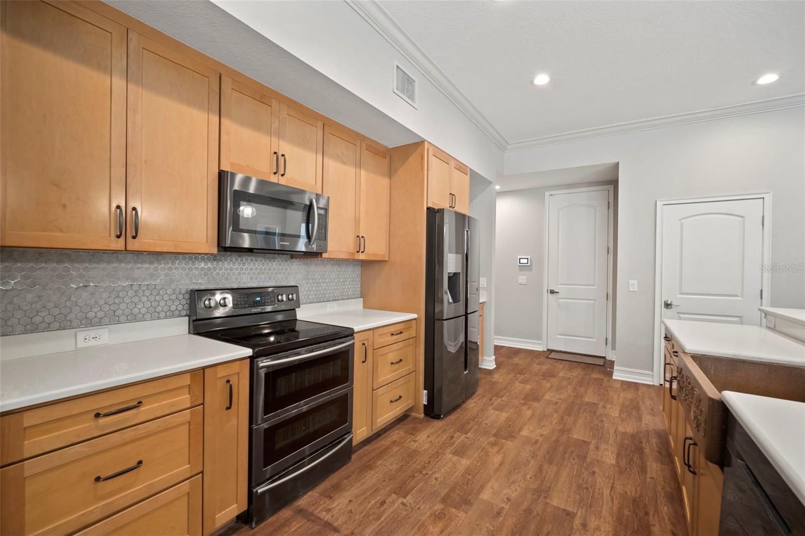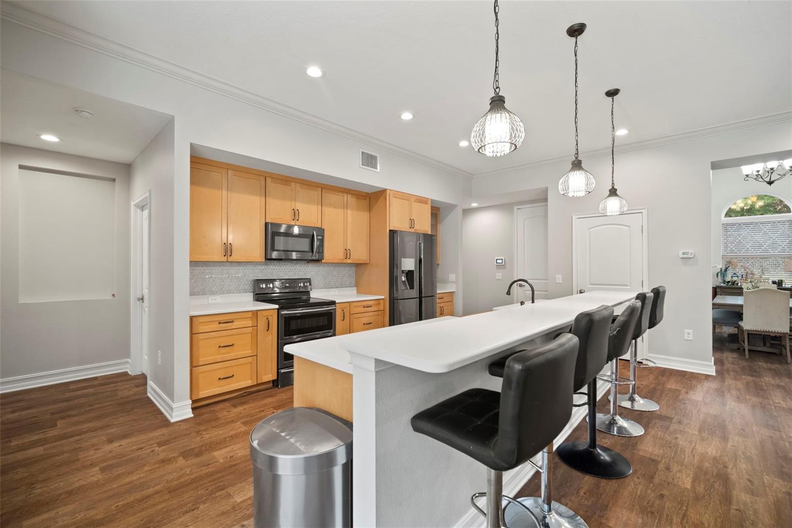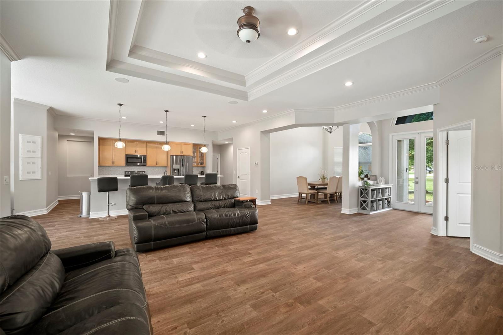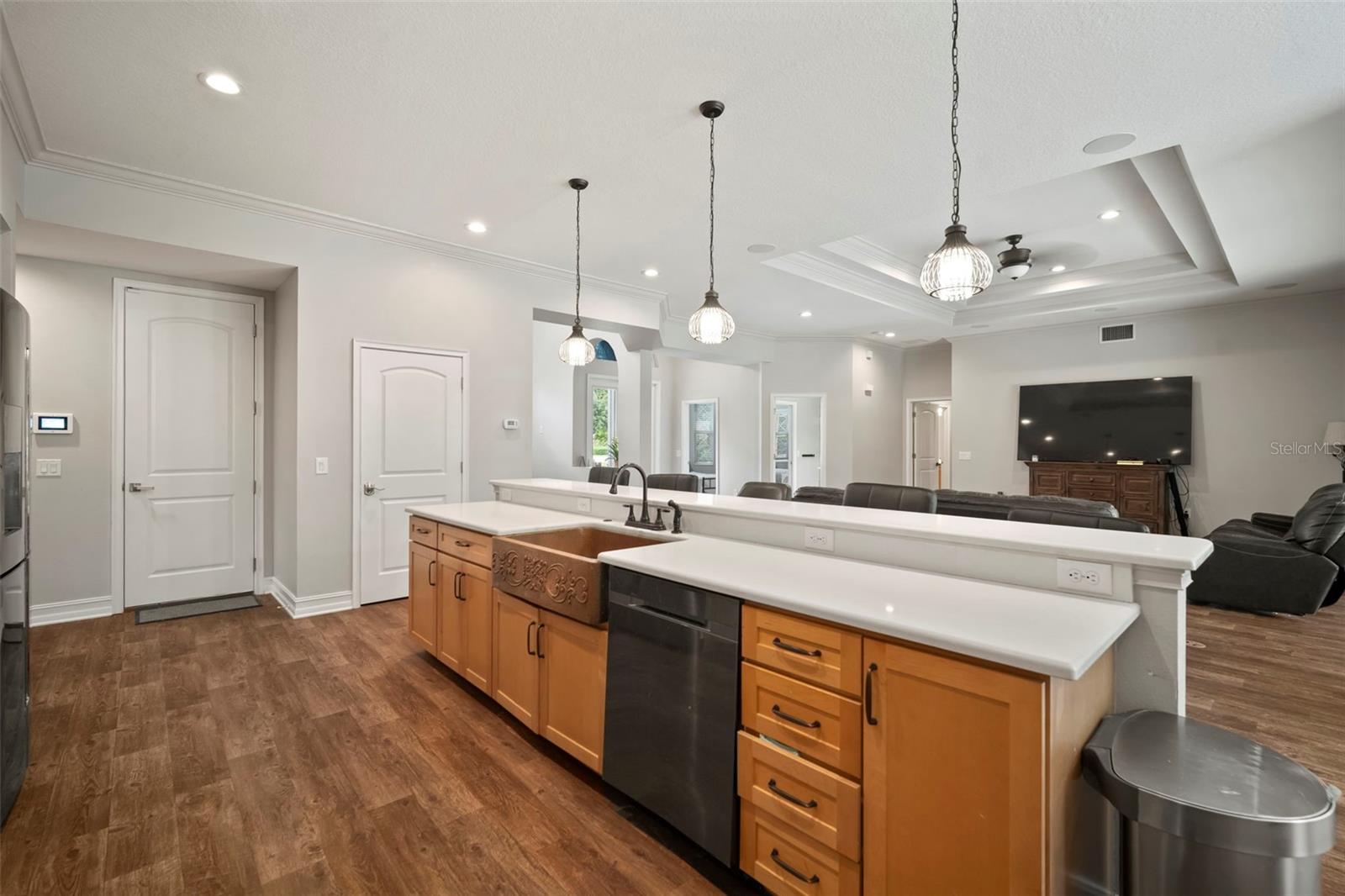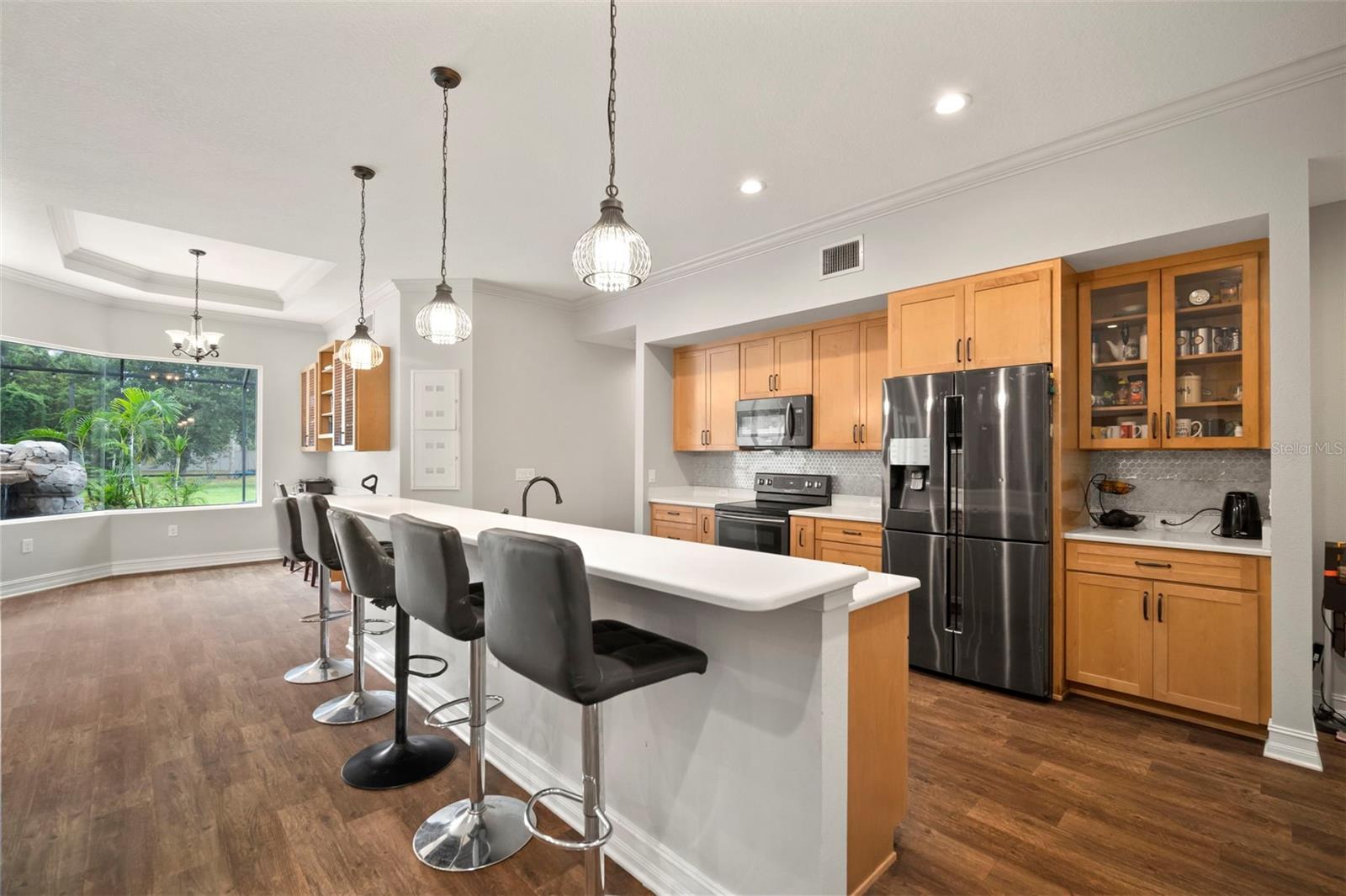 Viva como a realeza nesta impressionante Wesley Chapel Pool Home! Experimente o luxo e a funcionalidade nesta espaçosa e dividida a planta baixa, com tetos de bandeja crescente e três asas particulares projetadas para conforto e privacidade. O layout de conceito aberto apresenta uma grande área comum com uma cozinha gourmet, bancadas de quartzo, utensílios de aço inoxidável cinza e uma ilha de grandes dimensões que flui para a ampla sala da família, a área de jantar formal e o recanto do café da manhã com mesas embutidas. Portas deslizantes de bolso abertas a um paraíso da piscina rastreada tropical com cachoeira, gruta e paralisação de praia. A suíte master oferece acesso à piscina, armários duplos e um banheiro semelhante ao spa com um chuveiro imenso, pias duplas e banheiro privativo. Uma suíte de convidado fica na frente da casa com seu próprio banheiro, enquanto uma terceira ala possui um quarto adicional com um grande closet, um banho completo (também servindo a piscina) e uma sala ou escritório de bônus com temperatura controlada. Um verdadeiro destaque é a enorme garagem de mais de 6 carros, com tetos altos o suficiente para elevadores, pia de utilidade, sótão de caminhada com amplo armazenamento e uma porta traseira para carrinho de golfe ou equipamento de gramado. As vantagens adicionais incluem uma lavanderia espaçosa com pia e área de dobragem. A poucos minutos da I-75, os lojas da Wiregrass, Tampa Premium Outlets, Busch Gardens, USF e muito mais!