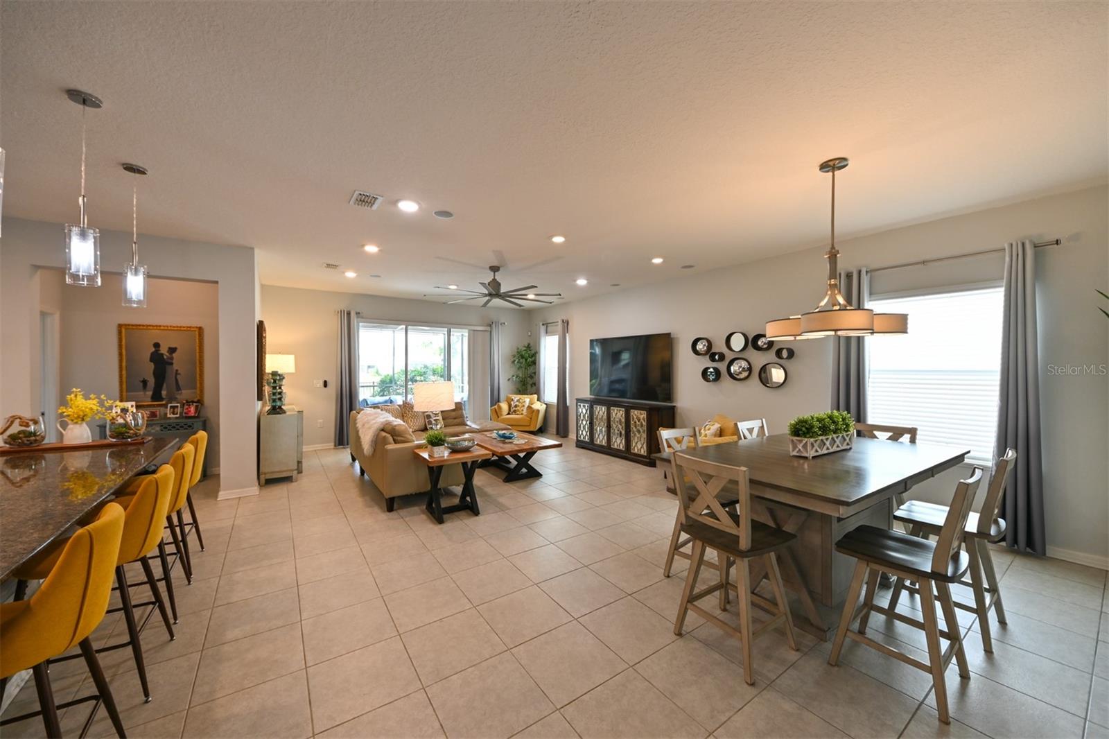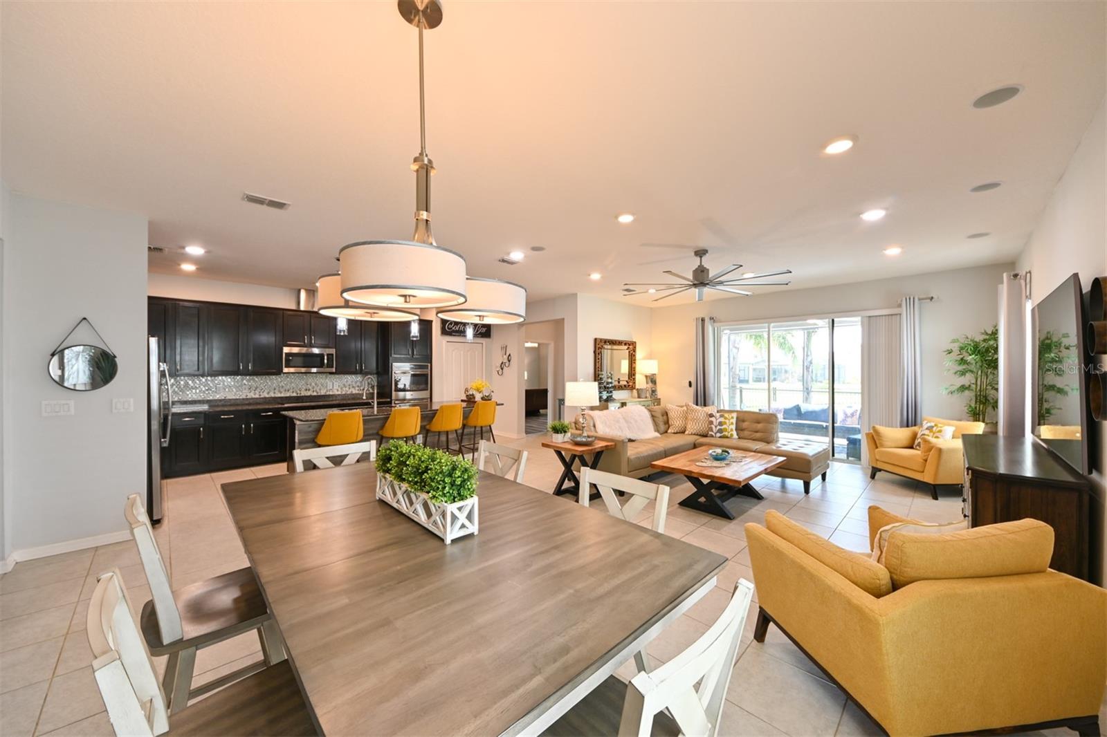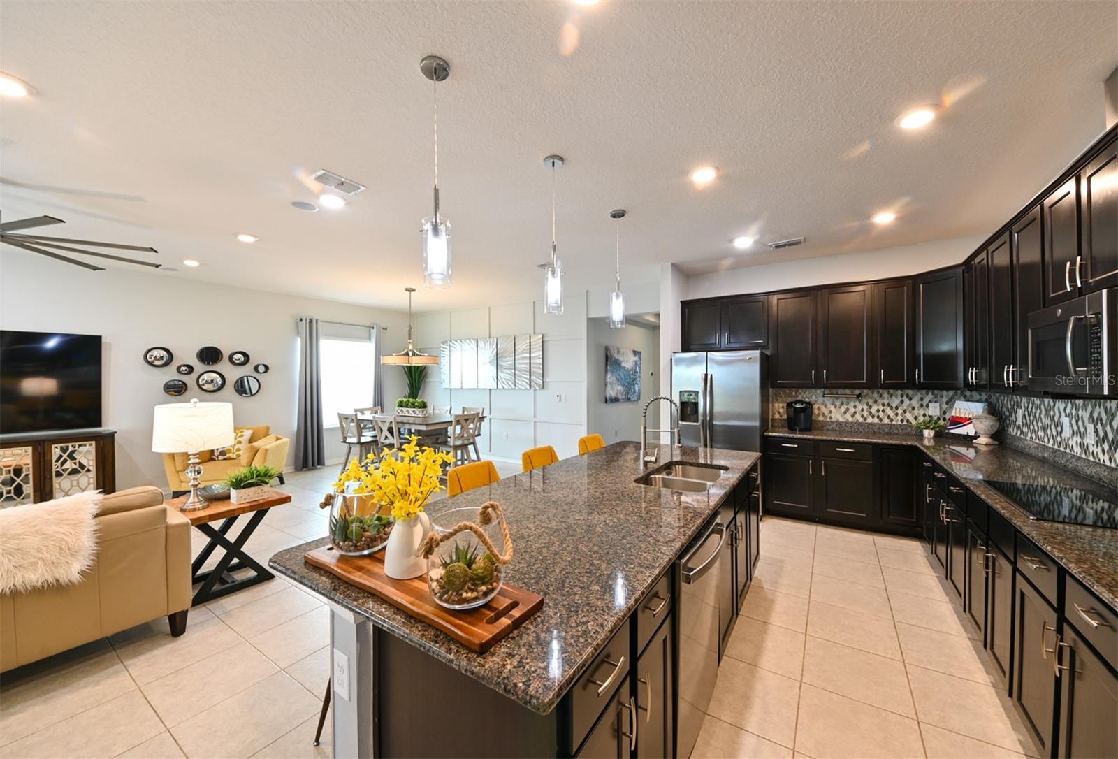 **Garantia residencial completa Sheild incluída** Bem-vindo a esta bela e moderna casa térrea de 4 quartos/2 banheiros localizada no coração de Epperson Ranch, a primeira comunidade Crystal Lagoon nos Estados Unidos. Esta propriedade deslumbrante oferece uma combinação perfeita de privacidade, luxo e conveniência, tudo dentro de um bairro vibrante, em estilo resort e conectado. O layout de conceito aberto apresenta uma espaçosa área de estar e jantar, privada e convidativa, ideal para entreter ou relaxar com a família. A grande sala fica na parte de trás da casa, proporcionando paz e tranquilidade, além de uma vista deslumbrante de um milhão de dólares através de uma ampla porta de vidro deslizante de três painéis. Saia e desfrute de um lago sereno cercado por palmeiras exuberantes e uma paisagem tropical que exige pouca manutenção e é visualmente deslumbrante. À noite, a iluminação externa transforma o quintal em um oásis tropical, iluminando lindamente as palmeiras e as plantações para criar uma atmosfera relaxante de resort. A grande varanda coberta é perfeita para viver ao ar livre e está equipada com uma lareira aconchegante e um espaço dedicado para a TV de tela plana, tornando-a um retiro acolhedor durante todo o ano. O quintal totalmente vedado é perfeito para privacidade, animais de estimação e oferece muito espaço para adicionar uma piscina, se desejar! Para maior tranquilidade, o Smart Home System inclui 8 câmeras de segurança externas, sensores de segurança com fio nas janelas e portas. A casa foi atualizada com calhas e calhas completas e tem construção de blocos sólidos, janelas contra impacto de furacão e sistema de pragas na parede TAEXX instalado. O interior da casa foi projetado pensando no conforto e no estilo. A Cozinha Gourmet possui Bancada em Granito, Ilha Grande, Forno Duplo Convecção, Cook-top de Vidro, Eletrodomésticos em Aço Inox e um layout espaçoso, ideal para o dia a dia ou para receber hóspedes. A área de jantar inclui uma parede decorativa moderna que adiciona charme ao espaço. A sala de estar está conectada para som surround com alto-falantes de teto e conexões de amplificador/alto-falante instaladas profissionalmente na parede e inclui uma tomada oculta/embutida atrás do suporte de TV de tela plana para uma aparência limpa e simplificada. Internet e cabo incluídos no HOA! A Suíte Primária oferece um retiro privado com um espaçoso closet e um luxuoso banheiro privativo com duas pias embutidas, um grande chuveiro com box amplo, banheira de imersão e um vaso sanitário privativo. Os três quartos adicionais são de tamanhos generosos e apresentam luxuoso piso de pranchas de vinil, enquanto as principais áreas de estar têm acabamento em cerâmica de 17 polegadas. Ambos os banheiros foram cuidadosamente projetados para complementar a estética moderna da casa. A garagem para dois carros inclui acesso atualizado ao sótão por escada suspensa de alumínio que leva a uma grande área de armazenamento com piso - ideal para organizar itens sazonais, ferramentas ou necessidades adicionais de armazenamento doméstico. Localizada a apenas uma curta viagem de carrinho de golfe está a deslumbrante Crystal Lagoon, que oferece oito acres de água azul cristalina para natação, paddle boarding, caiaque e muito mais. Os residentes desfrutam de acesso exclusivo a um bar aquático, restaurante no local, cabanas privadas e eventos comunitários durante todo o ano. Nas proximidades, King Lake acrescenta ainda mais ao estilo de vida, com pores do sol pitorescos e um clube comunitário perfeito para reuniões privadas. Esta casa é uma rara oportunidade de viver em uma das comunidades mais inovadoras e emocionantes do país, oferecendo uma vida em estilo resort a poucos passos da sua porta.