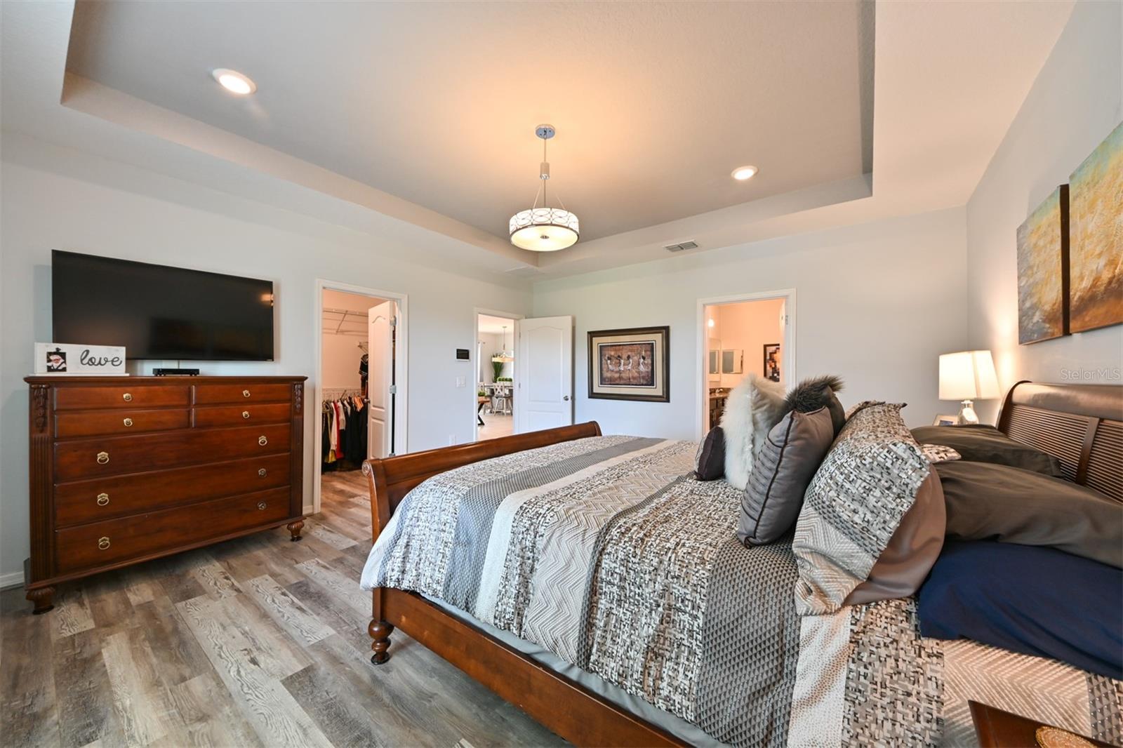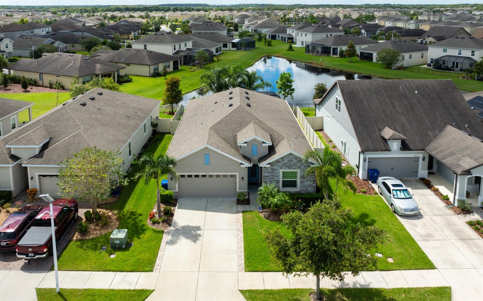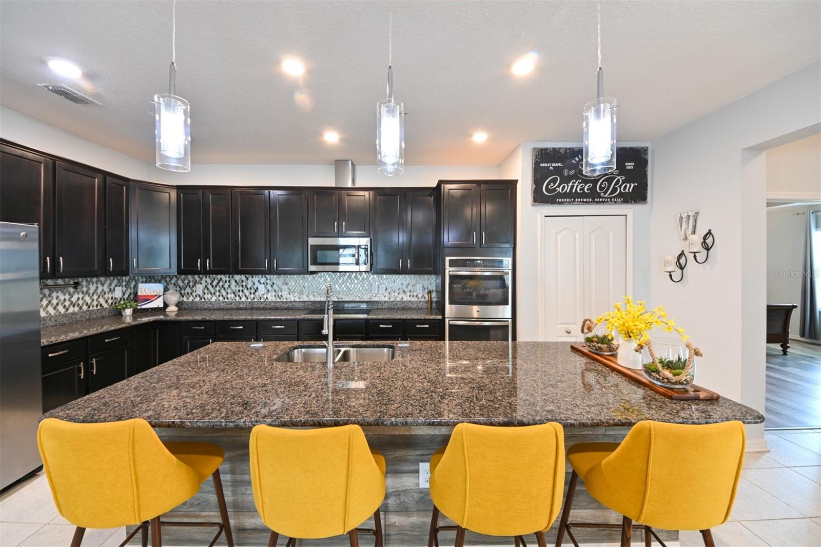 **Garantia residencial completa Sheild incluída** Bem-vindo a esta bela e moderna casa térrea de 4 quartos/2 banheiros localizada no coração de Epperson Ranch, a primeira comunidade Crystal Lagoon nos Estados Unidos. Esta propriedade deslumbrante oferece uma combinação perfeita de privacidade, luxo e conveniência, tudo dentro de um bairro vibrante, em estilo resort e conectado. O layout de conceito aberto apresenta uma espaçosa área de estar e jantar, privada e convidativa, ideal para entreter ou relaxar com a família. A grande sala fica na parte de trás da casa, proporcionando paz e tranquilidade, além de uma vista deslumbrante de um milhão de dólares através de uma ampla porta de vidro deslizante de três painéis. Saia e desfrute de um lago sereno cercado por palmeiras exuberantes e uma paisagem tropical que exige pouca manutenção e é visualmente deslumbrante. À noite, a iluminação externa transforma o quintal em um oásis tropical, iluminando lindamente as palmeiras e as plantações para criar uma atmosfera relaxante de resort. A grande varanda coberta é perfeita para viver ao ar livre e está equipada com uma lareira aconchegante e um espaço dedicado para a TV de tela plana, tornando-a um retiro acolhedor durante todo o ano. O quintal totalmente vedado é perfeito para privacidade, animais de estimação e oferece muito espaço para adicionar uma piscina, se desejar! Para maior tranquilidade, o Smart Home System inclui 8 câmeras de segurança externas, sensores de segurança com fio nas janelas e portas. A casa foi atualizada com calhas e calhas completas e tem construção de blocos sólidos, janelas contra impacto de furacão e sistema de pragas na parede TAEXX instalado. O interior da casa foi projetado pensando no conforto e no estilo. A Cozinha Gourmet possui Bancada em Granito, Ilha Grande, Forno Duplo Convecção, Cook-top de Vidro, Eletrodomésticos em Aço Inox e um layout espaçoso, ideal para o dia a dia ou para receber hóspedes. A área de jantar inclui uma parede decorativa moderna que adiciona charme ao espaço. A sala de estar está conectada para som surround com alto-falantes de teto e conexões de amplificador/alto-falante instaladas profissionalmente na parede e inclui uma tomada oculta/embutida atrás do suporte de TV de tela plana para uma aparência limpa e simplificada. Internet e cabo incluídos no HOA! A Suíte Primária oferece um retiro privado com um espaçoso closet e um luxuoso banheiro privativo com duas pias embutidas, um grande chuveiro com box amplo, banheira de imersão e um vaso sanitário privativo. Os três quartos adicionais são de tamanhos generosos e apresentam luxuoso piso de pranchas de vinil, enquanto as principais áreas de estar têm acabamento em cerâmica de 17 polegadas. Ambos os banheiros foram cuidadosamente projetados para complementar a estética moderna da casa. A garagem para dois carros inclui acesso atualizado ao sótão por escada suspensa de alumínio que leva a uma grande área de armazenamento com piso - ideal para organizar itens sazonais, ferramentas ou necessidades adicionais de armazenamento doméstico. Localizada a apenas uma curta viagem de carrinho de golfe está a deslumbrante Crystal Lagoon, que oferece oito acres de água azul cristalina para natação, paddle boarding, caiaque e muito mais. Os residentes desfrutam de acesso exclusivo a um bar aquático, restaurante no local, cabanas privadas e eventos comunitários durante todo o ano. Nas proximidades, King Lake acrescenta ainda mais ao estilo de vida, com pores do sol pitorescos e um clube comunitário perfeito para reuniões privadas. Esta casa é uma rara oportunidade de viver em uma das comunidades mais inovadoras e emocionantes do país, oferecendo uma vida em estilo resort a poucos passos da sua porta.