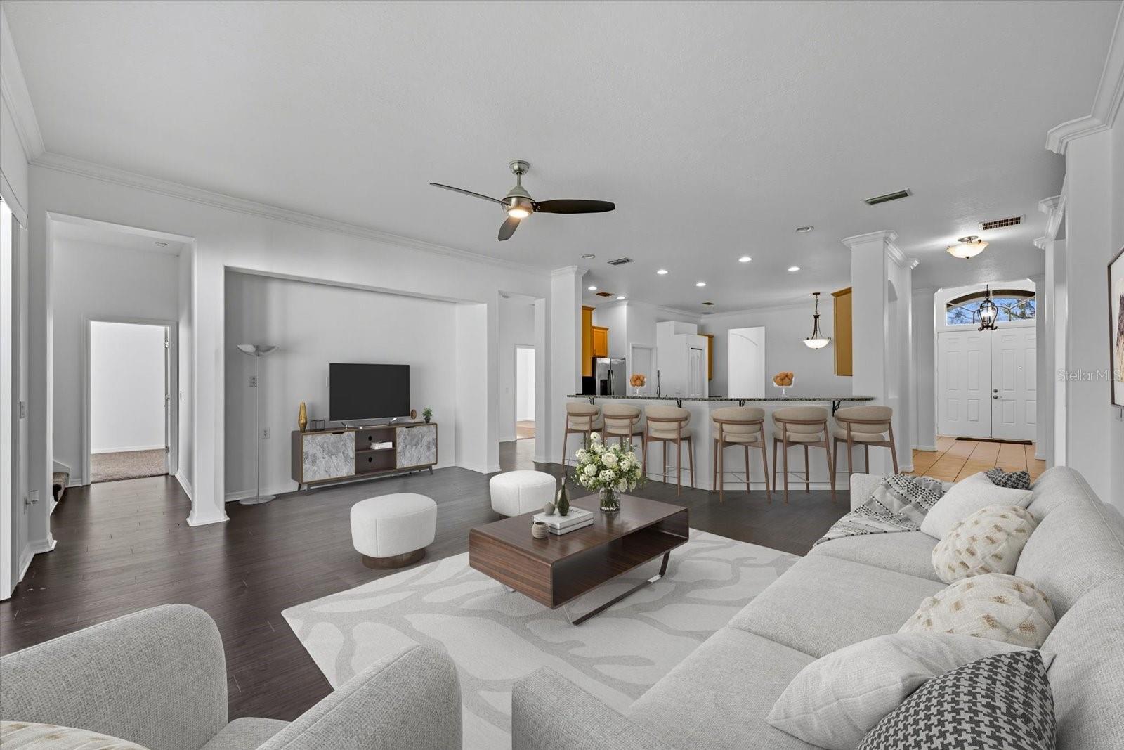 Uma ou mais fotos foram praticamente encenadas. Bem-vindo a esta impressionante casa de 2 andares, com 3.191 pés quadrados aquecidos, de espaço de estar, 4 quartos, mais Den/Office, 4 banheiros completos e uma garagem de 2 carros localizada em um beco sem saída com uma vista serena! Desde o apelo convidativo com a entrada de porta dupla até o interior brilhante e espaçoso, esta casa foi projetada para conforto e estilo! A planta aberta destaca a sala de jantar formal com tetos de bandeja e molduras de coroa, uma cozinha gourmet com bancadas em granito, backsplash, exaustor com ventilação, utensílios de aço inoxidável, uma ilha central e comer na área com vista para a espaçosa sala de estar. A suíte do proprietário privado inclui armários walk-in, vaidades duplas, uma banheira de jardim e um chuveiro separado. No andar de cima, a expansiva sala de bônus oferece espaço versátil para uma sala de mídia ou sala de jogos. Desfrute da Flórida que vive no lanchone fechado coberto e no quintal cercado sem vizinhos traseiros - perfeita para entretenimento e relaxamento. Com tinta interior fresca e tinta externa, e uma localização privilegiada perto de shoppings de arndas de arames, tampa premium, fitness, lojas, refeições e grandes rodovias, esta casa realmente tem tudo! Sem CDD, HOA baixo! !