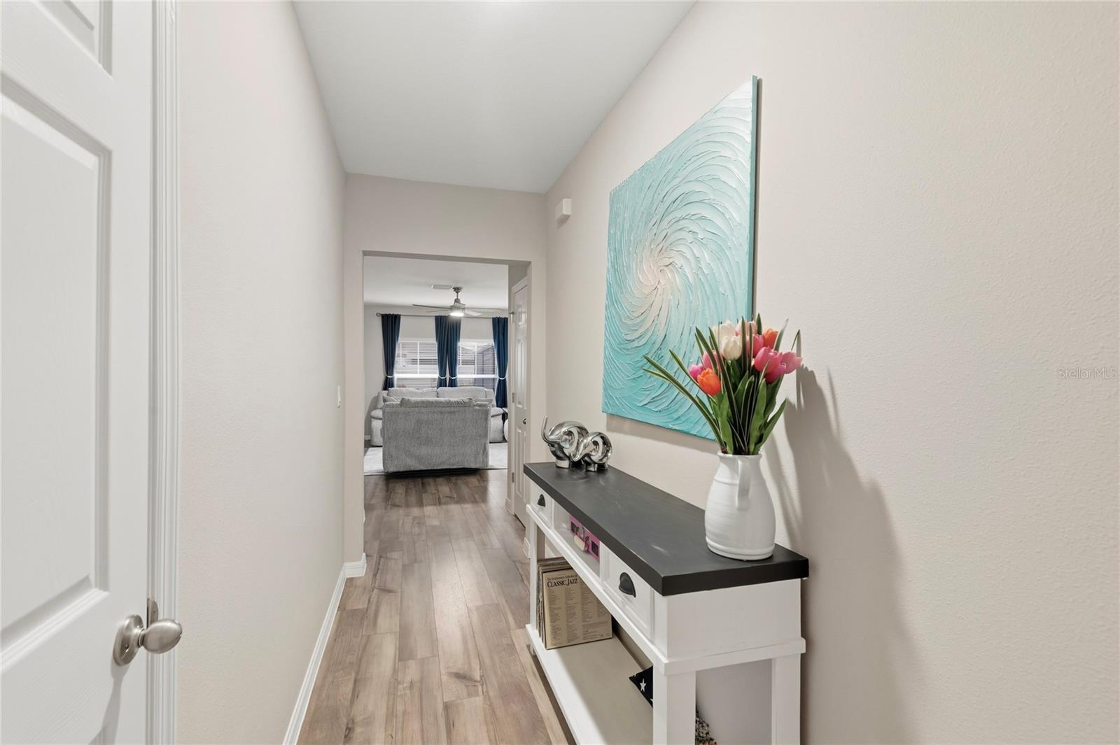 Bem-vindo ao 34170 Scarlet Sage Ct. Capela Wesley, Flórida 33545-5604. Construída em 2023, esta casa MELHOR QUE NOVA, totalmente carregada e meticulosamente mantida, está PRONTA PARA MUDAR e repleta de ATUALIZAÇÕES por dentro e por fora. A partir do momento em que chegar, você notará a atratividade do meio-fio - paisagismo maduro, cobertura morta fresca, um quintal totalmente cercado e uma charmosa varanda frontal com tela perfeita para seu café da manhã ou chá da tarde. Entre em uma grande entrada que se abre para um espaço de estar ABERTO (MUITA LUZ NATURAL) e acolhedor com pisos de vinil brilhantes em todo o primeiro nível. A cozinha gourmet apresenta uma impressionante ilha de quartzo de 7'+, bancadas cinza e vista para as áreas de estar e jantar - ideal para entretenimento. O quintal é um verdadeiro paraíso, com um grande espaço verde, paisagismo maduro, um Gazebo SMART-Fully Screened de 11'9" x 15'9" em uma base de concreto de 20' x 20', completo com iluminação e ventiladores controlados por Alexa embutida, plantadores e estação de grelhar. No andar de cima, o piso laminado atualizado continua (sem carpete em lugar nenhum!). Um LOFT espaçoso serve perfeitamente como uma segunda área de estar ou espaço de mídia. O retiro do proprietário inclui closets duplos, armário de linho, pias duplas, chuveiro grande de azulejos e painéis de som exóticos exclusivos para um toque moderno. Quartos adicionais oferecem espaço generoso para uma variedade de necessidades, closets e ventiladores de teto. O terceiro banheiro foi lindamente atualizado com uma banheira de azulejos, e a lavanderia no andar de cima acrescenta conveniência. Atualizações adicionais incluem: Amaciante de água e sistema de filtragem para toda a casa Sistema de calha completo Vários racks de armazenamento de garagem Porta de vidro/tela entre a garagem e a casa para circulação de ar e fácil acesso. As comodidades da comunidade incluem PISCINA estilo resort, cabanas, parque para cães, calçadas em ambos os lados da estrada e parques - tudo a uma curta caminhada ou de carro. Convenientemente localizado perto de escolas públicas e charter de primeira linha, NEW PUBLIX e SUPER TARGET, bancos, restaurantes e muitas opções de entretenimento, como The Krates, The Grove e Tampa Premium Outlets. O fácil acesso à I-75 torna o deslocamento diário muito fácil. Não perca a oportunidade de possuir esta casa lindamente reformada em uma das comunidades mais desejáveis de Wesley Chapel!