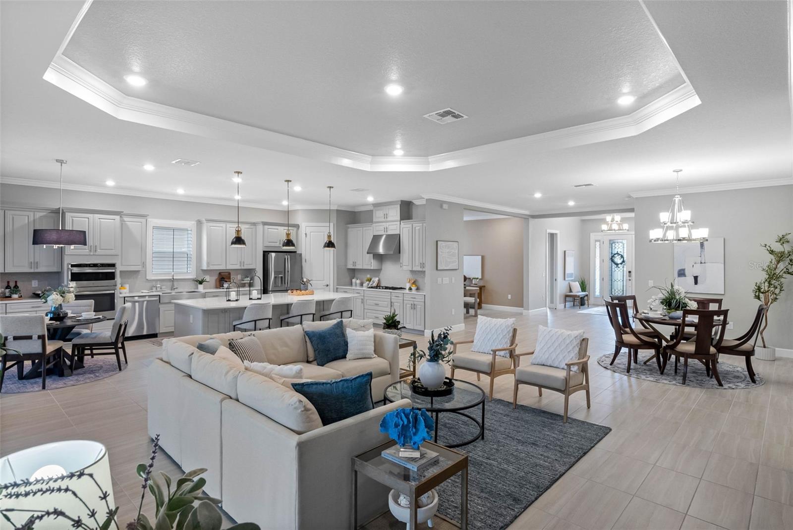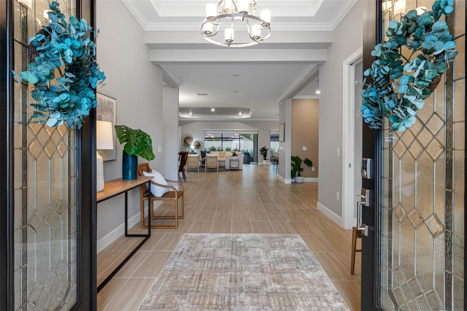 Abrace o luxo da vida em estilo resort neste modelo Pallazio construído por Taylor Morrison, localizado no condomínio fechado para mais de 55 pessoas de Esplanade em Wiregrass Ranch. Esta casa de inspiração mediterrânea oferece 3 quartos, 3 banheiros e 3.087 pés quadrados de área de estar lindamente projetada. A partir do momento em que você entra pelo portão de ferro forjado do pátio e pelas impressionantes portas duplas de vidro, você será recebido pela elegância e atenção aos detalhes. No interior, sancas, portas de 2,5 metros e piso de cerâmica fluem perfeitamente em todo o layout de conceito aberto. A grande sala possui uma parede de mídia personalizada com suporte para TV e lareira elétrica, criando uma atmosfera calorosa e convidativa. As persianas elétricas nas portas de vidro deslizantes abrem para o amplo pátio coberto, oferecendo tela panorâmica, piso de cerâmica e pré-canalização para uma cozinha externa - ideal para entretenimento ou relaxamento ao ar livre. A cozinha gourmet é o sonho de qualquer chef, apresentando armários de última geração, bancadas de quartzo, eletrodomésticos de aço inoxidável e fogão a gás com exaustor de aço inoxidável. Uma ilha espaçosa com iluminação suspensa se abre para a grande sala e área de jantar, perfeita para reuniões. A suíte principal serve como um retiro privado com tetos retangulares, um sistema de armário personalizado e uma banheira inspirada em spa com um chuveiro grande com box de vidro e pias duplas. A sala flexível ao lado do hall de entrada é ideal para um escritório ou área de leitura. Dois quartos de hóspedes estão cuidadosamente posicionados em lados opostos da casa - um com acesso ao banheiro privativo e o outro com banheiro privativo. Todos os banheiros continuam o tema luxuoso com superfícies de quartzo combinando e acabamentos sofisticados. Os destaques adicionais incluem venezianas, uma grande lavanderia com armários e pia embutidos e uma garagem para dois carros. A calçada e a passarela de pavimentação, combinadas com um paisagismo exuberante, melhoram o apelo imaculado do meio-fio da casa. Os residentes de Esplanade at Wiregrass Ranch desfrutam de um estilo de vida excepcional para maiores de 55 anos, com comodidades em estilo resort, programas de bem-estar e infinitas oportunidades de recreação e conexão. Viva todos os dias ao máximo em uma comunidade projetada para revigorar a mente, o corpo e o espírito.