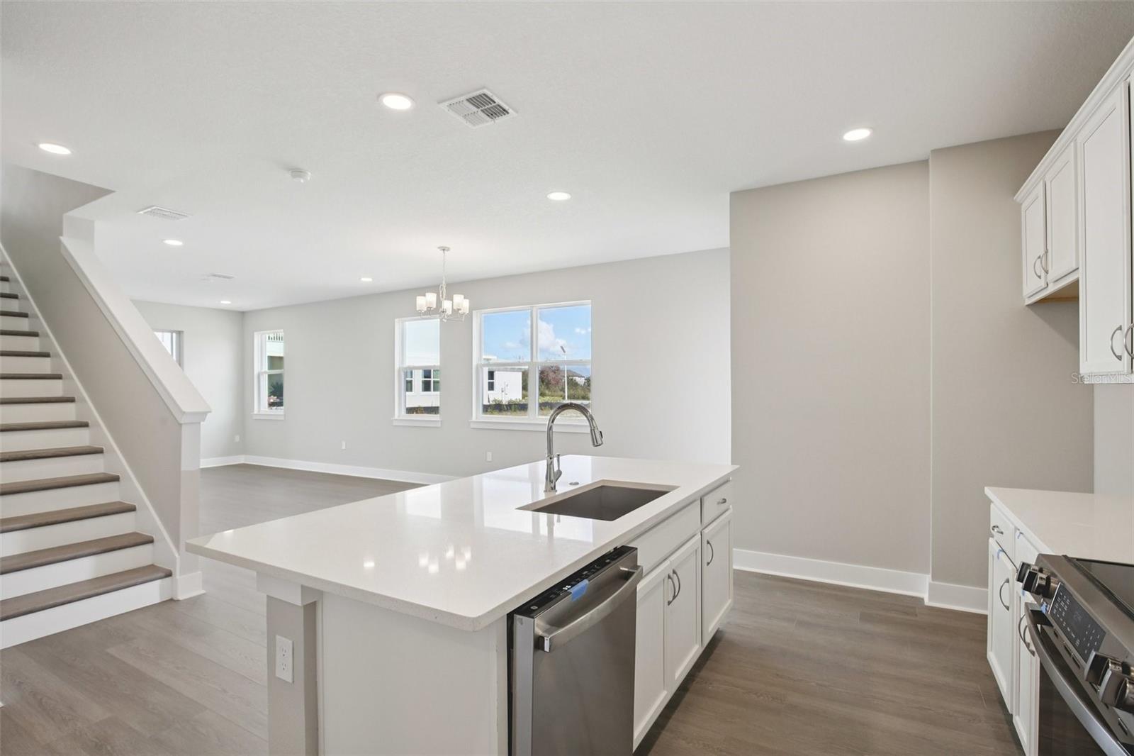 Residência urbana Dalia de dois andares no final da linha com 3 quartos, 2,5 banheiros, um loft e uma garagem para 2 carros, localizada dentro do condomínio fechado de Lagoon Residences em Epperson, atrás da Lagoa Epperson. Esta casa bem equipada oferece uma suíte principal no primeiro andar e um layout de conceito aberto com luz natural abundante, tetos altos e acabamentos atualizados por toda parte. A cozinha inclui eletrodomésticos de aço inoxidável, bancadas modernas e uma ilha central com vista para a área de estar principal. Portas deslizantes levam a um pátio privado. A suíte principal do primeiro andar inclui closet e banheiro privativo com pia dupla e box amplo. O segundo nível possui um loft espaçoso com acesso a uma varanda privada, dois quartos adicionais e um banheiro completo. As comodidades da comunidade incluem acesso à lagoa cristalina Epperson, juntamente com parques, trilhas e áreas sociais. Cuidados com o gramado e manutenção externa estão incluídos. Convenientemente localizado perto de lojas, restaurantes e principais rodovias.