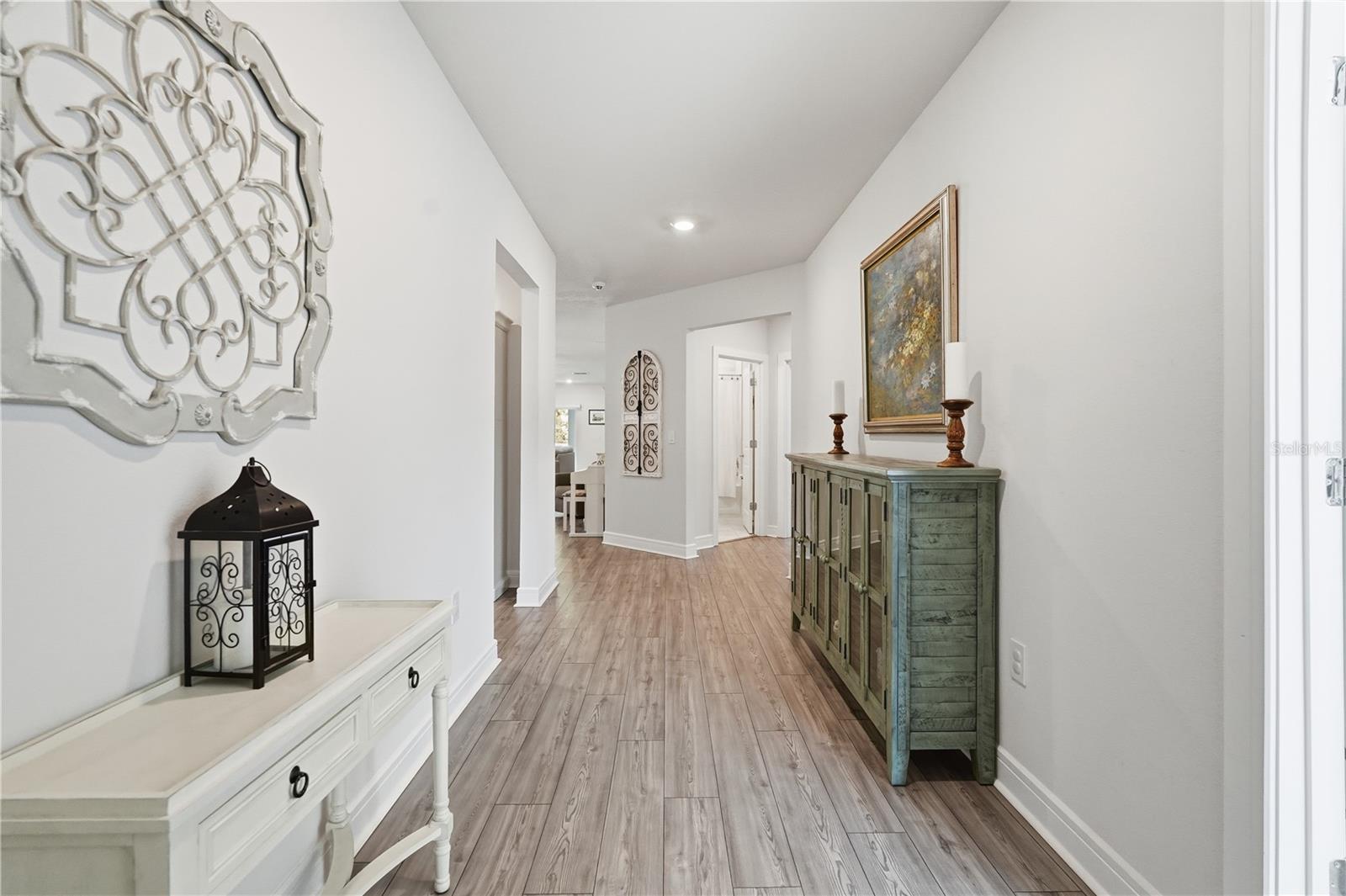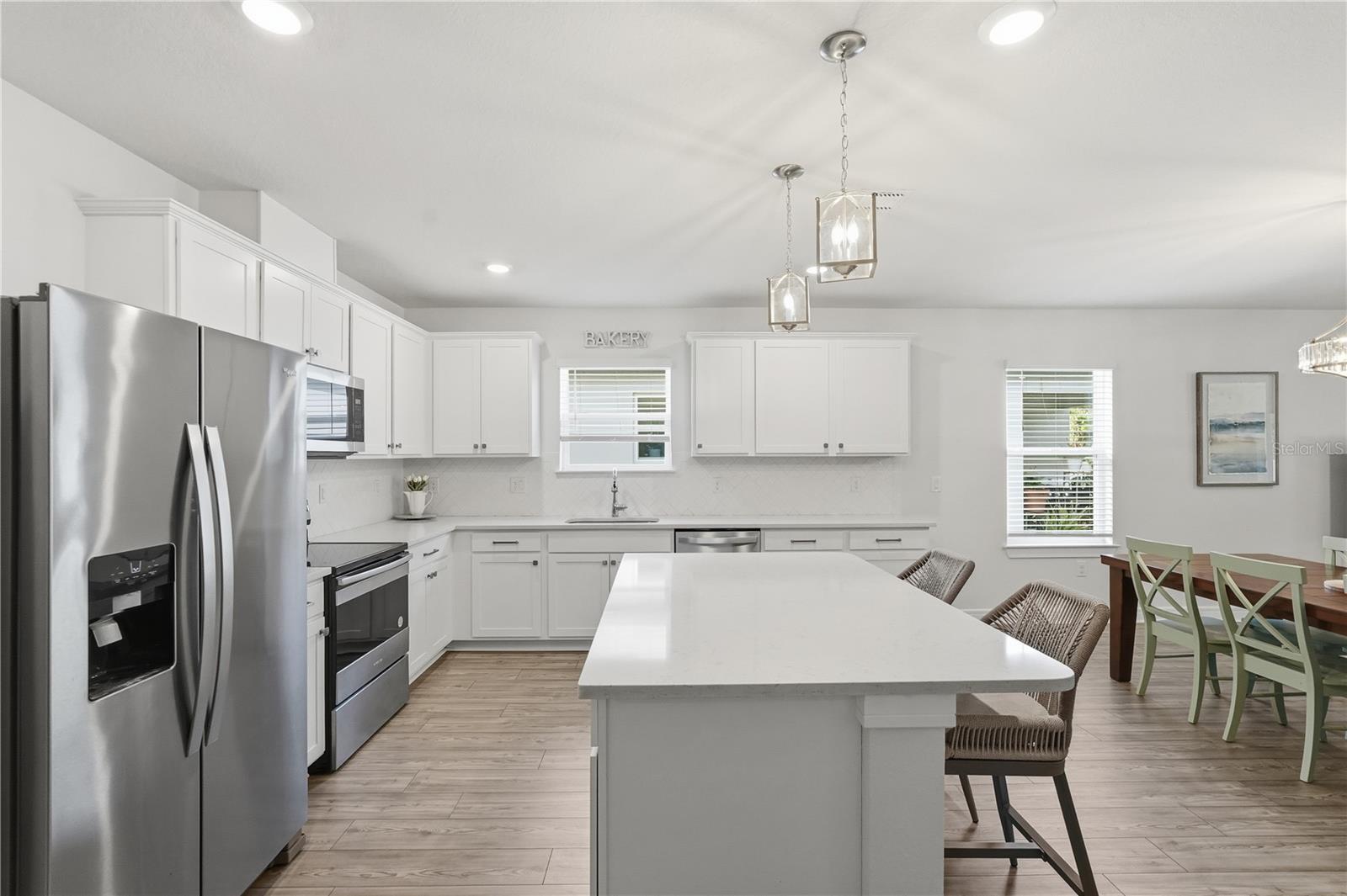 Bem-vindo a esta casa lindamente conservada de 4 quartos e 2 banheiros no condomínio fechado de Wesbridge, em Wesley Chapel. Com telhado 2022, AC e aquecedor de água, além de calhas recém-instaladas (2025), esta casa oferece eficiência moderna. Situada em um lote de conservação premium, sem vizinhos traseiros, esta casa iluminada e iluminada oferece vistas tranquilas e privacidade. Entre em um hall de entrada acolhedor que leva a uma sala de estar, área de jantar e cozinha de conceito aberto - um layout ideal tanto para a vida cotidiana quanto para entretenimento. A cozinha atualizada possui bancadas de quartzo, armários de madeira reluzentes, backsplash de azulejos em espinha de peixe personalizado, eletrodomésticos de aço inoxidável, uma grande despensa e uma ilha espaçosa com iluminação pendente, perfeita para preparar refeições ou jantares casuais. As principais áreas de estar possuem piso elegante de pranchas de vinil de luxo, enquanto os quartos oferecem carpetes aconchegantes e confortáveis. A espaçosa suíte principal inclui um closet grande e um banheiro privativo tipo spa com pia dupla de quartzo e chuveiro com box de vidro. Os quartos adicionais são bem dimensionados e compartilham um banheiro completo com combinação de chuveiro/banheira. Aproveite a vida na Flórida o ano todo na varanda coberta, ideal para relaxar à sombra, grelhar ou simplesmente apreciar as vistas serenas da conservação. O quintal é completo com cercas de vinil para maior privacidade. Wesbridge oferece comodidades fantásticas, incluindo uma piscina em estilo resort, parque para cães e playground. Localizada perto de escolas de alto nível e a poucos minutos da I-75, esta casa oferece fácil deslocamento e acesso rápido a lojas, restaurantes e tudo o que Wesley Chapel tem a oferecer. Agende sua exibição hoje mesmo!