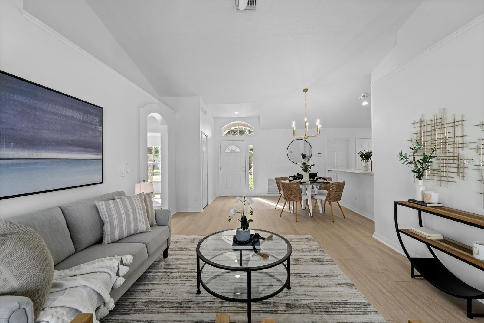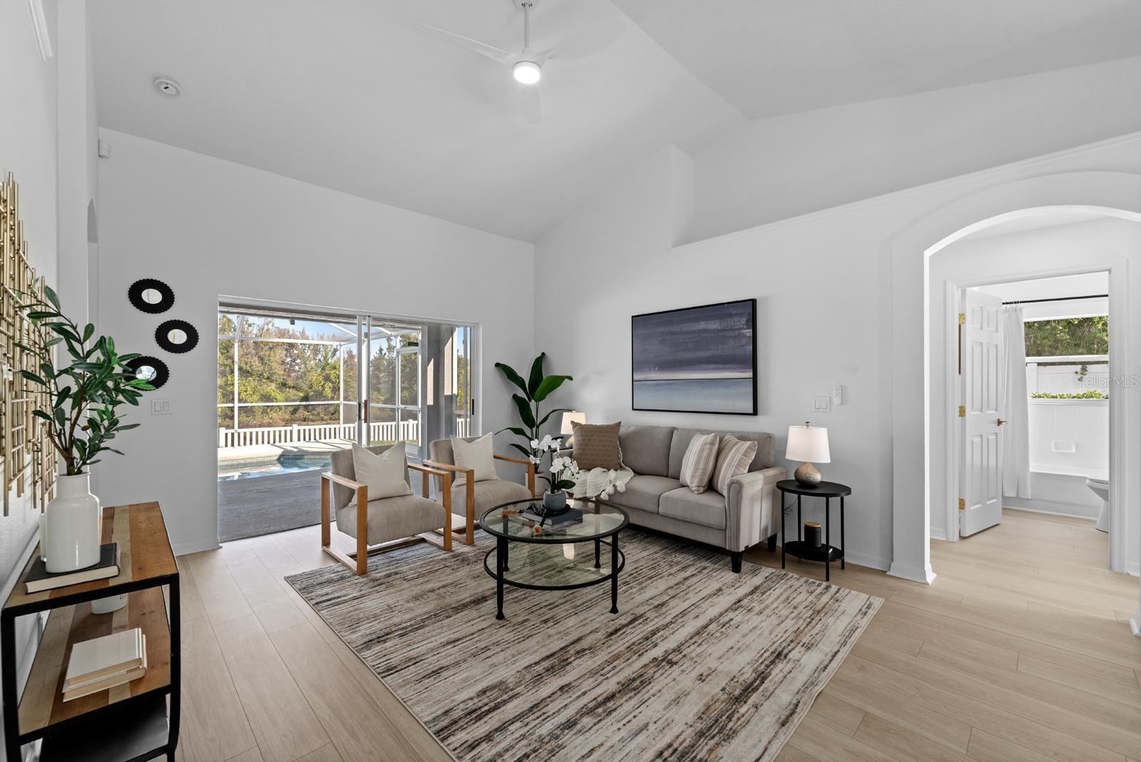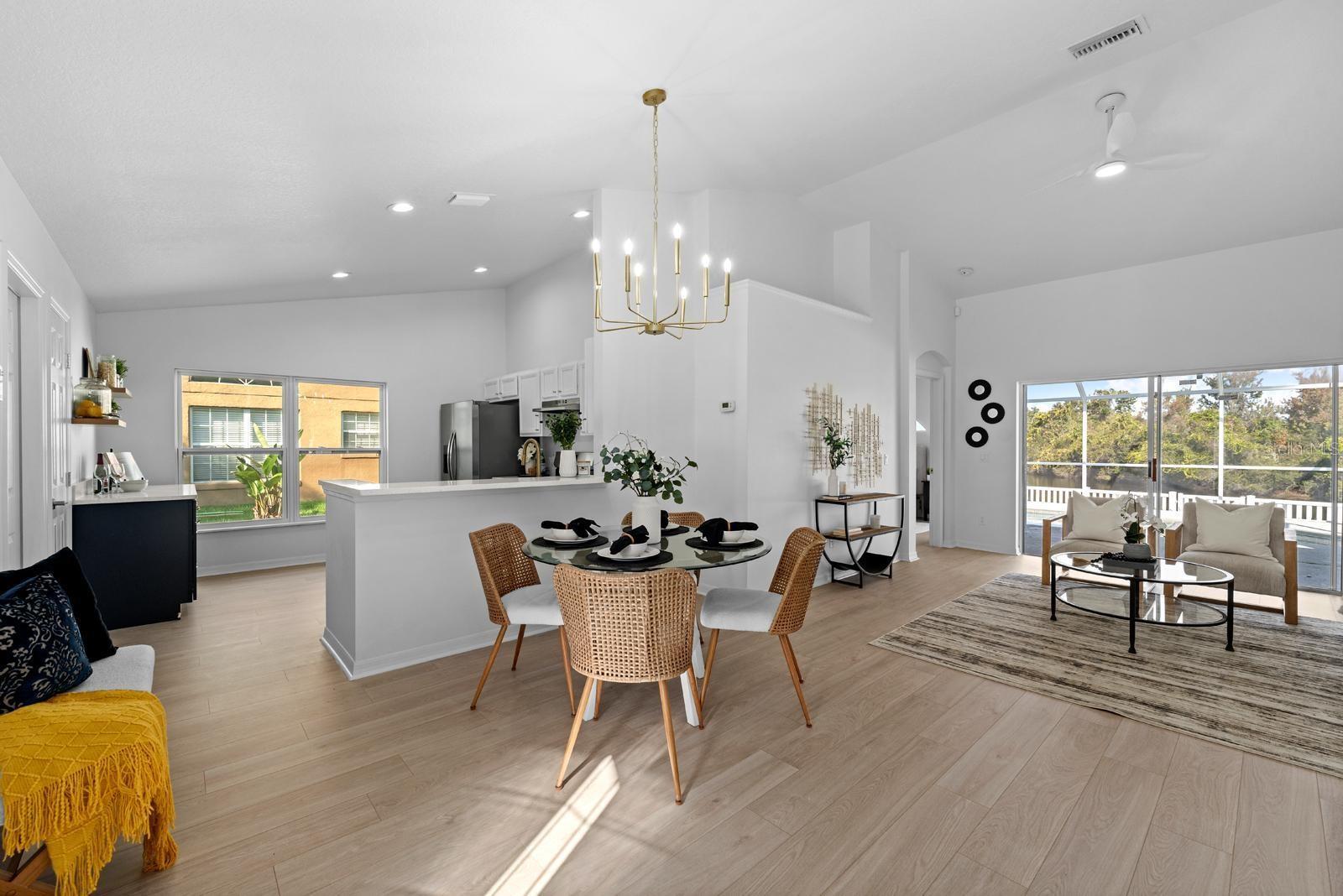 Casa de 3 quartos/2 quartos totalmente remodelada com piscina e vista tranquila para o lago. As características incluem novo piso de vinil de luxo, novo telhado, novo aquecedor de água, pintura interna/externa fresca, iluminação/hardware atualizados. A cozinha reformada possui bancadas de quartzo, armários reformados, despensa, cafeteira com geladeira para bebidas e eletrodomésticos totalmente novos. A suíte principal tem closet e banheiro atualizado com azulejos personalizados e pia nova com pia dupla. A sala da família e o quarto principal se abrem para a piscina privativa, varanda redesenhada, novas cercas de vinil e paisagismo atualizado, proporcionando encontros divertidos e relaxantes com a família e amigos. SEM taxas de CDD, HOA baixo e uma localização imbatível perto de escolas, lojas, restaurantes e instalações médicas, no coração do corredor Wesley Chapel/New Tampa. Não perca a oportunidade de possuir este imóvel pronto para morar, comprovando atualizações, espaço e privacidade.