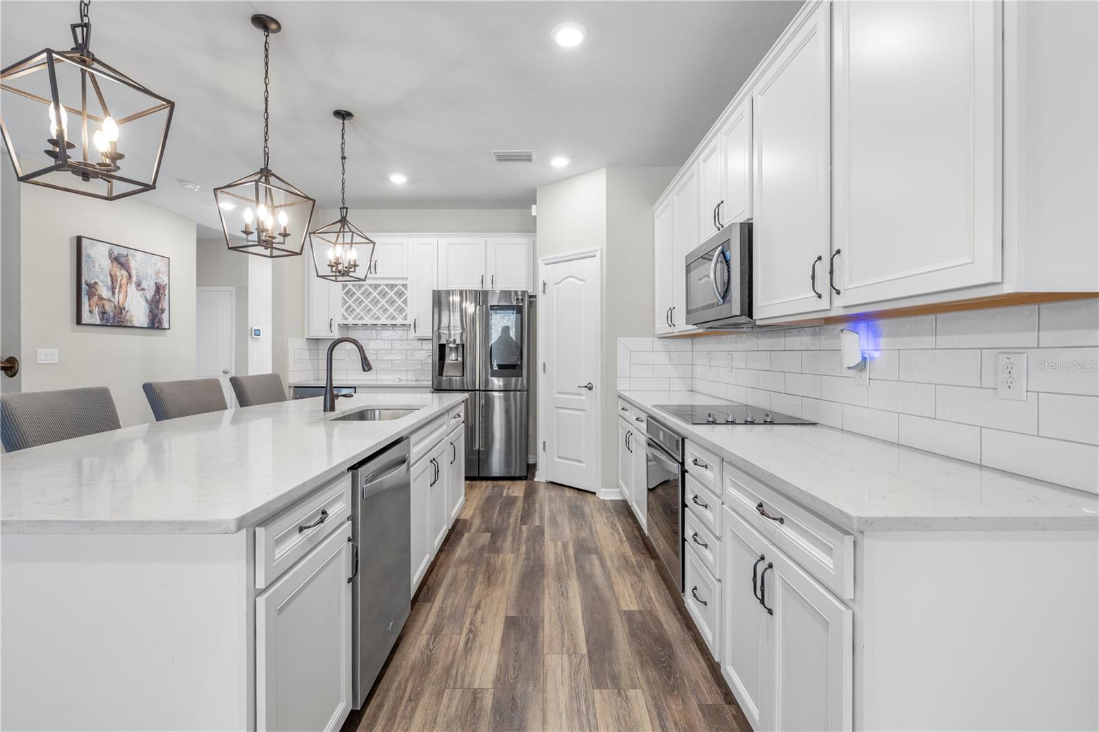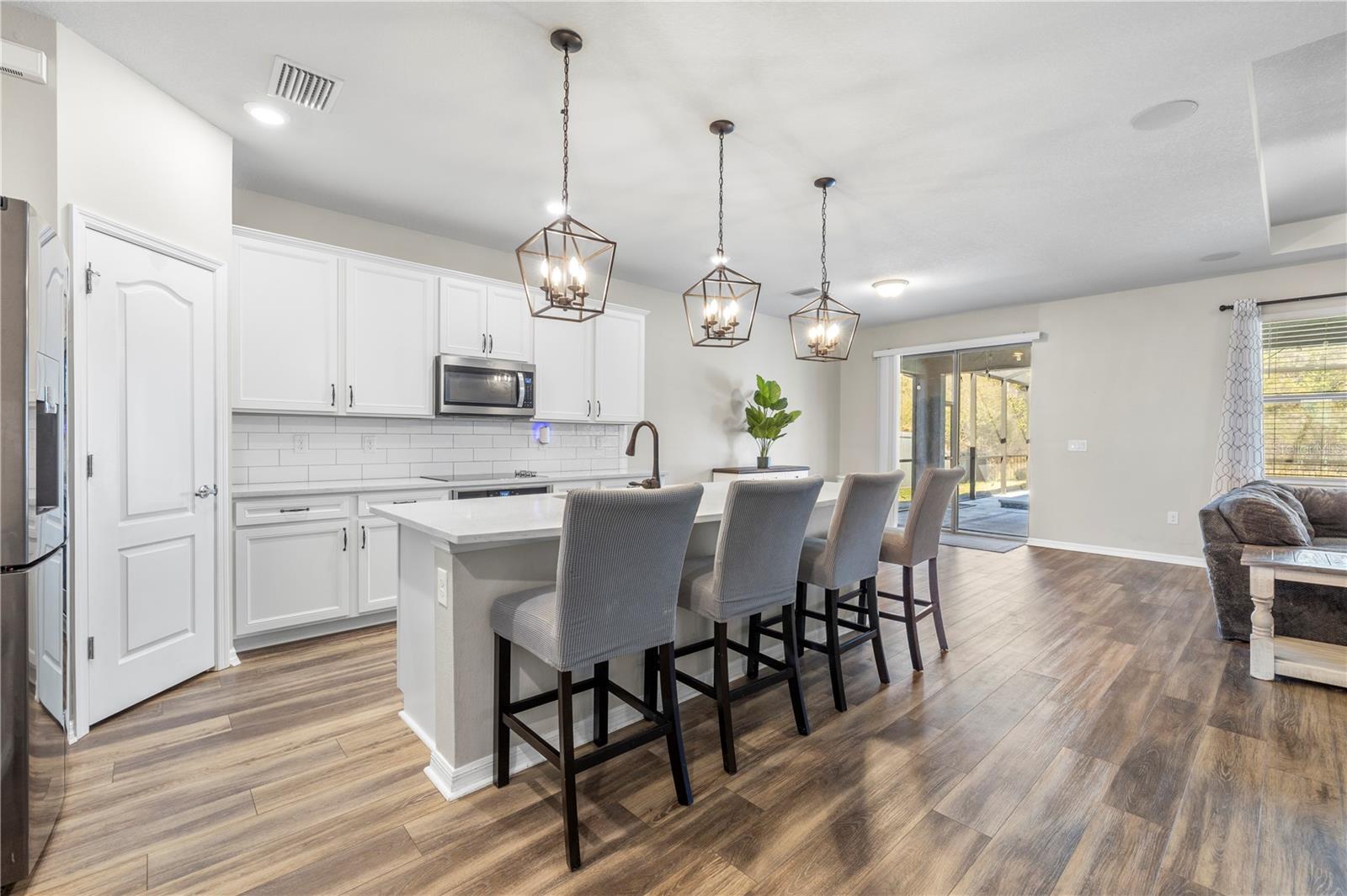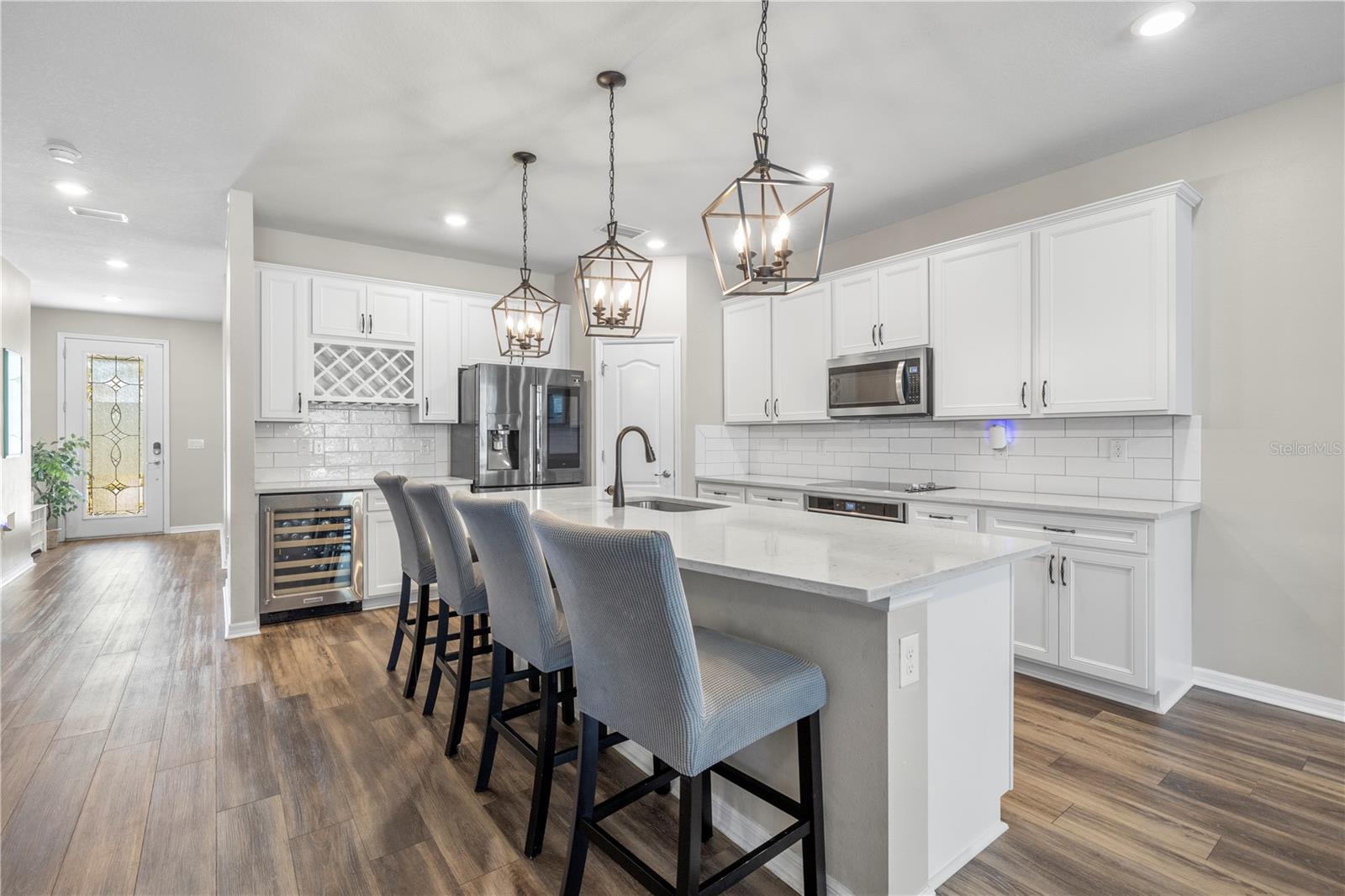 Sob ofertas de backup que aceitam contrato. Localizada no condomínio fechado Epperson Ranch em Wesley Chapel, esta casa pronta de 5 quartos, 3 banheiros e garagem para 2 carros oferece design moderno, conceito aberto e acesso a uma das comunidades lagunares mais procuradas da Flórida. Construída em 2019, a casa apresenta uma planta aberta leve e brilhante com luxuoso piso de pranchas de vinil em todo o primeiro andar, tornando-a ideal para a vida cotidiana e entretenimento. A cozinha gourmet inclui bancadas de quartzo, eletrodomésticos de aço inoxidável, backsplash de azulejos de metrô, uma grande ilha central com assentos para café da manhã, uma despensa de canto e um bar de vinhos personalizado com refrigerador de vinho, armazenamento de garrafas embutido e prateleira de vidro, e a cozinha é ventilada para um futuro exaustor. A cozinha se abre para a área de jantar e para a espaçosa área de estar, criando o conceito aberto de cozinha e sala de estar que os compradores procuram nos imóveis de Wesley Chapel. A casa também possui som surround integrado, perfeito para noites de cinema, entretenimento e vida cotidiana envolvente. O quarto principal do primeiro andar possui closet, pia dupla de granito e box amplo, enquanto um quarto de hóspedes ou escritório doméstico no primeiro andar oferece flexibilidade para trabalhar em casa ou viver multigeracionalmente, e um banheiro completo e lavanderia com pia completa o nível principal. No andar de cima, uma grande sala de bônus oferece espaço para sala de jogos, sala de mídia, home theater ou academia doméstica, além de três quartos adicionais com closets e banheiro completo no andar de cima. Saia para a varanda coberta e fechada com tela e aproveite a nova piscina com tela instalada em novembro de 2025. Seja o primeiro a dar um mergulho e desfrutar de seu oásis privado no quintal com vistas de conservação, perfeito para a vida ao ar livre na Flórida, noites relaxantes e entretenimento. Os residentes da Epperson Ranch Wesley Chapel desfrutam de acesso à Crystal Lagoon, comodidades em estilo resort, trilhas para caminhada, eventos comunitários, internet UltraFi de alta velocidade e cabo incluído, e um sistema de filtragem de água doméstico completo agrega ainda mais valor, tornando esta uma rara oportunidade de possuir uma casa Epperson Ranch de cinco quartos à venda em uma das comunidades mais desejáveis da Wesley Chapel.