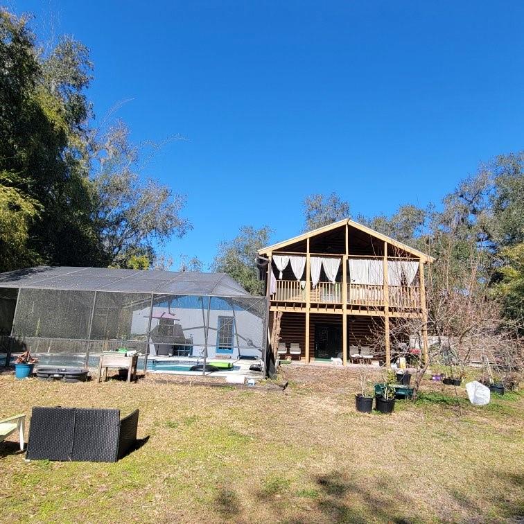 Aproveite a vida em estilo campestre nesta cidade em crescimento conveniente!!!! O paraíso criativo está chamando seu nome agora!!! Esta propriedade possui 4 quartos, 3 banheiros completos e garagem para 2 carros em um terreno limpo de quase 2 acres. Com as principais atualizações mais recentes, você pode enfrentar o clima vigoroso da Flórida com tranquilidade. Novo telhado em 2024, novo gerador de 20 kW em 2023 que vem com um tanque de propano enterrado de 250 galões pode fornecer energia para toda a casa. 2 novos sistemas HVAC com bombas de calor e uma mini unidade split na garagem. Painel elétrico novo. Nova fossa séptica e campo de lixiviação. Novo galpão em 2022. E algumas atualizações cosméticas ---- cozinha totalmente remodelada com armários de madeira e bancada em granito, piso novo na sala, cozinha, sala de jantar e sala de estar, também recentemente pintado no exterior e na garagem. Com seu toque e cuidado adicionais, ele brilhará como um diamante. Esta propriedade tem 2 portões de entrada frontais que levam você da entrada até a garagem, ou para o lado leste do portão da cerca, onde você pode dirigir seus veículos por todo o caminho de volta da propriedade. Ao entrar nesta casa, você encontrará uma planta tradicional com quartos divididos no primeiro andar. 2 quartos no lado oeste compartilham um banheiro no corredor com chuveiro. O quarto do lado leste vem com banheiro próprio com banheira e pias duplas. Uma espaçosa sala familiar ao lado da sala de jantar formal o levará ao segundo andar, onde fica o atual quarto principal. No último andar, este quarto de 16 por 16 possui um closet que pode ser acessado pelo quarto ou banheiro. Este banheiro principal possui penteadeiras individuais para ele e ela. A porta francesa leva-o à varanda onde se encontra a zona mais relaxante para contemplar este belo terreno. A piscina fechada oferece momentos divertidos para a família. Grelhar churrasco será outra atividade adorada ao ar livre. Este terreno de 1,92 acres tem muito a oferecer e cria seu próprio estilo de vida natural. A linha da propriedade é estendida por mais 150 pés ou mais além da linha da cerca traseira. Esta propriedade está convenientemente localizada a poucos minutos da I 75 e 10-20 minutos para chegar a todas as principais lojas e restaurantes. Fácil de gerenciar sua vida diária e ao mesmo tempo desfrutar de mais privacidade do que nunca. Venha conhecer esta propriedade e chegue ao seu doce lar!