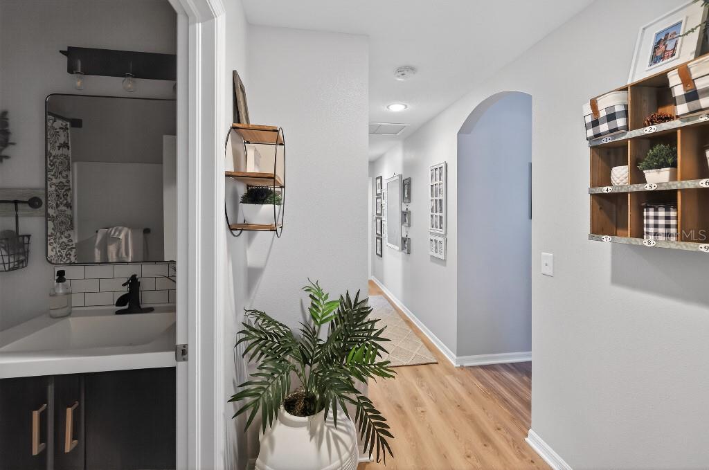 Casa lindamente atualizada de 3 quartos e 2 banheiros com um escritório doméstico dedicado, localizada na altamente desejável comunidade CountryWalk em Wesley Chapel. Esta residência pronta para morar está voltada para o espaço aberto, oferecendo maior privacidade e espaço ao ar livre adicional para desfrutar. No interior, você encontrará uma nova pintura interna neutra e uma nova pintura externa (2025), além de nova iluminação e ventiladores de teto totalmente novos. A cozinha totalmente remodelada se destaca, com eletrodomésticos de aço inoxidável, sancas e uma parede aberta que cria um espaço aberto e luminoso, ideal para entretenimento. Tanto a cozinha quanto os banheiros foram atualizados com bom gosto, e o armário da lavanderia foi atualizado para maior funcionalidade. As paredes com detalhes Shiplap adicionam personalidade e charme. O home office oferece um espaço perfeito para trabalho remoto, estudo ou uma sala flexível para atender às suas necessidades. As principais atualizações do sistema proporcionam tranquilidade, incluindo um telhado totalmente novo, um sistema HVAC mais recente, um novo aquecedor de água quente, um amaciante de água e um sistema de filtragem de água potável embaixo da pia. Melhorias adicionais incluem novo paisagismo e um novo sistema de portas de garagem. Além disso, a casa tem espaço ao ar livre com varanda coberta para aliviar o calor do verão. Isto é maravilhoso para socializar ou desfrutar do seu café da manhã ou para assistir às tempestades da tarde. CountryWalk oferece comodidades em estilo resort, incluindo piscina aquecida e piscina olímpica, quadras de tênis, quadra de pickleball, quadra de basquete, academia, clube, parque para cães e um playground fantástico. A taxa HOA trimestral de US$ 220 inclui Spectrum TV e internet, além de acesso a todas as comodidades da comunidade. Esta casa cuidadosamente atualizada oferece conforto moderno, espaço funcional e um estilo de vida comunitário excepcional - verdadeiramente pronta para morar.