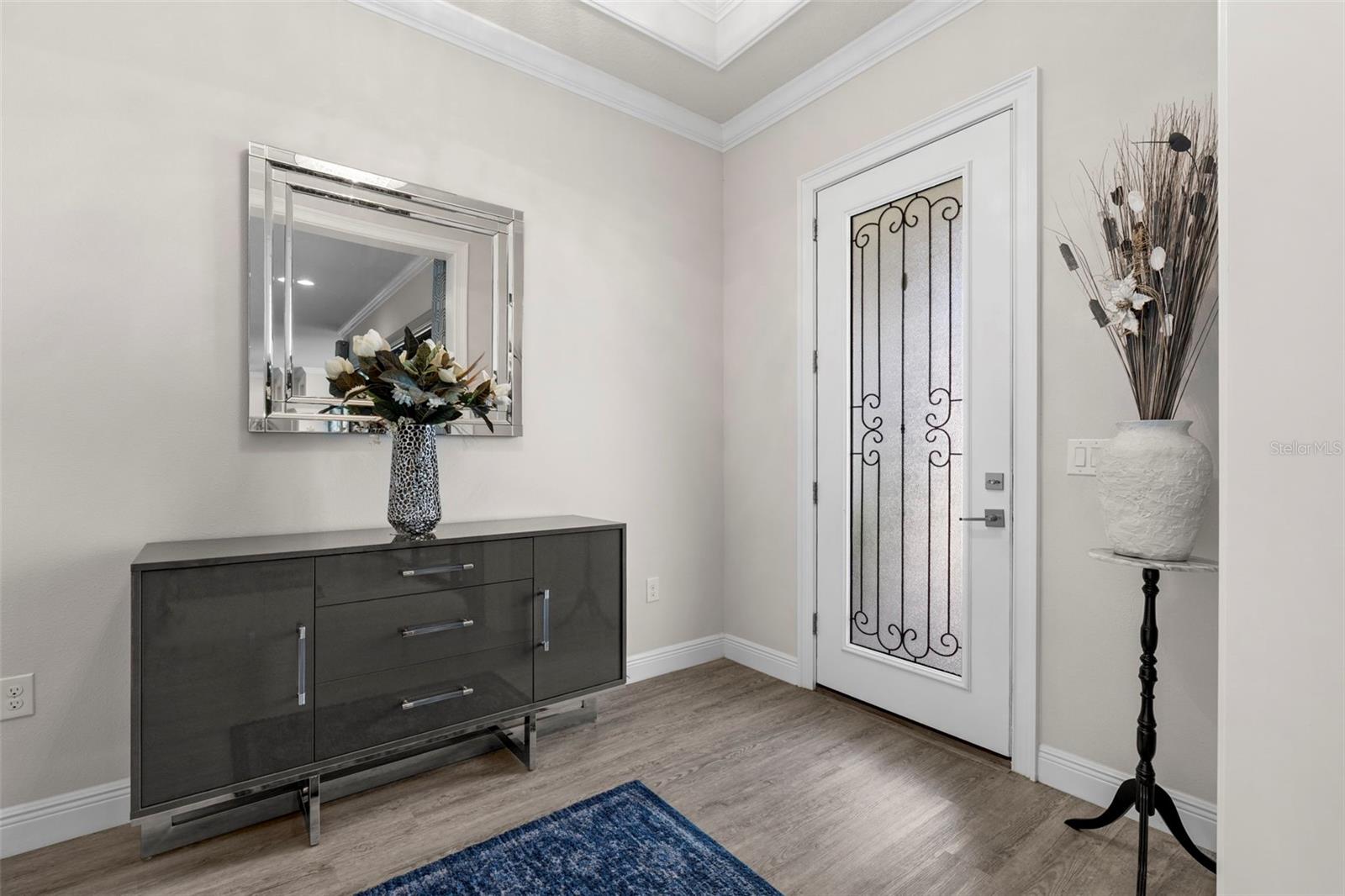 Situada no condomínio fechado Epperson Ranch, esta impressionante residência em estilo pátio combina caráter arquitetônico com acabamentos refinados, oferecendo um layout raro projetado para privacidade e conexão. Construída em 2020 pela construtora de casas de luxo Biscayne Homes, a casa térrea se estende por 3.142 pés quadrados e possui quatro quartos e três banheiros e meio dispostos em torno de um pátio privado que enche o interior de luz natural. No interior, os espaços de conceito aberto são emoldurados por tetos de 3 metros, tetos de bandeja, sancas e amplas portas de vidro deslizantes que criam uma conexão perfeita entre a sala de estar, a área de jantar e as vistas do pátio. O luxuoso piso de tábuas flui por toda a casa e é complementado por uma lareira elétrica personalizada que ancora a área de estar principal. A planta cuidadosa separa a suíte principal dos quartos secundários, proporcionando maior privacidade. A cozinha serve como peça central da casa com armários claros em estilo europeu, bancadas em granito, eletrodomésticos em inox, cooktop gourmet com exaustor, pia de avental, backsplash personalizado e iluminação de designer. Uma grande ilha oferece espaço para reuniões e assentos casuais, criando um ponto focal natural para a vida cotidiana e entretenimento. Com vista para o pátio privado, há uma suíte individual com seu próprio quarto, banheiro, cozinha compacta e entrada privativa. A vida ao ar livre é aprimorada pela pavimentação arquitetônica que se estende por toda a propriedade, criando uma aparência coesa no pátio, na entrada de automóveis e nas áreas de pátio recém-ampliadas. A propriedade também oferece espaço para acomodar uma futura piscina, proporcionando flexibilidade para vida e recreação adicionais ao ar livre. A casa fica em um terreno de esquina cercado e inclui uma garagem para três carros com piso de garagem revestido com epóxi e acabamento com selante de camada tripla, recursos de casa inteligente, câmeras de segurança internas e externas, calhas de chuva, bancadas de granito em toda a casa e persianas motorizadas Somfy na sala de estar, sala de jantar, quarto principal e suíte dos sogros. Os residentes desfrutam das comodidades excepcionais da comunidade Epperson Ranch, incluindo parques, trilhas, ruas adequadas para carrinhos de golfe e a Crystal Lagoon de 7,5 acres com praias arenosas, cabanas e recreação em estilo resort. Localizada no coração de Wesley Chapel, a casa oferece acesso conveniente a lojas, restaurantes, entretenimento e serviços diários. Somando-se ao crescimento contínuo da área, o novo Johns Hopkins All Hospital, atualmente em construção nas proximidades, trará uma importante instalação médica para a área imediata.