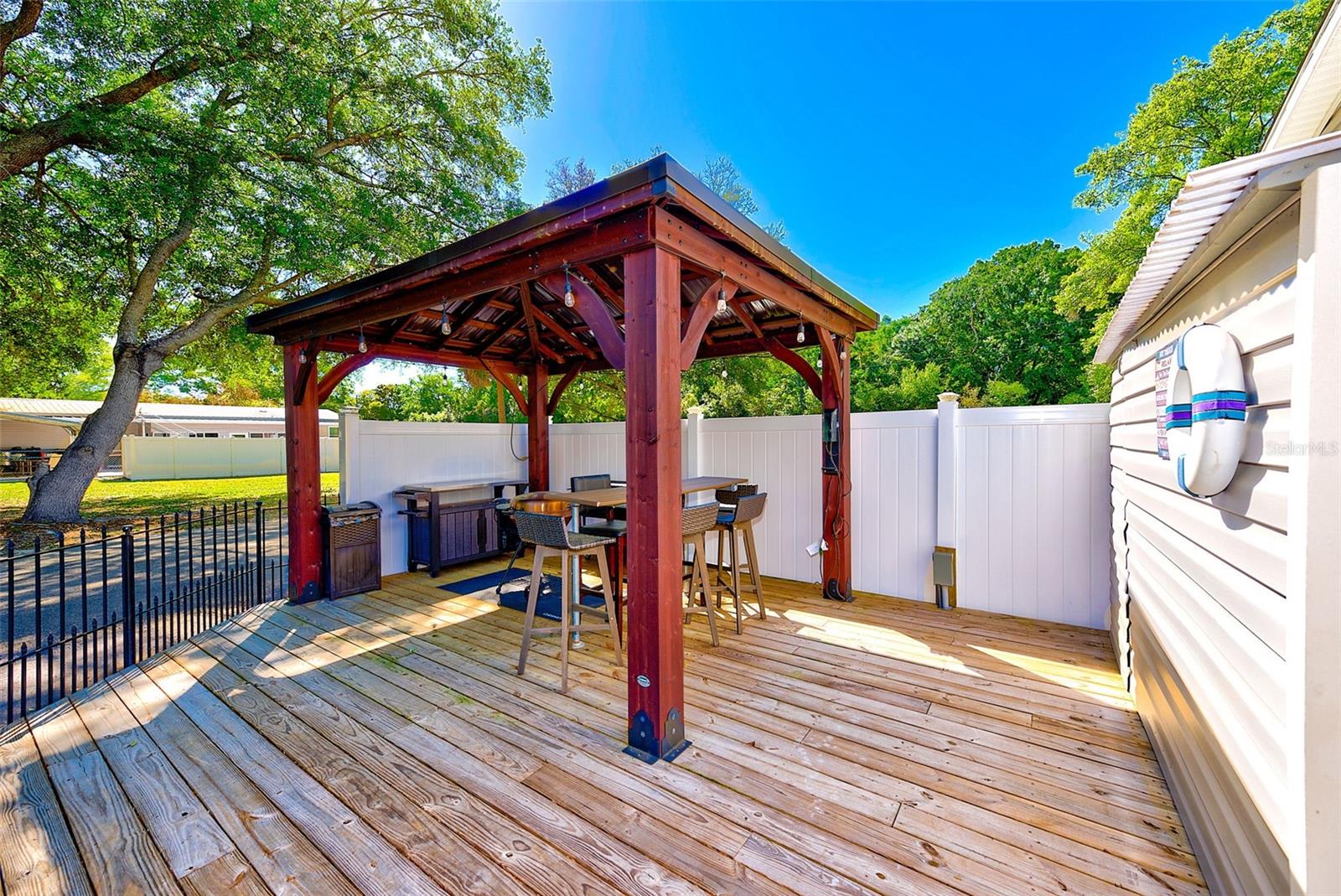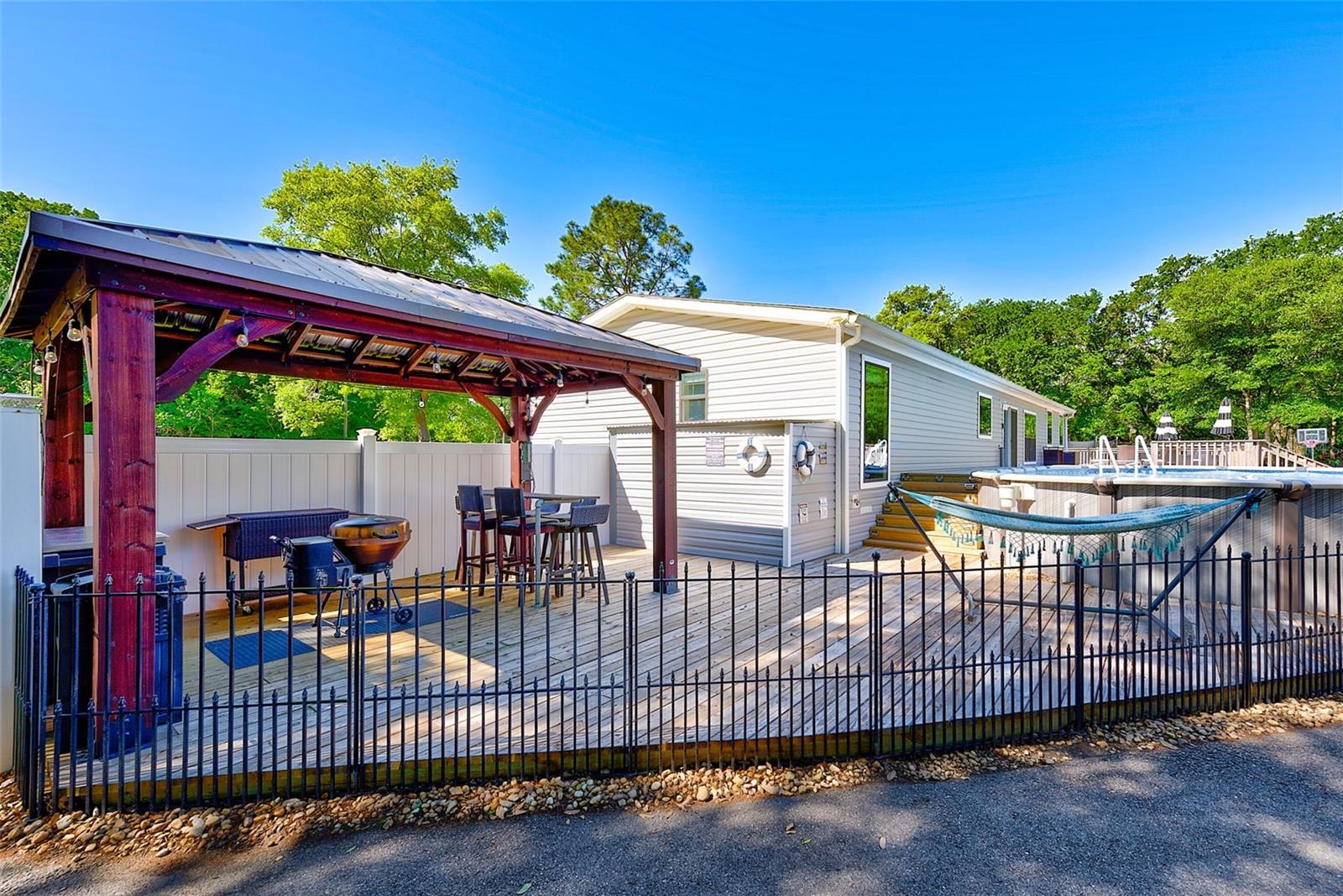REDUÇÃO DE PREÇO! Apresentando um santuário situado em meio à vibrante tapeçaria da paisagem da Wesley Chapel. Posicionada em uma ampla tela de 1,21 acres, esta propriedade representa o auge do fascínio atemporal e da elegância rústica. O design de conceito aberto construído em 2020 dá-lhe as boas-vindas com interiores ensolarados, adornados com janelas luminosas que emolduram o panorama pitoresco. Sob os pés, o elegante piso de vinil desliza sem esforço pela extensão, enquanto a iluminação embutida transmite um brilho suave e etéreo, moldando cada canto em um abraço suave. Um paraíso culinário espera por você no coração da casa, onde eletrodomésticos de aço inoxidável, Quartzo Cambria e acabamentos de design convergem para criar uma sinfonia gourmet. 4 quartos graciosos e 2 banheiros completos oferecem uma planta dividida invejável. Do lado de fora, um oásis verdejante o aguarda, mergulhe no luxo ao lado da piscina oval imaculada (instalada em 2023) ou organize reuniões íntimas sob o abraço protetor do deck externo e do gazebo, onde risadas e conversas fluem livremente noite adentro. Para o conhecedor mais exigente da vida requintada, a garagem 24x48 personalizada (2021) acena, oferecendo santuário para veículos valiosos e passatempos apreciados, ao mesmo tempo que traz um toldo 12x48. O armazenamento adicional é fornecido por um trio de galpões, cada um oferecendo seu charme e utilidade únicos. Variando de 10x16,10x12 e 12x32 usado como academia (acabado com A/C & Power). Escondida dentro de um perímetro de cerca de arame preto, esta propriedade oferece segurança e isolamento, garantindo que cada momento passado em seu abraço seja de paz e privacidade incomparáveis. Convenientemente situada a poucos minutos da I75 e de uma variedade de boutiques de luxo, destinos gastronômicos e locais de entretenimento, esta casa oferece o epítome da conveniência moderna sem sacrificar a tranquilidade de seu ambiente pastoral.