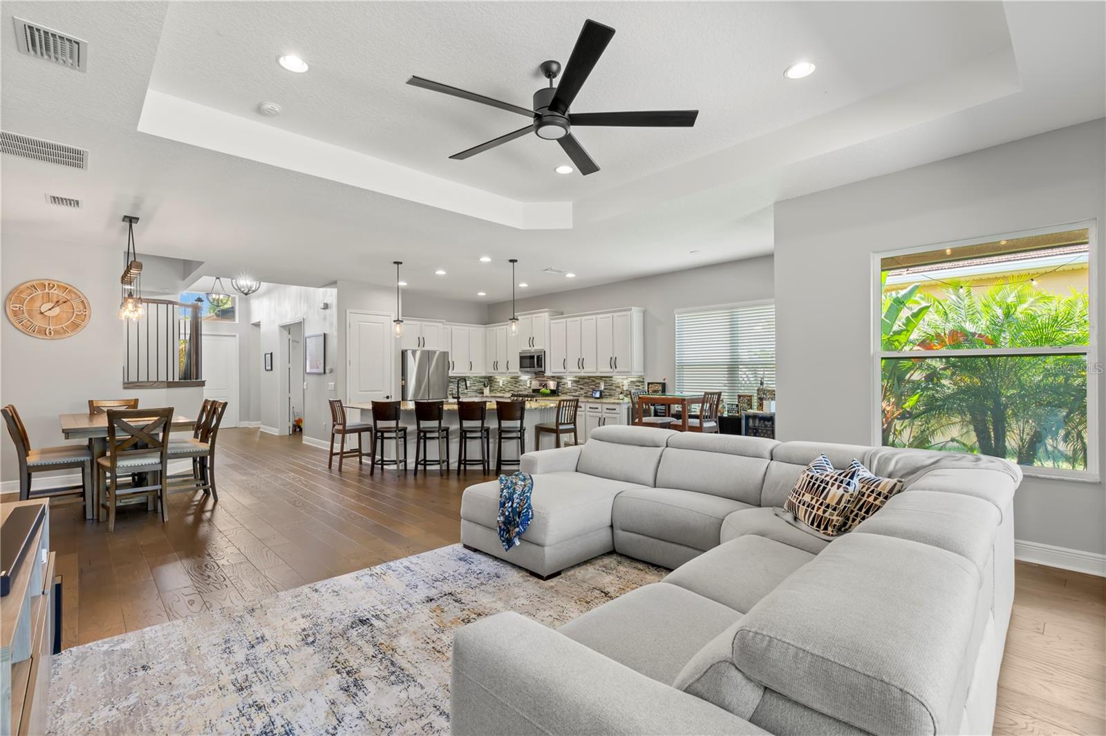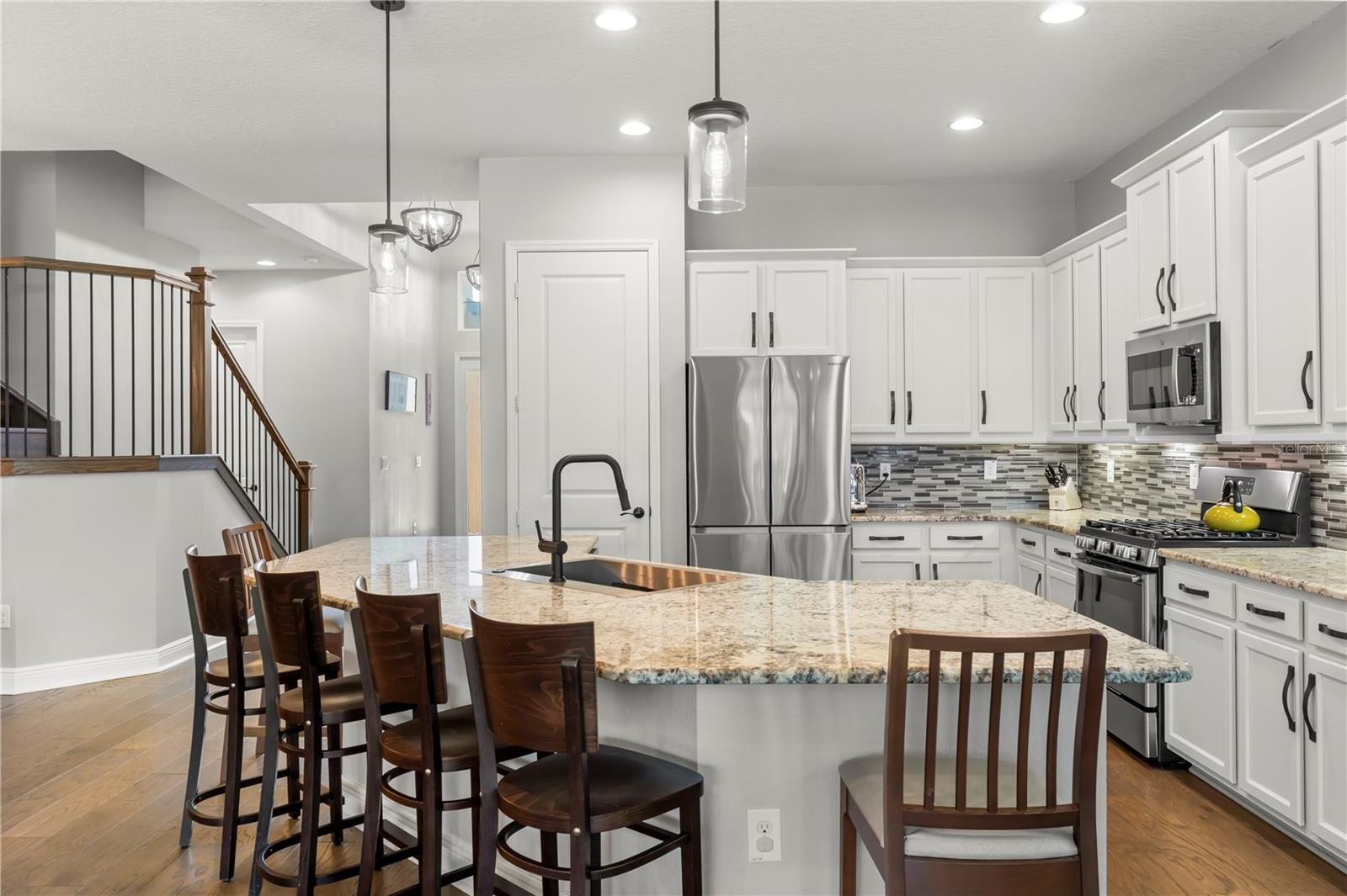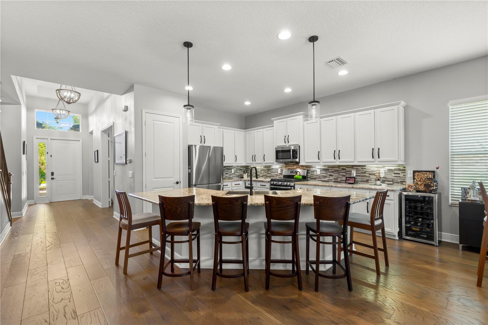 Vendedor motivado e oferta 1 ano pagou as taxas HOA com oferta aceitável! Bem -vindo à sua casa de sonho no condomínio fechado da cordilheira em Wesley Chapel. Esta residência impressionante, construída por GL Homes, mostra a planta baixa de Chandon Grande e fica em um lote de grandes dimensões de quase 1/4 de acre. Do outro lado da rua da sua porta da frente, você encontrará comodidades no estilo resort que farão você se sentir como se estivesse em férias sem fim! Desfrute de um luxuoso clube com sala de festas, Centro de Fitness e Aeróbica com aulas de fitness, sala de jogos, sala de teatro e um tribunal esportivo interno. Do lado de fora, desfrute da piscina de entrada da praia com cabanas à beira da piscina, piscina de volta, toboágua espiral, parque de splash, playground, quadras de tênis iluminadas, quadra de basquete ao ar livre, quadra de vôlei de areia, lareira ao ar livre e churrasqueira. Há muito o que fazer, você nunca vai querer sair de casa! Dentro desta espaçosa sala de bônus de 4 quartos + bônus com 3,5 banheiros e garagem de 2 carros, você descobrirá muito espaço para todos! O exterior possui uma garagem pavimentada de tijolos, um teto de ladrilhos e um paisagismo lindamente mantido pelo HOA, para que você possa esquecer o trabalho do quintal e aproveitar seu tempo livre! O piso plano aberto apresenta pisos de madeira projetados em todas as principais áreas de estar e 1 quarto, enquanto os outros quartos, escadas e sala de bônus apresentam piso de vinil de luxo. Todos os banheiros têm pisos de azulejos elegantes e rodapés largos em toda a casa adicionam um toque de sofisticação. A entrada recebe tetos altos e lustres modernos no estilo da fazenda. A cozinha de comer está equipada com bancadas de granito, ilha com barra de café da manhã com acomodações 6, uma nova pia de grandes dimensões, backsplash de azulejos em mosaico, armários de madeira de vários níveis, despensa e utensílios de aço inoxidável. Adjacente à cozinha, o espaço para refeições apresenta um lustre e espaço de fazenda de bulbo Edison moderno de Edison para uma mesa maior. A grande sala é aconchegante e grandiosa, com teto de bandeja, iluminação embutida, ventilador de teto e controles deslizantes, levando a um pátio de tijolos de tamanho grande e coberto. Além disso, há um pátio de churrasco aberto com muito espaço para correr e jogar e uma vista das árvores para privacidade. A suíte principal do quarto no 1º nível é um refúgio verdadeiro, com dois grandes armários com organizadores embutidos, um teto de bandeja com iluminação embutida, e um banheiro de suíte com vanidades duplas, balcões de quartzo, pias duplas, uma banheira de jardim, um chuveiro separado com chuveiro de chuveiro, e um fechamento de água privada. Todos os quartos vêm com ventiladores de teto, e há 3 quartos adicionais e mais 2 banheiros completos no andar de baixo. Chefe no andar de cima através da escada moderna para a espaçosa sala de bônus/ loft, que inclui seu próprio banho. Esse espaço versátil pode ser o seu quinto quarto, escritório, sala de mídia, sala de jogos ou sala de artesanato - as possibilidades são infinitas! As vantagens adicionais incluem um novo amaciador de água, sistema de filtração de água inteira, fornecendo água potável a todas as torneiras, campainha do anel e todos os novos aparelhos (exceto o alcance), além de um novo descarte de lixo. A taxa HOA inclui: manutenção de gramado e paisagismo, fertilização, aparar árvores uma vez por ano, controle de pragas externo, casa de guarda 24/7, todas as comodidades e áreas comuns, equipe de gerenciamento e erros de rua. Não perca a chance de tornar essa casa divertida e fabulosa - onde todos os dias parecem férias!