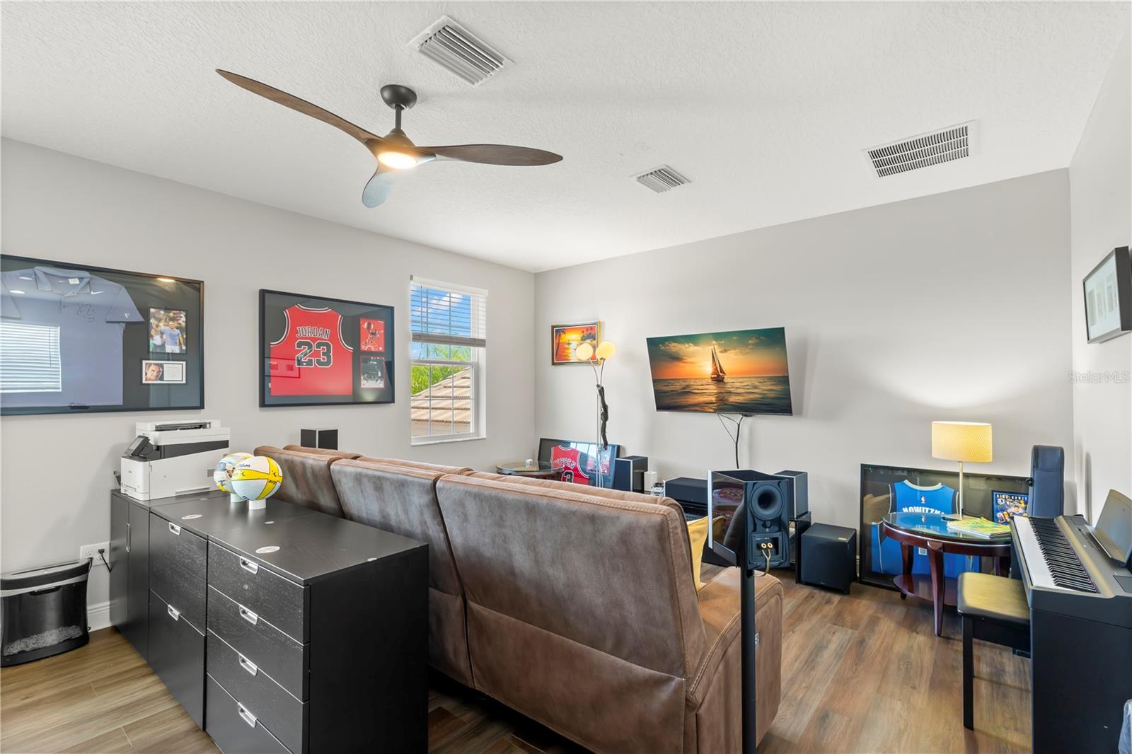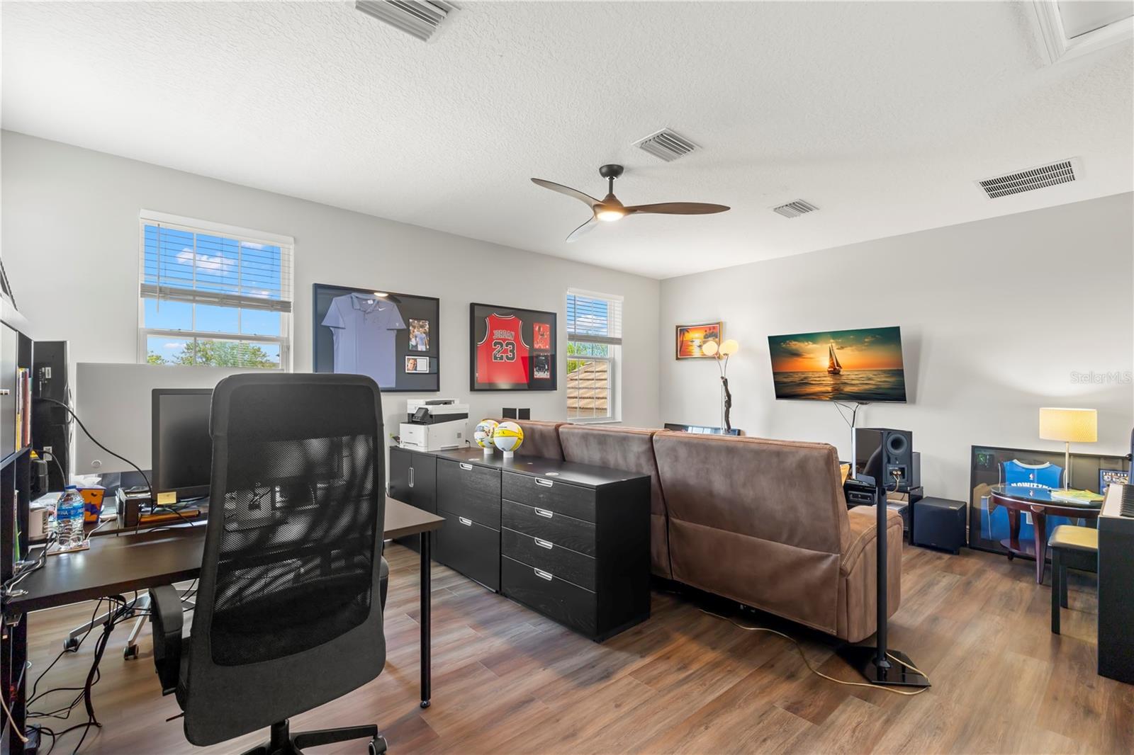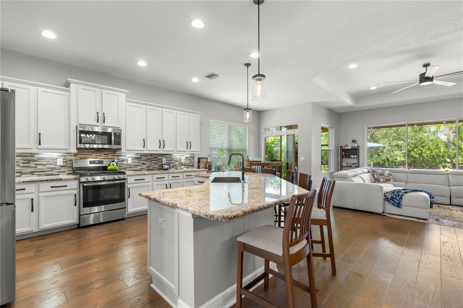 Vendedor motivado e oferta 1 ano pagou as taxas HOA com oferta aceitável! Bem -vindo à sua casa de sonho no condomínio fechado da cordilheira em Wesley Chapel. Esta residência impressionante, construída por GL Homes, mostra a planta baixa de Chandon Grande e fica em um lote de grandes dimensões de quase 1/4 de acre. Do outro lado da rua da sua porta da frente, você encontrará comodidades no estilo resort que farão você se sentir como se estivesse em férias sem fim! Desfrute de um luxuoso clube com sala de festas, Centro de Fitness e Aeróbica com aulas de fitness, sala de jogos, sala de teatro e um tribunal esportivo interno. Do lado de fora, desfrute da piscina de entrada da praia com cabanas à beira da piscina, piscina de volta, toboágua espiral, parque de splash, playground, quadras de tênis iluminadas, quadra de basquete ao ar livre, quadra de vôlei de areia, lareira ao ar livre e churrasqueira. Há muito o que fazer, você nunca vai querer sair de casa! Dentro desta espaçosa sala de bônus de 4 quartos + bônus com 3,5 banheiros e garagem de 2 carros, você descobrirá muito espaço para todos! O exterior possui uma garagem pavimentada de tijolos, um teto de ladrilhos e um paisagismo lindamente mantido pelo HOA, para que você possa esquecer o trabalho do quintal e aproveitar seu tempo livre! O piso plano aberto apresenta pisos de madeira projetados em todas as principais áreas de estar e 1 quarto, enquanto os outros quartos, escadas e sala de bônus apresentam piso de vinil de luxo. Todos os banheiros têm pisos de azulejos elegantes e rodapés largos em toda a casa adicionam um toque de sofisticação. A entrada recebe tetos altos e lustres modernos no estilo da fazenda. A cozinha de comer está equipada com bancadas de granito, ilha com barra de café da manhã com acomodações 6, uma nova pia de grandes dimensões, backsplash de azulejos em mosaico, armários de madeira de vários níveis, despensa e utensílios de aço inoxidável. Adjacente à cozinha, o espaço para refeições apresenta um lustre e espaço de fazenda de bulbo Edison moderno de Edison para uma mesa maior. A grande sala é aconchegante e grandiosa, com teto de bandeja, iluminação embutida, ventilador de teto e controles deslizantes, levando a um pátio de tijolos de tamanho grande e coberto. Além disso, há um pátio de churrasco aberto com muito espaço para correr e jogar e uma vista das árvores para privacidade. A suíte principal do quarto no 1º nível é um refúgio verdadeiro, com dois grandes armários com organizadores embutidos, um teto de bandeja com iluminação embutida, e um banheiro de suíte com vanidades duplas, balcões de quartzo, pias duplas, uma banheira de jardim, um chuveiro separado com chuveiro de chuveiro, e um fechamento de água privada. Todos os quartos vêm com ventiladores de teto, e há 3 quartos adicionais e mais 2 banheiros completos no andar de baixo. Chefe no andar de cima através da escada moderna para a espaçosa sala de bônus/ loft, que inclui seu próprio banho. Esse espaço versátil pode ser o seu quinto quarto, escritório, sala de mídia, sala de jogos ou sala de artesanato - as possibilidades são infinitas! As vantagens adicionais incluem um novo amaciador de água, sistema de filtração de água inteira, fornecendo água potável a todas as torneiras, campainha do anel e todos os novos aparelhos (exceto o alcance), além de um novo descarte de lixo. A taxa HOA inclui: manutenção de gramado e paisagismo, fertilização, aparar árvores uma vez por ano, controle de pragas externo, casa de guarda 24/7, todas as comodidades e áreas comuns, equipe de gerenciamento e erros de rua. Não perca a chance de tornar essa casa divertida e fabulosa - onde todos os dias parecem férias!