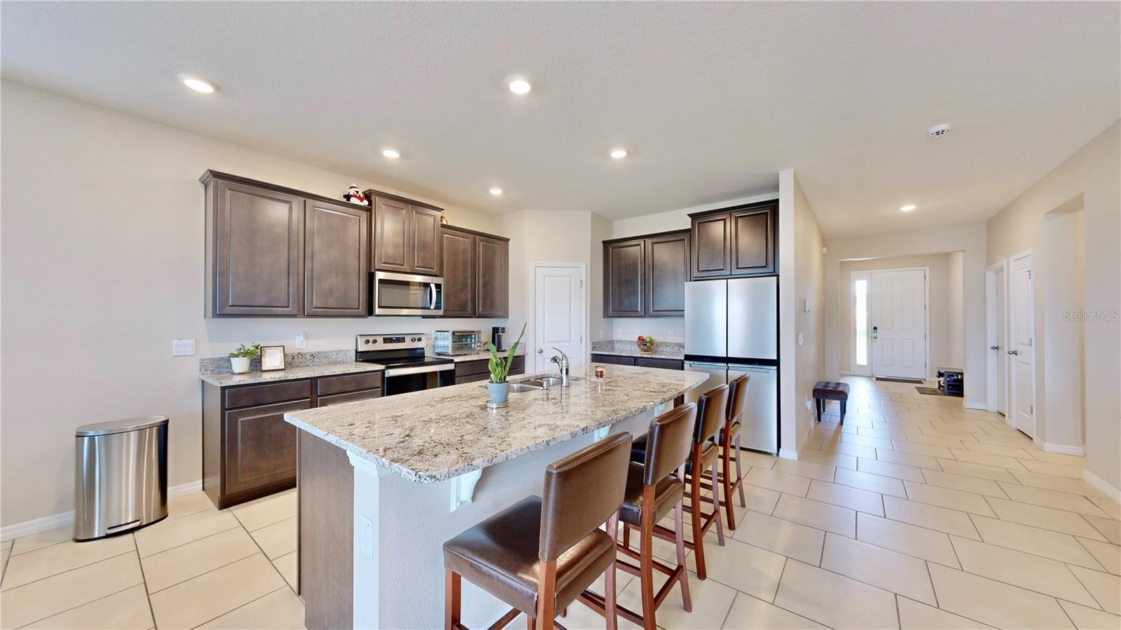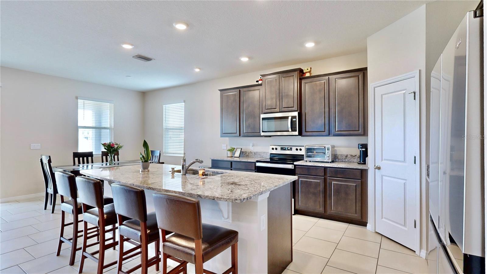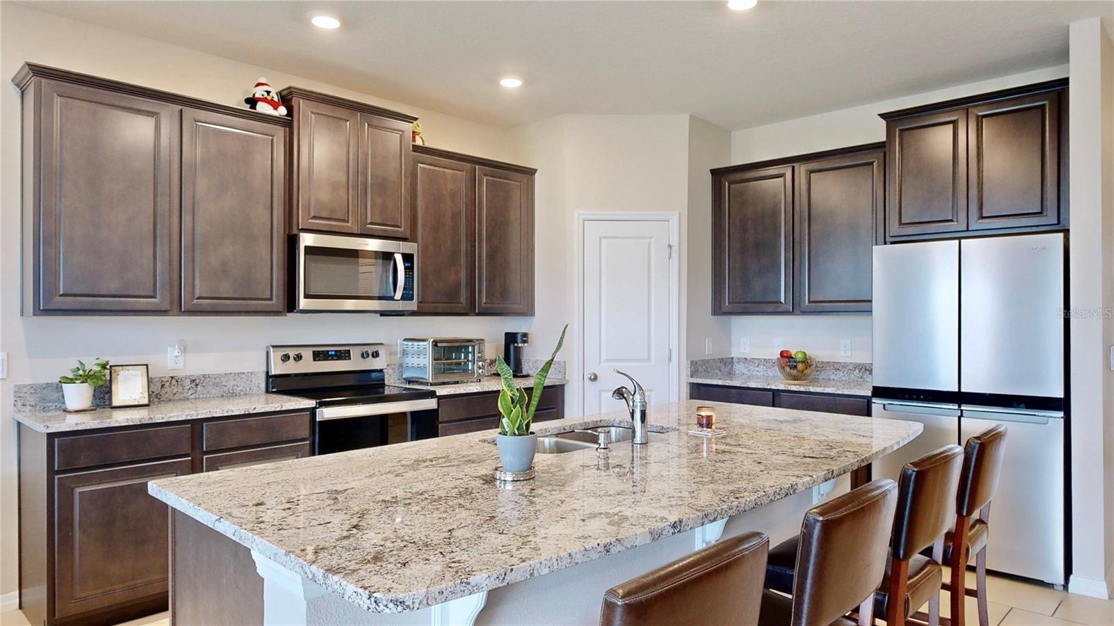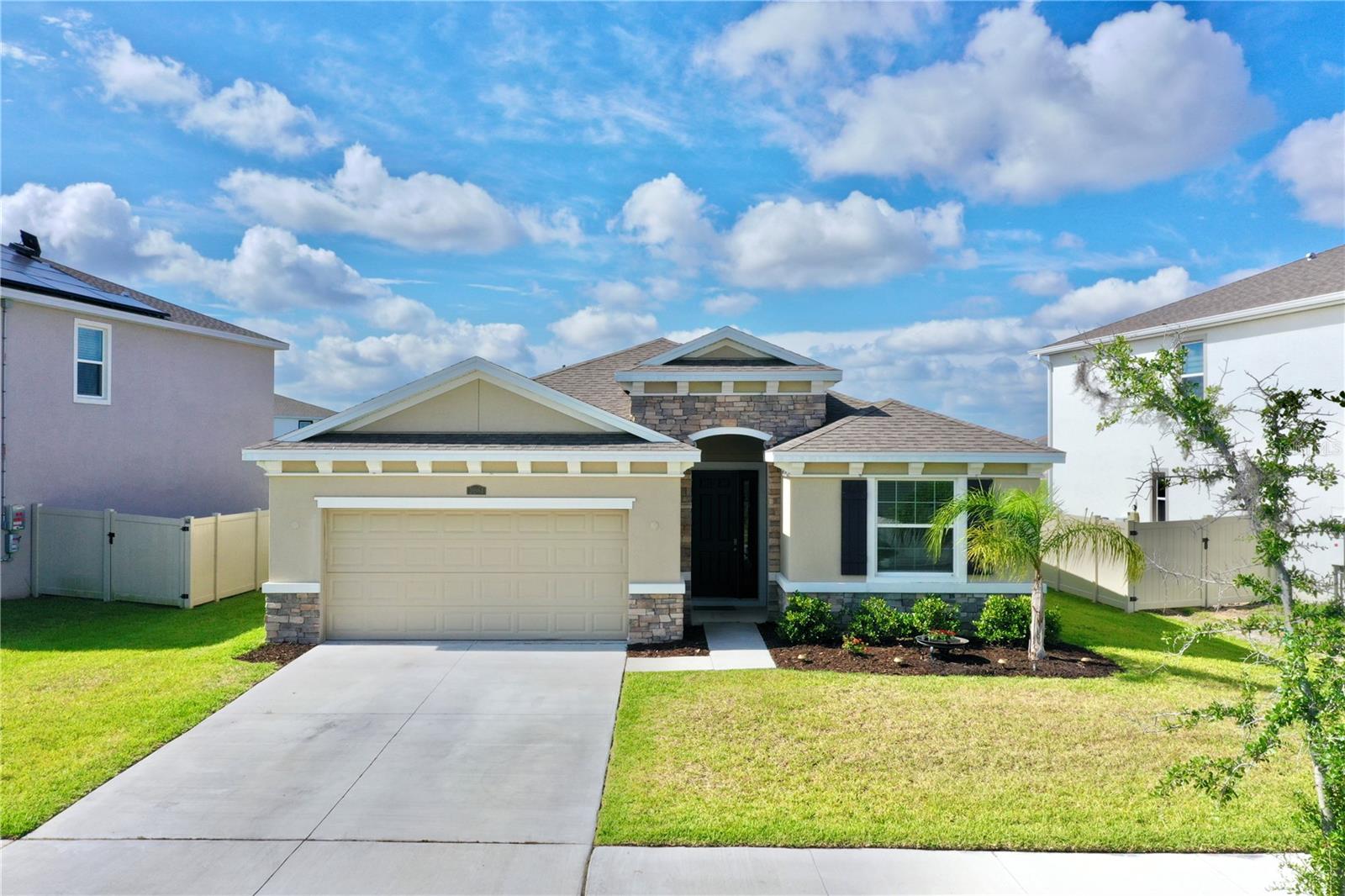 Bem-vindo à desejável comunidade de Epperson Lagoon! Entre em seu amplo rancho "como novo", um popular modelo Lantana construído por DR Horton em 2022. A pedra externa junto com o paisagismo bem cuidado adicionam um toque encantador a esta casa, proporcionando uma entrada acolhedora. Perto da frente da casa você encontrará dois quartos e um banheiro completo, acesso à lavanderia (o conjunto de lavadora e secadora Whirlpool permanece com a casa) e acesso à garagem para dois carros. O próximo corredor o levará a outro quarto espaçoso, bem como a um lavabo. A casa está conectada a um sistema ADT com painel inteligente e detecção de fumaça aprimorada. O espaço aberto está centrado em torno da cozinha deslumbrante. As lindas bancadas de granito acentuam os ricos armários, e você vai adorar a pia na grande ilha. Além da área de jantar iluminada, há lugares sentados na ilha, bem como muito espaço de armazenamento e balcão adicional. A despensa de canto é, no mínimo, espaçosa! Na parte traseira da casa você encontrará uma suíte principal que é realmente um retiro próprio. Armários duplos facilitam o armazenamento. O banheiro amplo tem banheira de imersão, chuveiro grande de azulejos, armário de roupa de cama próprio e vaso sanitário privativo. As pias duplas e as bancadas de granito criam uma penteadeira perfeita. Aproveite a vista do lago da sua grande varanda coberta. Este é o lugar perfeito para aproveitar a sua noite! Epperson tem uma lagoa de 7,5 acres com mais coisas para fazer do que você imagina! Caiaque, vôlei de praia, escalada e bar aquático são apenas algumas das coisas que você pode esperar. Esta comunidade amigável para carrinhos de golfe é fácil de se locomover para seus eventos favoritos na lagoa, incluindo música ao vivo, food trucks e eventos de fim de semana. Convenientemente localizado perto da I-75, Publix, Starbucks e escolas de primeira linha, este condomínio oferece infinitas possibilidades de diversão e conveniência. Não perca a oportunidade de fazer desta a sua nova casa - agende hoje mesmo uma exibição privada!