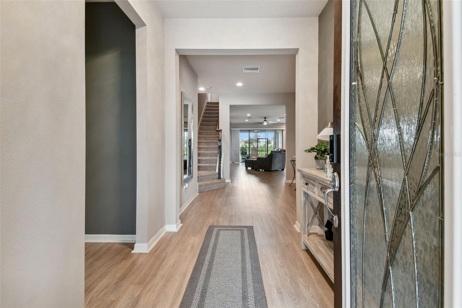 Descubra um luxo incomparável nesta requintada casa Pulte Pompeii Grand, onde cada detalhe exala elegância e sofisticação. Abrangendo 2.802 pés quadrados, esta impressionante residência de 2 andares possui 3 quartos, cada um com seu próprio banheiro privativo e closet, além de um escritório convidativo e uma ampla sala de bônus/mídia. O escritório pode ser um quarto quarto com uma porta de instalação rápida. Quando a mãe natureza aparece inesperadamente e falta energia você fica um pouco menos preocupado com esta casa, pois ela possui um gerador Generac para toda a casa. Você pode garantir que sua casa permaneça ligada, independentemente do clima. Ao entrar na casa, pela porta frontal de vidro gravado de 2,5 metros, você é recebido em um hall de entrada duplo sob tetos altos de 3 metros. A planta aberta conecta perfeitamente uma sala de jantar/estar adornada com uma impressionante parede com assinatura shiplap, complementando a vibrante lareira elétrica e o manto personalizado. A cozinha gourmet é o sonho de qualquer chef, ostentando uma deslumbrante ilha de granito, complementada por um backsplash de pedra e eletrodomésticos de última geração em aço inoxidável. Há espaço para bancos de bar na ilha da cozinha, bem como uma área de jantar de bom tamanho adjacente à cozinha. Em toda a casa, luminárias deslumbrantes acrescentam um toque de opulência, com lustres pendentes iluminando a ilha da cozinha e criando um ambiente acolhedor. A grande sala iluminada pelo sol, reforçada por tetos altos e três portas de vidro deslizantes, abre para uma varanda com vista para um lago tranquilo - um local perfeito para o café da manhã ou para relaxar à noite. A versatilidade do escritório permite diversas utilizações, seja como escritório, sala de jantar formal ou espaço lúdico para crianças. O retiro do proprietário é um santuário de luxo, com piso laminado, uma parede exclusiva e portas francesas que se abrem para um banheiro principal tipo spa. Aqui, pias duplas com bancada em granito complementam uma super ducha com bancada e chuveiro efeito chuva. O closet personalizado é uma obra-prima por si só, adornado com um lustre deslumbrante, gavetas amplas, um cesto e prateleiras infinitas. Há um lavabo no mesmo corredor da lavanderia e a lavanderia possui armários personalizados para ótima arrumação. No andar de cima, uma espaçosa sala de bônus oferece flexibilidade como academia ou sala de mídia. Há também um quarto com banheiro privativo. Destaques adicionais incluem persianas com painéis decorativos, sistema de som surround, proteção contra pragas nas paredes e amaciador de água. Esta casa excepcional está situada na prestigiosa comunidade Epperson, conhecida por sua conectividade UltraFi e comodidades de estilo de vida vibrantes. Os moradores têm acesso à Lagoa Epperson azul cristalina, com praia de areia, tiki bar aquático, cabanas, piscina estilo resort, toboágua, caiaques, pranchas de remo e um calendário repleto de eventos comunitários. Localizado a poucos minutos de restaurantes, lojas e cuidados de saúde. Esta comunidade está convenientemente localizada perto da I-75, Epperson oferece fácil acesso às praias do Golfo, ao centro de Tampa, ao Aeroporto Internacional de Tampa e a Orlando, tudo a cerca de uma hora de carro. Aproveite a vida luxuosa e a conveniência incomparável nesta casa notável.