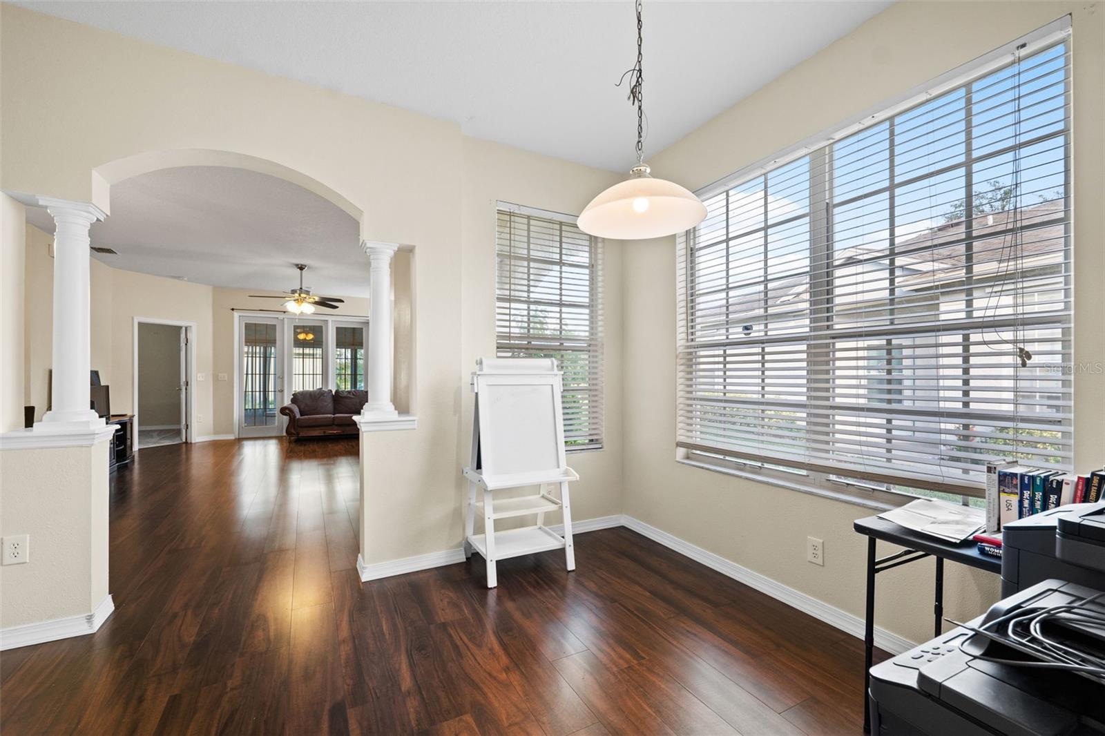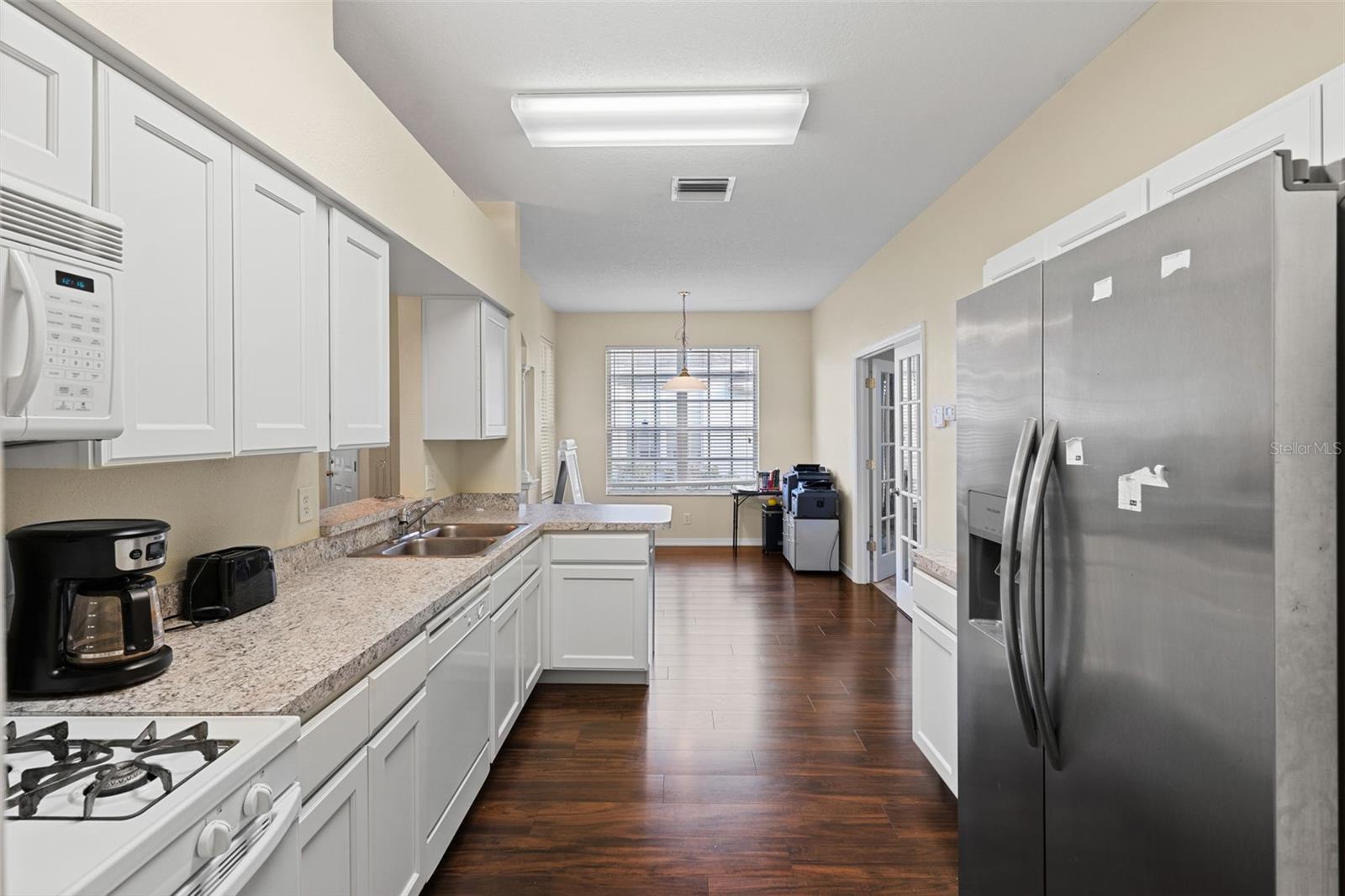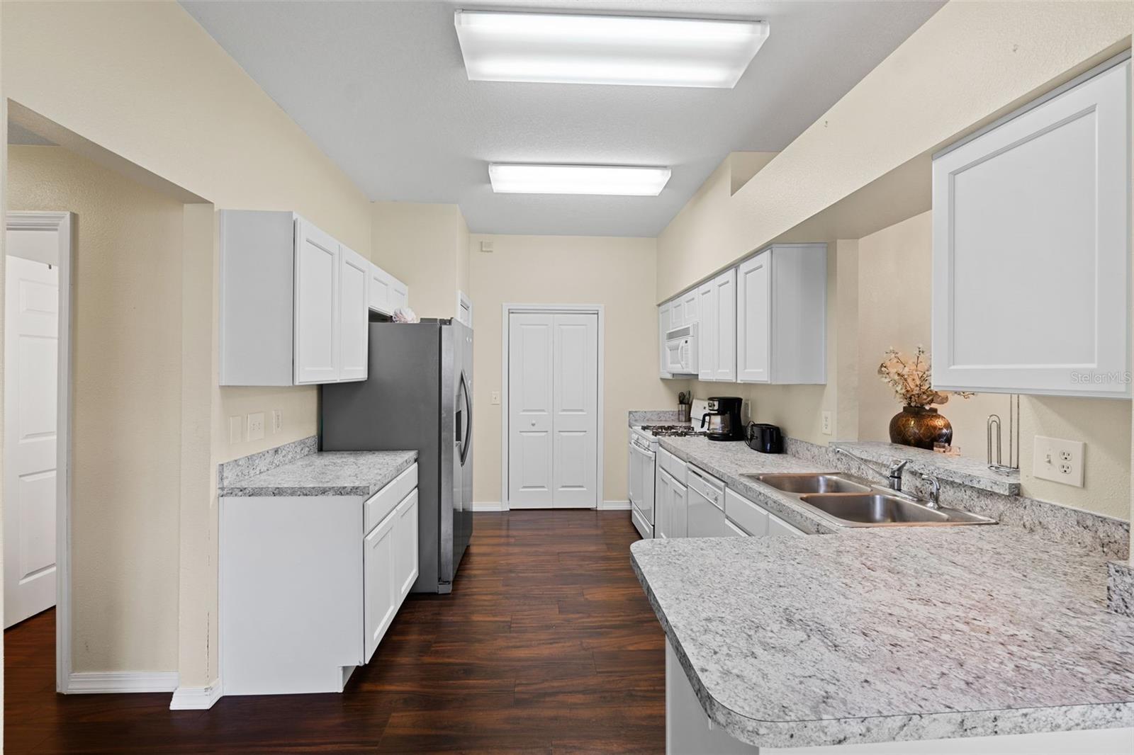 Diminuição do preço principal! Uma oportunidade incrível para o comprador perfeito! Bem -vindo a esta bela vila remodelada, o lugar perfeito para chamar de lar! Oferecendo 2 quartos, 2 banheiros completos, um grande escritório/escritório, uma garagem de 2 carros e atualizações em abundância! Ao entrar, você será recebido por uma espaçosa área de estar que possui um piso plano aberto e um novo piso laminado por toda parte. A cozinha possui novas bancadas, novos armários e um fogão a gás, perfeito para o chef da casa. Esta casa oferece 2 quartos espaçosos, uma suíte primária com um banheiro privativo completo com pia dupla, vaidade e grande caminhada no armário. O quarto de hóspedes está convenientemente localizado perto do 2º banheiro. Esta vila também inclui uma área de lanai fechada e um pátio privado de frente para um lago, garantindo tranquilidade. Villas de folhas longas de Meadow Pointe é um condomínio fechado com uma piscina espaçosa, playground, parque e clubhouse cria uma vida perfeita no estilo resort! A taxa de manutenção inclui gramado, portão, substituição do telhado, tinta externa e reservas. Marque uma consulta para ver esta linda vila agora!