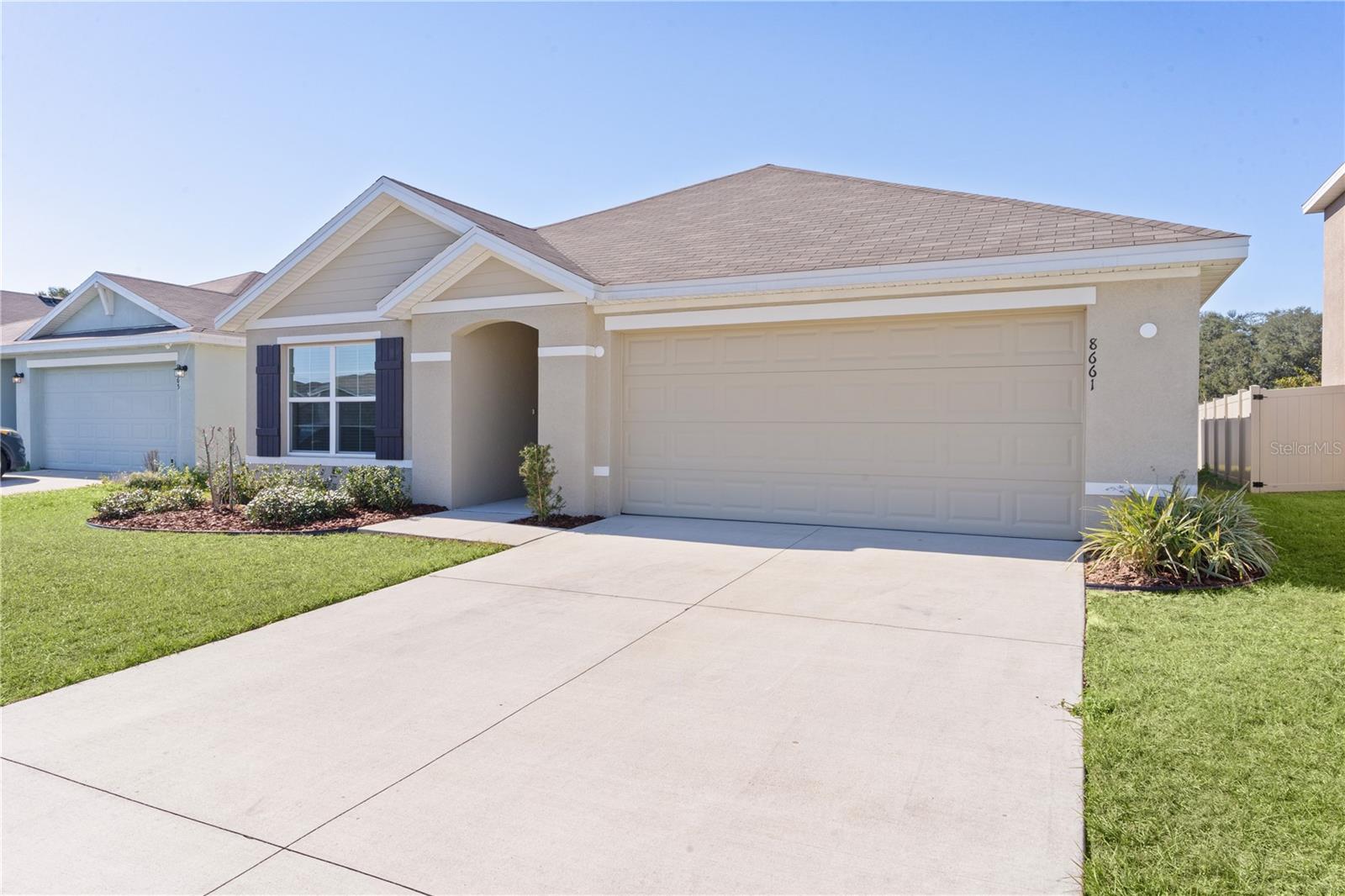 Modelo ARIA 2022 – Bloco de concreto 3BR/2BA com garagem para 2 carros em Quiet Triumph South, Wildwood! Construída em 2022, esta casa pronta para morar oferece 1.664 pés quadrados de planta aberta com azulejos de cerâmica nas áreas principais e carpete macio nos quartos. A cozinha do chef possui bancadas de granito, uma grande ilha, eletrodomésticos de aço inoxidável e uma despensa - perfeita para entretenimento. A suíte principal privativa inclui um enorme closet e um banheiro privativo com pia dupla, um amplo box com chuveiro com efeito de chuva e um vaso sanitário separado. Um layout desejável de quartos divididos oferece privacidade, com dois quartos de hóspedes e um banheiro completo em sua própria ala. Desfrute de lavanderia interna, uma varanda coberta e um quintal privativo cercado de vinil, sem vizinhos traseiros - ideal para relaxar, animais de estimação ou até mesmo adicionar uma piscina. Localizado em uma comunidade de baixo tráfego com parque/playground próprio. Convenientemente perto de The Villages, lojas, restaurantes, praças da cidade e novas lojas, incluindo Lowe's, Target, Chipotle, Costco, Walmart e muito mais. Situado numa zona em crescimento e com forte procura de arrendamento, tornando-o ideal para habitação a tempo inteiro ou investimento.