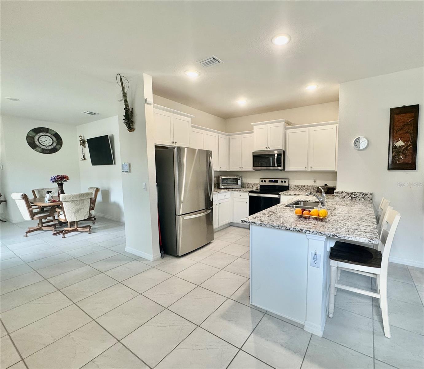 NOVO PREÇO! Bem-vindo a este encantador modelo Astor de 3 quartos e 2 banheiros localizado na desejável comunidade de Beaumont. Esta casa possui uma planta aberta com azulejos de cerâmica de 18 polegadas nas principais áreas de estar e carpetes macios em todos os quartos para maior conforto. A espaçosa cozinha é ideal para cozinhar e se divertir, oferecendo bancadas de granito, armários de madeira e eletrodomésticos de aço inoxidável, incluindo geladeira, fogão, lava-louças e lavadora/secadora. A suíte master possui pias duplas com bancada em granito, enquanto os dois quartos adicionais oferecem amplo espaço para hóspedes ou home office. Saia para desfrutar de um quintal privado com árvores de fruto (laranjeiras, tangerineiras, ameixas), perfeito para relaxar ou desfrutar da natureza. Os recursos adicionais incluem duas rampas removíveis para cadeiras de rodas, se necessário. Uma sauna portátil e um carrinho de golfe Yamaha 2010 estão disponíveis para compra separadamente. Como parte das comodidades cobertas pelo HOA, os residentes desfrutam de uma piscina estilo resort, academia, clube, quadras de pickleball e bocha. Além disso, manutenção do gramado, internet e cabo - tudo incluído para um estilo de vida verdadeiramente descomplicado. Idealmente localizado a poucos minutos de Brownwood e Sumter Square em The Villages, com vários restaurantes e opções de compras nas proximidades. Além disso, um novo Target está sendo construído nas proximidades, acrescentando ainda mais conveniência a esta localização já privilegiada. Não perca a chance de conhecer esta bela casa e comunidade de estilo de vida ativo - agende sua exibição hoje mesmo!