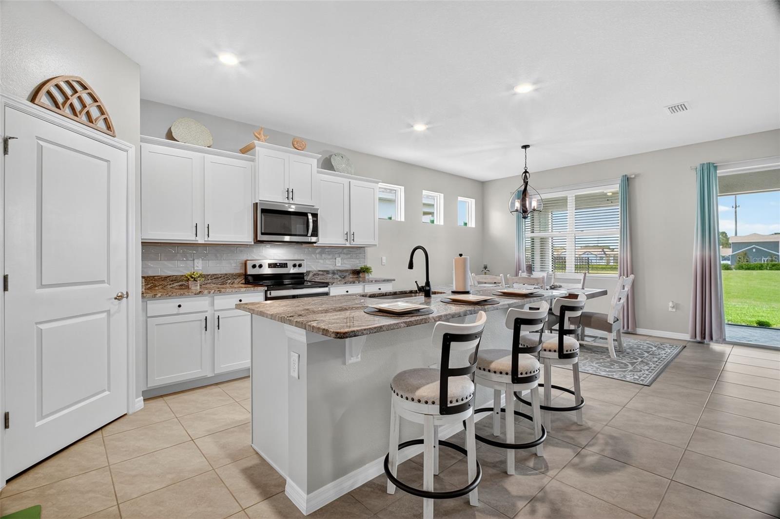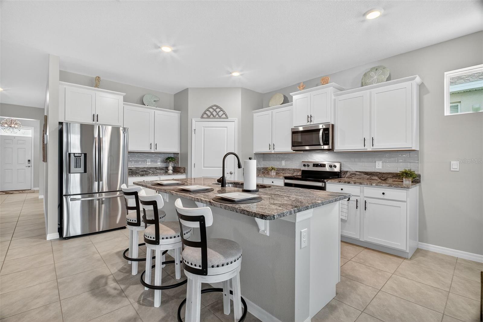 Bem-vindo a esta casa lindamente mantida de 4 quartos e 2 banheiros, localizada na comunidade de Beaumont, familiar! Entre em um layout de conceito aberto com piso de ladrilhos, uma espaçosa área de estar e uma cozinha moderna. A cozinha apresenta bancadas em granito, backsplash de telha, utensílios de aço inoxidável e uma grande ilha perfeita para entretenimento! A planta piso de quartos divididos oferece privacidade, com uma espaçosa suíte primária completa com um closet e banheiro privativo com vaidades duplas e um chuveiro. Três quartos adicionais oferecem amplo espaço para a família, os hóspedes ou um escritório em casa. Todos os quartos, espaço de estar e Lanai têm ventiladores de teto por controle remoto. Lá fora, desfrute de um quintal tranquilo com um lanai exibido - ideal para o café da manhã ou acabando após um longo dia. Sem vizinhos traseiros! Esta casa também está equipada com um amaciador de água e sistema de filtração de casa inteira! O exterior da casa inclui calhas bem conservadas para maior proteção e durabilidade. A comunidade de Beaumont apresenta uma piscina de estilo resort, fitness center, quadras de pickleball, bocce e trilha de caminhada para seu prazer, além de acesso ao carrinho de golfe às aldeias. Localização incrível com acesso a novas opções de compras e restaurantes - Target, Lowe's, Home Depot, Publix e muito mais! Perto das aldeias Brownwood Paddock Square e Downtown Wildwood!