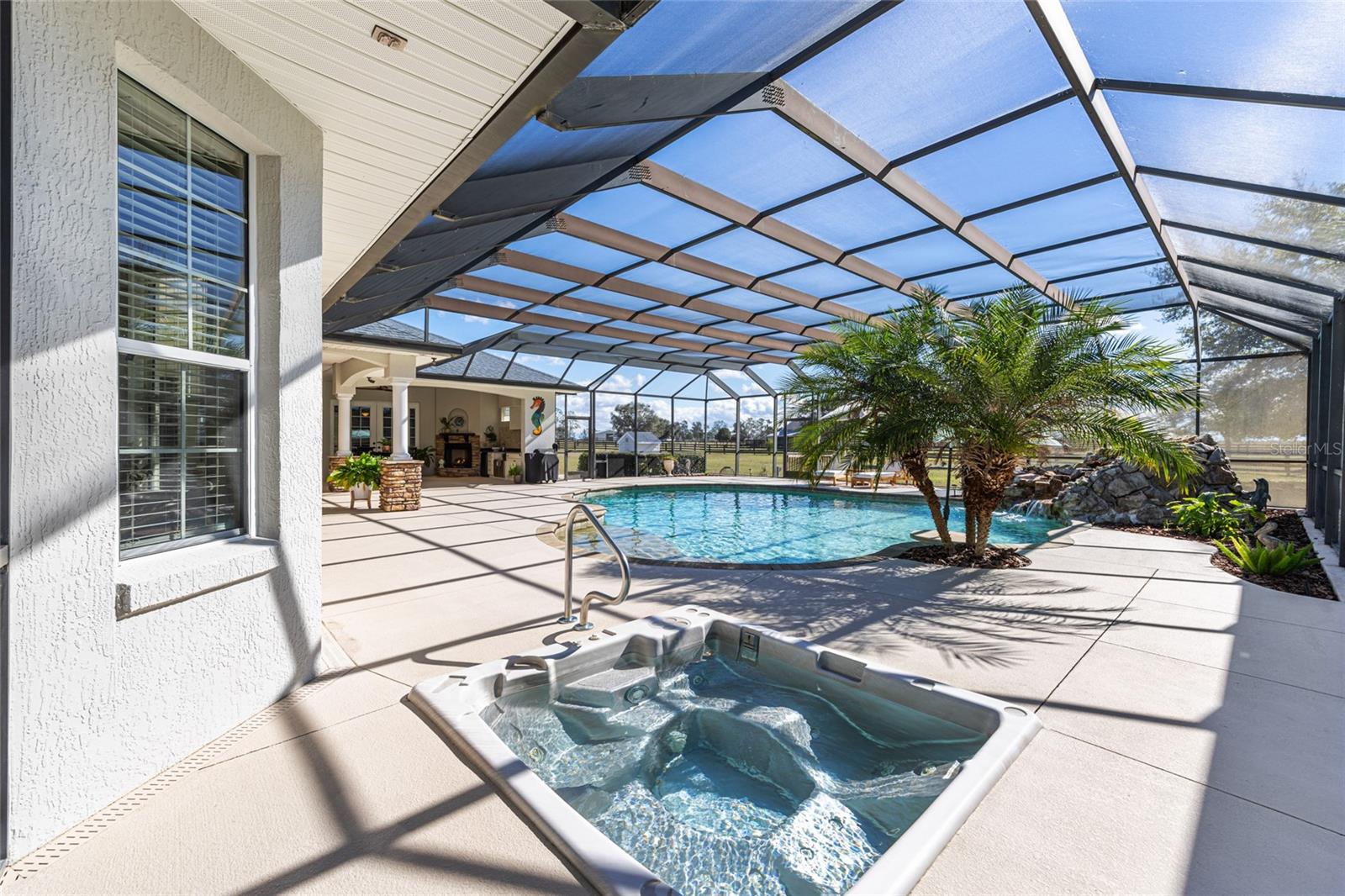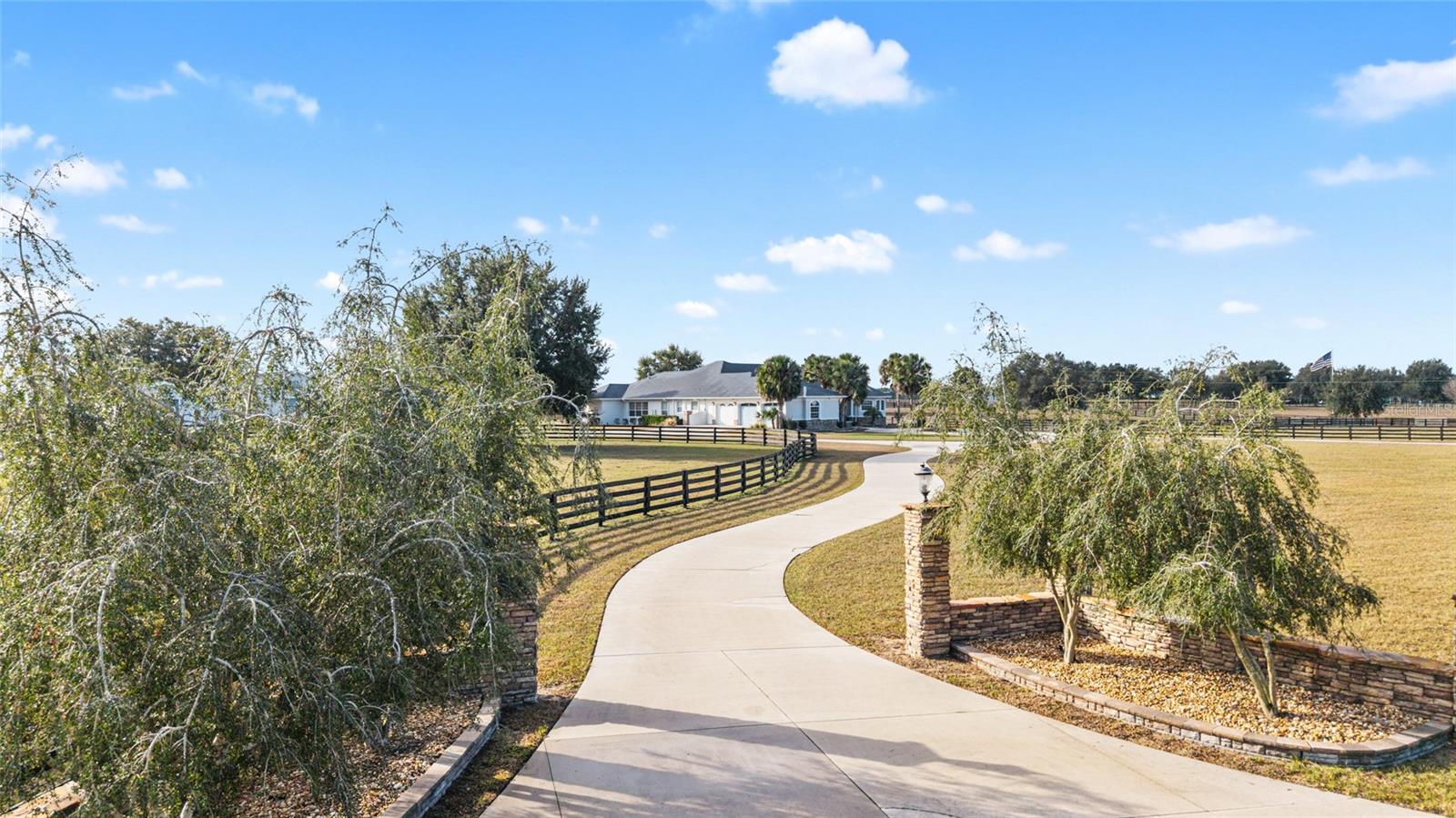 Bem-vindo a esta propriedade distinta na comunidade exclusiva de Equine Acres. Situada em dez hectares totalmente cercados e cercados em Wildwood, ao sul de Ocala e a poucos minutos de The Villages, esta propriedade oferece uma mistura refinada de luxo, privacidade e funcionalidade para entusiastas de cavalos e para aqueles que procuram um amplo retiro no campo. Com duas residências separadas na propriedade, é bastante versátil. Um caminho circular com colunas de pedra apresenta a residência imponente, que se estende por 4.829 pés quadrados sob o ar. Portas duplas abrem para um grande hall de entrada e uma planta arejada projetada para uma vida confortável e entretenimento elegante. Além da entrada, uma parede de portas francesas emoldura vistas serenas da área de estar ao ar livre em estilo resort. Os acabamentos incluem pisos de madeira e cerâmica, tetos altos com sancas e isolamento de espuma de icineno nas paredes e tetos para maior eficiência. O som surround está totalmente integrado. A cozinha bem equipada do chef está equipada com eletrodomésticos de aço inoxidável, bancadas em granito, armários personalizados de madeira maciça com exaustor combinando, fornos de parede dupla, gaveta de aquecimento, despensa e balcão para café da manhã com vista para a sala de estar. Uma lareira a gás de pedra ancora o espaço de reunião familiar, enquanto a copa adjacente convida à luz do sol da manhã e à vista da piscina. A suíte do proprietário oferece um santuário privativo com acesso à varanda, área de estar, closet duplo e banheira estilo spa com pia dupla, chuveiro romano e banheira de hidromassagem. Dois quartos adicionais oferecem closets e banheiros privativos, complementados por lavabo, banheiro completo para piscina e ampla lavanderia. A sala de bônus permite o uso flexível para um espaço de teatro, fitness ou recreação e se conecta a uma garagem anexa para três carros. Projetada para diversão o ano todo, a área externa conta com piscina aquecida de água salgada com cascata de pedra e spa, emoldurada por uma tela de silhueta tropical. A varanda coberta e a cozinha externa completa criam um ambiente ideal para entretenimento ou relaxamento tranquilo. Uma estrutura separada de 40 por 40 pés, projetada para espelhar a arquitetura da casa principal, inclui um apartamento de hóspedes completo de um quarto, cozinha completa e lavabo com chuveiro, além de garagem e espaço para oficina. Quatro pastos cercados com acesso à água acomodam cavalos, gado ou produção de feno. Há também um celeiro de 50' x 60' com loft na parte traseira da propriedade. Localizada em uma rua pavimentada entre propriedades semelhantes, esta propriedade oferece serenidade e espaço próximo a restaurantes, lojas e locais equestres. Uma lista abrangente de recursos está disponível mediante solicitação. Agende uma exibição privada para conhecer esta propriedade excepcional em primeira mão.