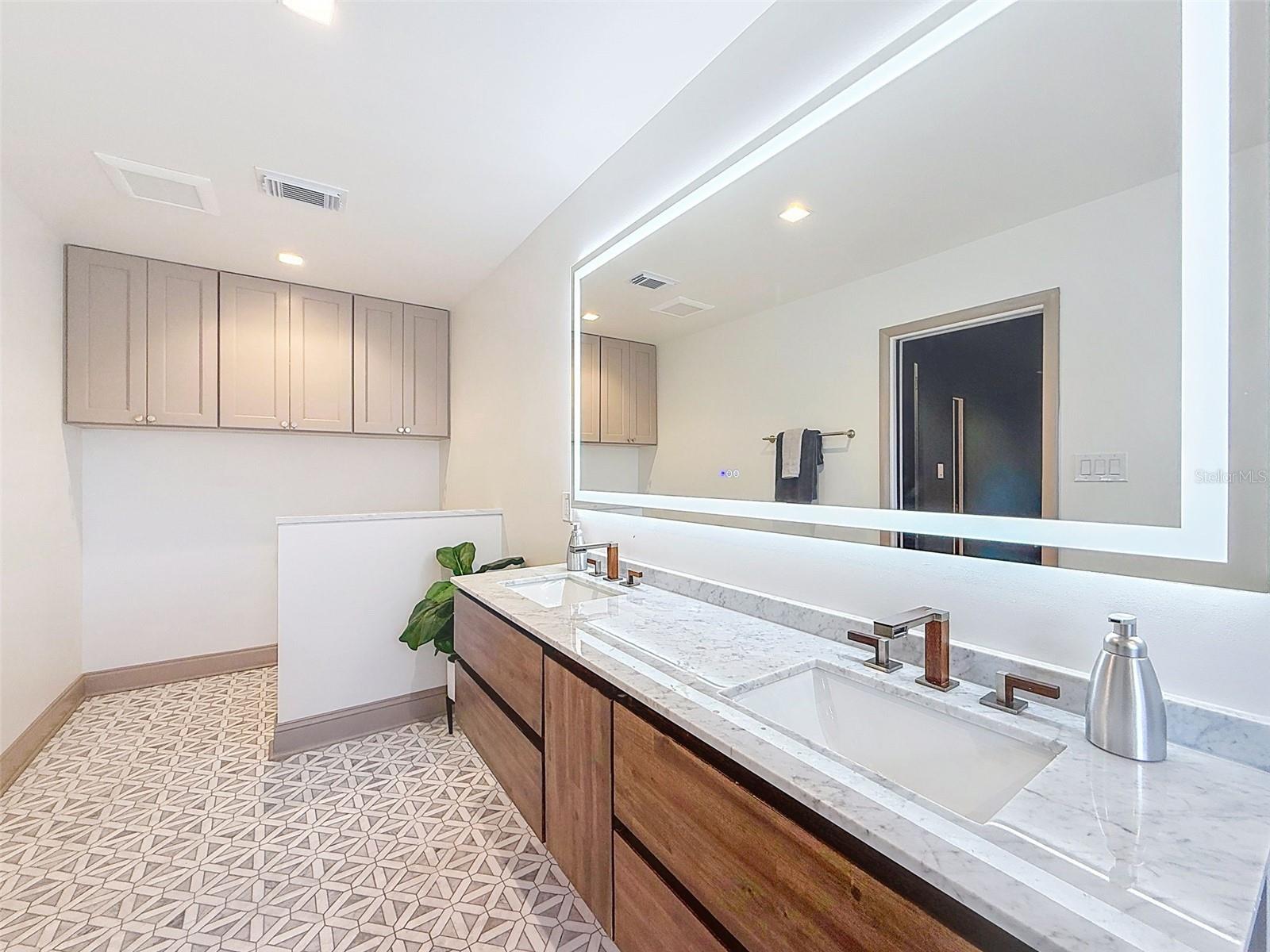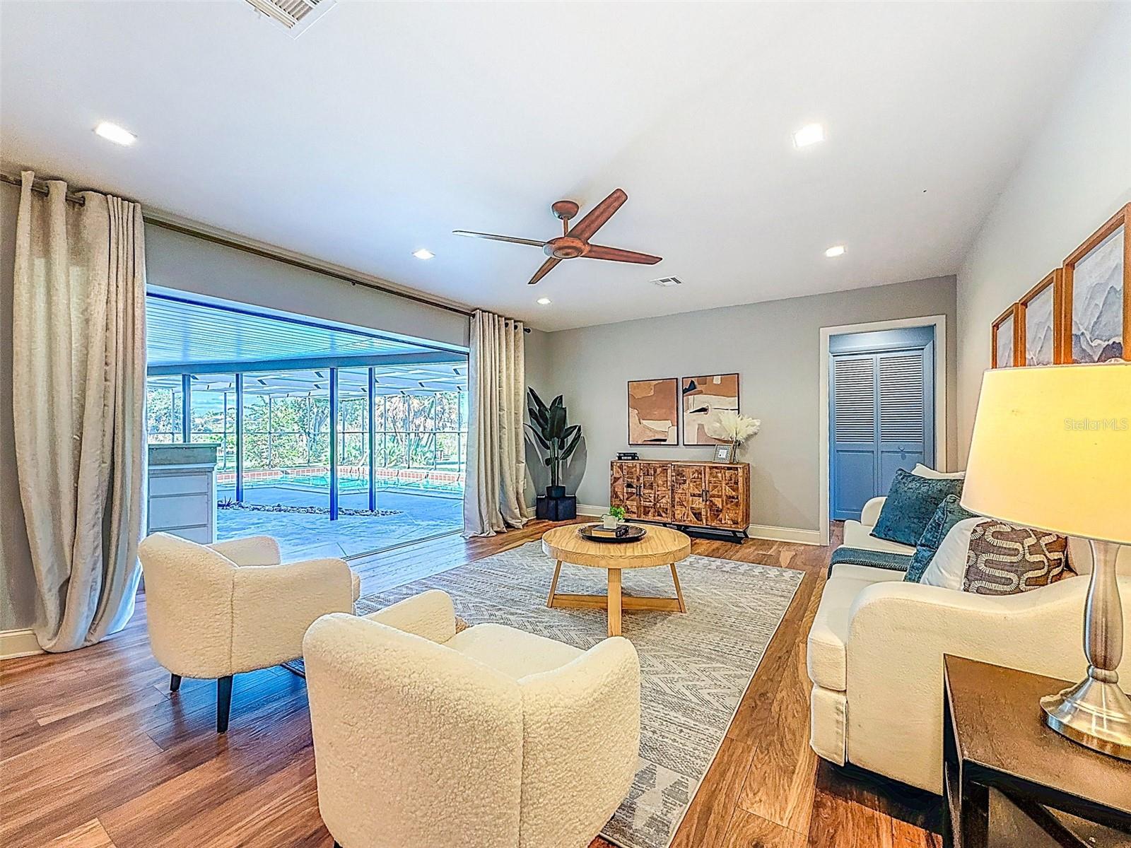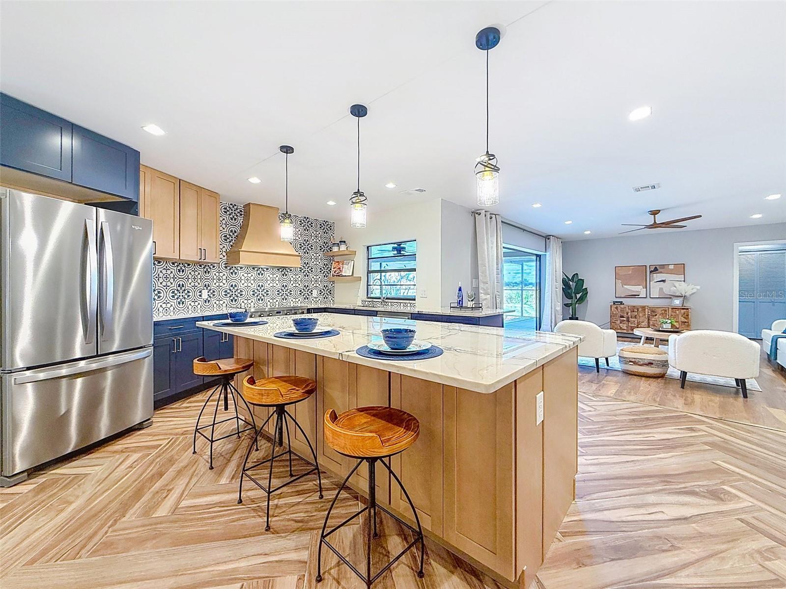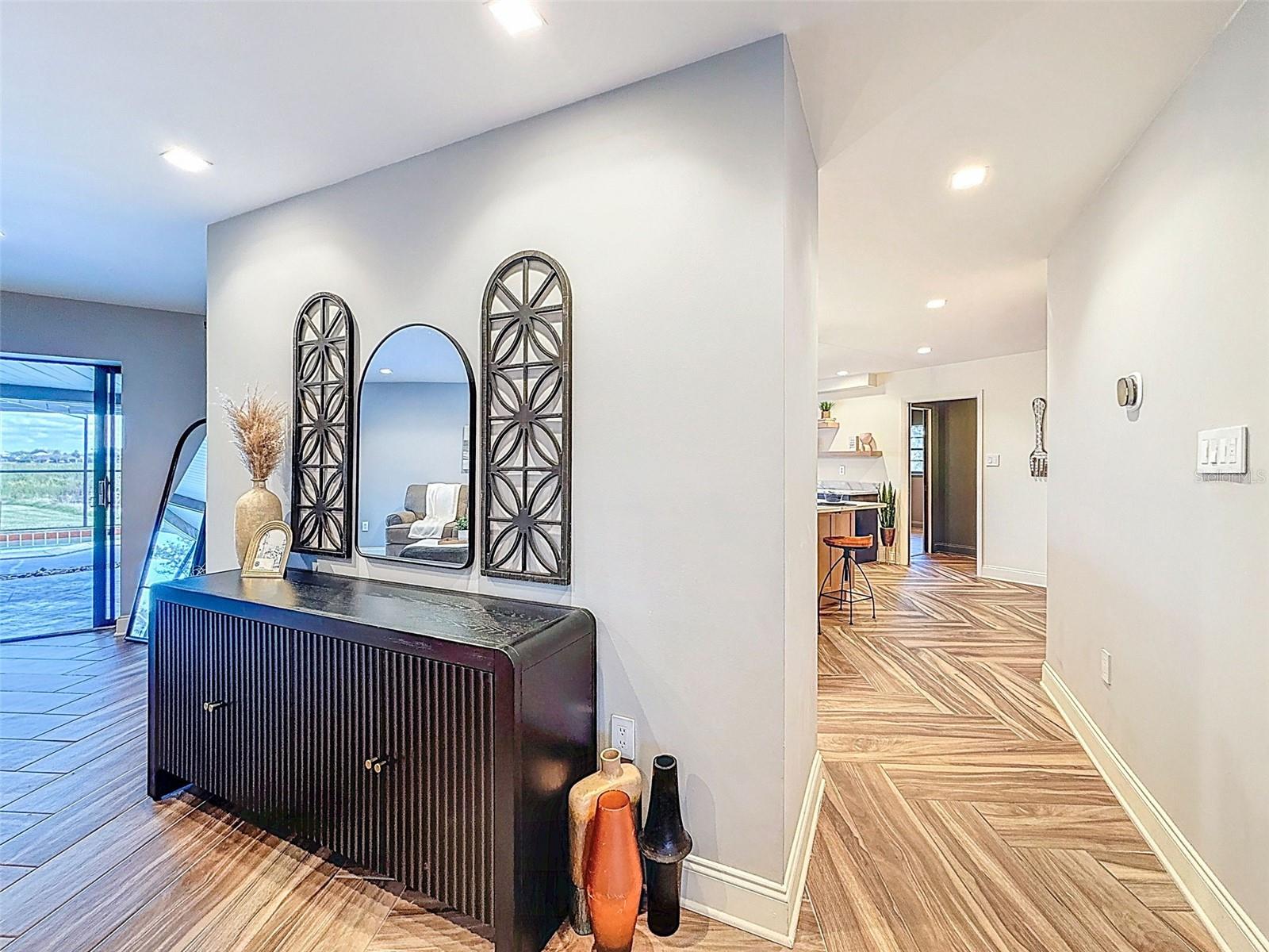 Uma ou mais fotos foram virtualmente encenadas. É aqui que as renovações modernas e uma verdadeira obsessão pelos detalhes se encontram com o estilo de vida dos lagos da Flórida. Situada diretamente no Lago Miona, um lago de esqui de 400 ± acres - esta casa renovada com piscina de 3 quartos / 3 banheiros em um lindo lote de 0,75 acres, oferece serenidade tranquila à beira-mar e esportes aquáticos de força total: passeios de barco, wakeboard, esqui, tubing, paddleboarding, caiaque, pesca e cruzeiro ao pôr do sol no seu quintal. E você está a poucos minutos de The Villages – Brownwood, Lake Sumter Landing, Colony Plaza, restaurantes, serviços médicos, escolas e entretenimento – mas está fora das restrições e taxas. Vida à beira do lago + conveniência em vilas + SEM HOA ou CDDs. Por dentro - as renovações de 2024-2025 parecem um catálogo de design de luxo: piso de cerâmica totalmente novo, controle de iluminação para toda a casa Lutron RA2 Maestro Select, tomadas Lutron, iluminação embutida DMF 3000K, luminárias Brizio/Rohl premium e um ventilador Big Ass Fans Haiku L na suíte principal. A cozinha é uma verdadeira obra de arte - armários Fabuwood, torneiras Waterstone, pia de cobre Rachiele personalizada, bancadas de quartzito UMI White Fantasy Luxe Extreme, exaustor 1200CFM com ventilação para o exterior, fogão de 36 ”, micro-ondas com gaveta Sharp, geladeira Whirlpool com porta francesa, lava-louças GE e geladeira de bebidas de 24 ”. A suíte principal é no nível do spa - completamente reimaginada com um sistema de chuveiro digital Kohler Statement, linha de água dedicada de ¾" para pressão, penteadeira flutuante com espelho retroiluminado, azulejos novos, armários Fabuwood. Cada quarto ainda funciona como sua própria suíte privada - perfeita para hóspedes, família ou vida multigeracional. As atualizações de casa inteligente incluem termostato Ecobee, campainha inteligente, Yale Smart Lock com HomeKey. A vida ao ar livre combina com o interior: o gabinete da tela foi totalmente reformado em agosto 2025 (repintado, repintado, redesenhado), bomba de piscina de velocidade variável, fevereiro de 2024, sistemas de água atendidos em 2024 e há muito espaço no deck com vista para o lago = 2020. Carrier HVAC de velocidade variável, agosto de 2024. Garagem de grandes dimensões com abastecimento de água + carregador de alta velocidade Mercedes Benz renovado. Raramente tudo isso converge em uma propriedade – esta sim.