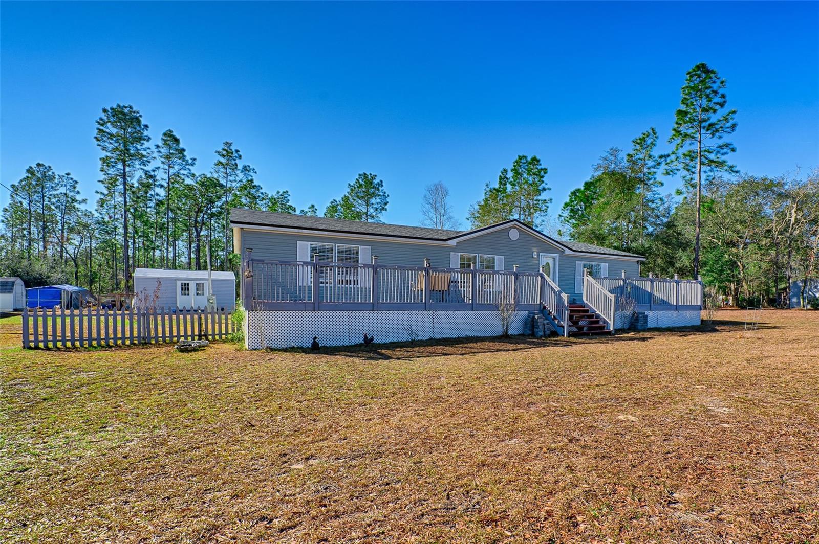 Bem-vindo a esta espaçosa casa fabricada por mérito em 2002, com 3 quartos e 2 banheiros, em um terreno de 1 acre em Williston Highlands. Esta casa foi atualizada. Entre para descobrir detalhes em shiplap e beadboard que adicionam personalidade a toda a casa. A planta aberta e os tetos abobadados criam uma atmosfera relaxante. A grande cozinha possui eletrodomésticos de aço inoxidável, prateleiras embutidas e muito espaço para cozinhar e se divertir. O quarto principal tem closet e banheiro privativo completo com pias duplas, chuveiro separado e banheira de imersão. Dois quartos de hóspedes com piso de madeira estão situados no lado oposto da casa, cada um oferecendo closets para armazenamento adicional. O banheiro do corredor tem uma combinação de banheira e chuveiro. Relaxe e descontraia-se no deck traseiro, que é coberto e parcialmente protegido para diversão durante todo o ano. A propriedade inclui três galpões, um dos quais abriga a lavadora e secadora (10’x20’), 2º galpão (12’x 30’). Os entusiastas de RV irão apreciar a conexão dedicada. Novo telhado em 2024. Localizado a uma curta distância de carro de Ocala, Gainesville e Crystal River, você também estará perto de atrações locais como WEC, Devil's Den, Blue Grotto e Cedar Key.