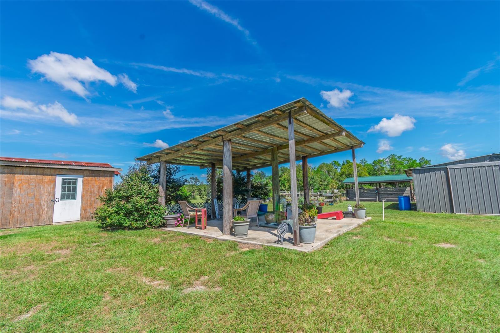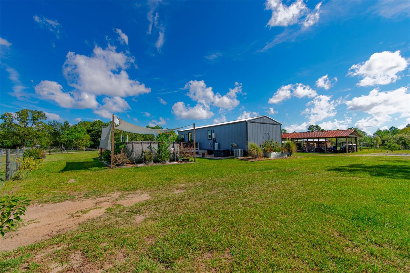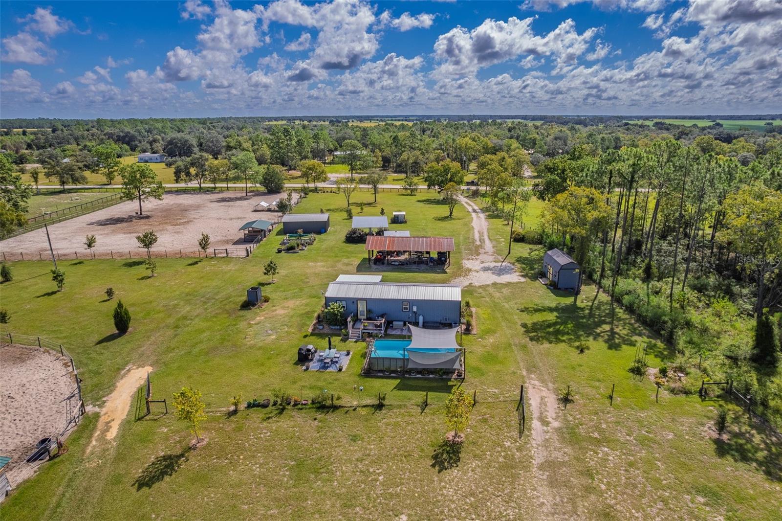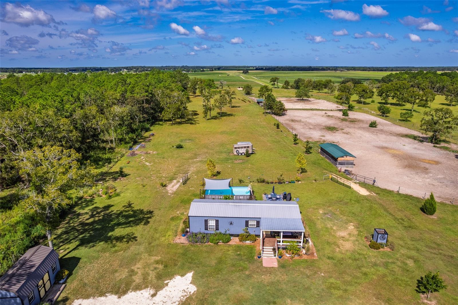 Fuja para o seu próprio oásis privado com esta fazenda de cavalos de 10 acres de 10 acres, perfeitamente situada em 318 acres de terras agrícolas vizinhas. Construído em 2022, esta casa exclusiva de 1 quarto e 1 banho oferece 736 pés quadrados de espaço de vida cuidadosamente projetado, misturando toques modernos com charme rústico. Dentro, você encontrará um teto de língua e ranhura, luz natural abundante e piso LVP durável por toda parte. A cozinha está equipada com armários amplos, espaço generoso, um fogão a gás e uma despensa. O quarto espaçoso está convenientemente localizado perto do banheiro, que possui uma banheira de clawfoot charmosa com chuveiro. As varandas dianteiras e traseiras fornecem vistas pacíficas da propriedade, enquanto uma piscina acima do solo oferece um retiro refrescante nos dias quentes de verão. Os motivos são tão impressionantes quanto o lar. Um jardim lindamente paisagístico apresenta canteiros de flores elevadas, árvores de magnólia graciosas e uma deslumbrante fileira de plantações projetadas para atrair pássaros e borboletas. Projetado para a vida equestre, a propriedade inclui 3 galpões de corrida com barracas (totalizando 9), 3 pastagens separadas com espaço para adicionar outro, um galinheiro e uma sala de tack/alimentação acabada de 10x20 que é parcialmente isolada e pré-conectada. Melhorias adicionais incluem uma garagem de metal 21x27 com conexão elétrica, piso de concreto e lavadora/secadora, uma saliência de 20x20 coberta com laje de concreto e um celeiro de pole de 14x40 para equipamentos e armazenamento agrícolas. Um site de RV de 50x30 com conexões oferece a configuração perfeita para visitantes, equestres de viagem ou espaço adicional. As atualizações recentes incluem um novo campo de drenagem (2021), bomba de poço e tanque (2021), aparelhos (2022) e lavadora (2025). A propriedade também possui 4 zonas separadas para apoiar as necessidades agrícolas. Desfrute de uma localização privilegiada a apenas 30 quilômetros para o Centro Equestre Mundial em Ocala, 19 milhas a hits, 11 quilômetros a ponta preta e apenas 9,5 milhas para Goethe State Forest, lar de centenas de acres de trilhas panorâmicas. Compras, restaurantes e conveniências cotidianas também estão de fácil acesso. Esta propriedade oferece a mistura perfeita de vida do país, funcionalidade equestre e beleza natural - pronta para o seu próximo proprietário!