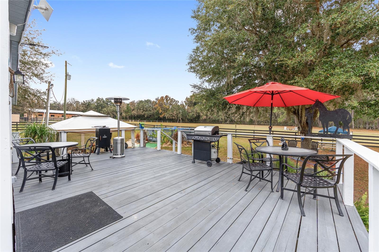 Imagine passar as manhãs tomando uma xícara de café enquanto cervos e animais selvagens nativos se movem silenciosamente neste pacífico paraíso equestre de 10 acres no coração da região dos cavalos de Ocala. Esta casa super adorável, com laterais de cedro e lindamente remodelada, oferece três quartos espaçosos, dois banheiros completos, um escritório privativo e uma lavanderia, combinando conforto com charme atemporal. Os amplos decks envolventes criam um estilo de vida interno e externo perfeito, perfeito para entretenimento ou relaxamento com vista para a piscina cintilante e a paisagem serena. Esta excepcional propriedade para cavalos possui um novo celeiro com corredor central com 10 baias, um galpão separado para arreios e alimentação, além de um paddock adicional com duas baias privadas e armazenamento. Piquetes de grama exuberante com excelente solo sustentam cavalos saudáveis, enquanto o pasto inclui uma área de salto, rede de pinheiro sombreada e um local plano ideal para uma arena de adestramento, com terreno adicional disponível para futuros piquetes. A propriedade está equipada com gerador Generac, conexão para trailer e garagem para dois carros para veículos ou equipamentos. Rodeada em três lados por majestosos carvalhos, esta quinta oferece uma excepcional privacidade, tranquilidade e beleza natural. Idealmente localizado a menos de 10 minutos do HITS, aproximadamente 20 minutos do WEC Ocala, 5 minutos da encantadora cidade de Williston, 15 minutos de Ocala e 20 minutos de Gainesville. Esta é uma rara oportunidade de possuir uma propriedade equestre pronta para uso, oferecendo estilo de vida, localização e terreno em um ambiente verdadeiramente especial.
