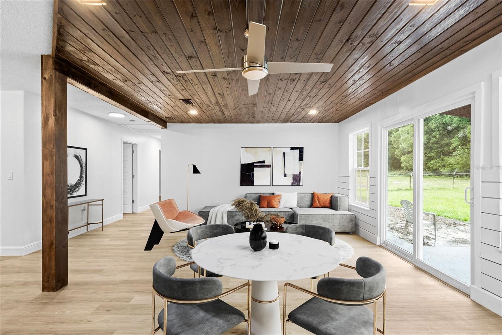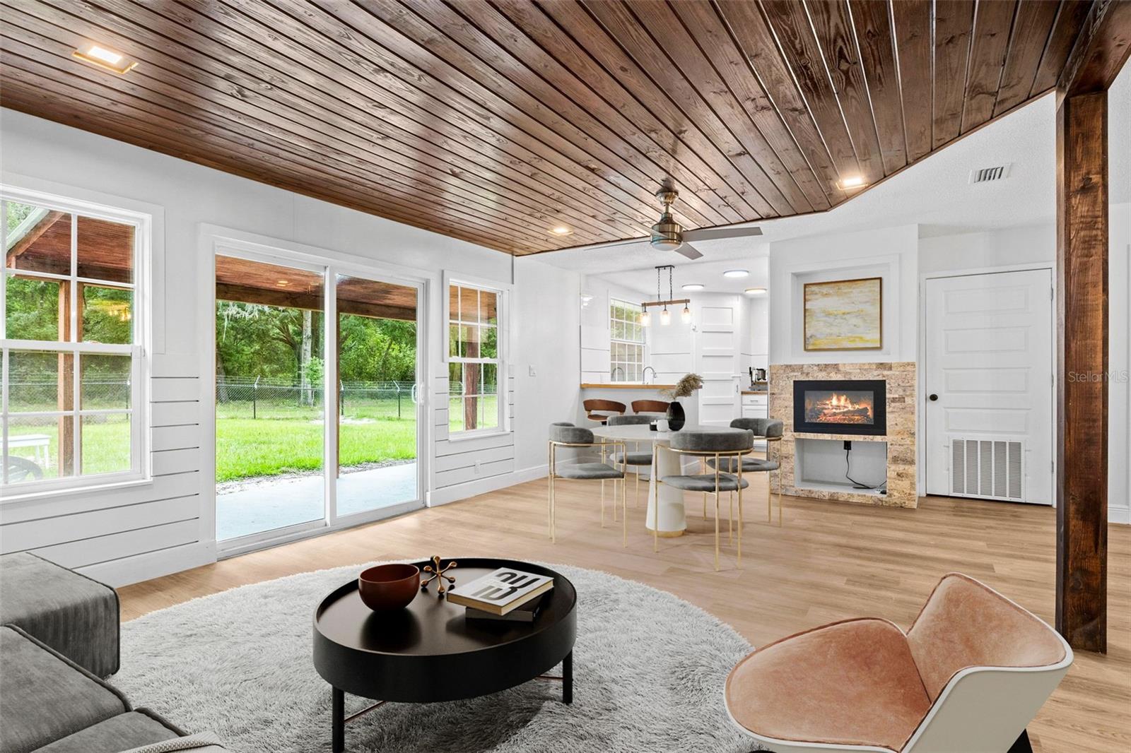 Uma ou mais fotos foram virtualmente encenadas. MELHORIA DE PREÇO nesta linda casa pronta para morar, SEM NECESSIDADE DE ADIANTAMENTO; USDA disponível para compradores de casas qualificados; Apaixone-se por esta linda joia renovada situada em 2,64 acres sem HOA, 4 quartos, 2 banheiros completos, combinação de sala de estar e jantar, garagem, novas portas externas e internas; novos rodapés modernos e luxuosos pisos de vinil por toda parte; superfície sólida e bancadas de pedra na cozinha e banheiros; lindos eletrodomésticos novos em aço inoxidável; Novos gabinetes de shaker e luminárias de designers de alta qualidade; Quarto principal de ótimo tamanho com closet e banheiro principal completamente remodelado com uma incrível pia dupla com penteadeiras divididas e penteadeira para maquiagem; piso de cerâmica e uma banheira convidativa para dias relaxantes de spa em casa. Conveniente armário de roupa embutido no corredor entre todos os quartos. Há três quartos de bom tamanho com amplo armário e outro lindo banheiro completo convenientemente localizado ao lado de dois deles, piso de cerâmica e acessórios de designers sofisticados incríveis também. Lavanderia com lavadora e secadora incluída. Grandes portas deslizantes de vidro também estão nas salas de estar e jantar formais, trazendo a bela vida ao ar livre! O quintal cercado oferece muito espaço para entretenimento ao ar livre. Aproveite também a vista da relaxante e convidativa varanda traseira coberta com um terreno enorme e um quintal totalmente cercado, pronto para família, amigos e animais de estimação desfrutarem de diversão sem fim; Viva sem preocupações com a cobertura metálica com aproximadamente 20 anos de vida; Esta é uma casa fantástica! Localizado a poucos minutos de lojas, restaurantes, médicos, principais rodovias e escolas. Apenas 15 minutos do Centro Equestre Mundial, Ocala e Gainesville. Marque hoje mesmo uma visita para conhecer esta linda casa, ela não vai durar muito! Esta linda casa está pronta e aguardando seu novo proprietário.