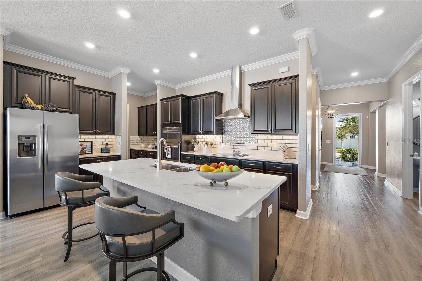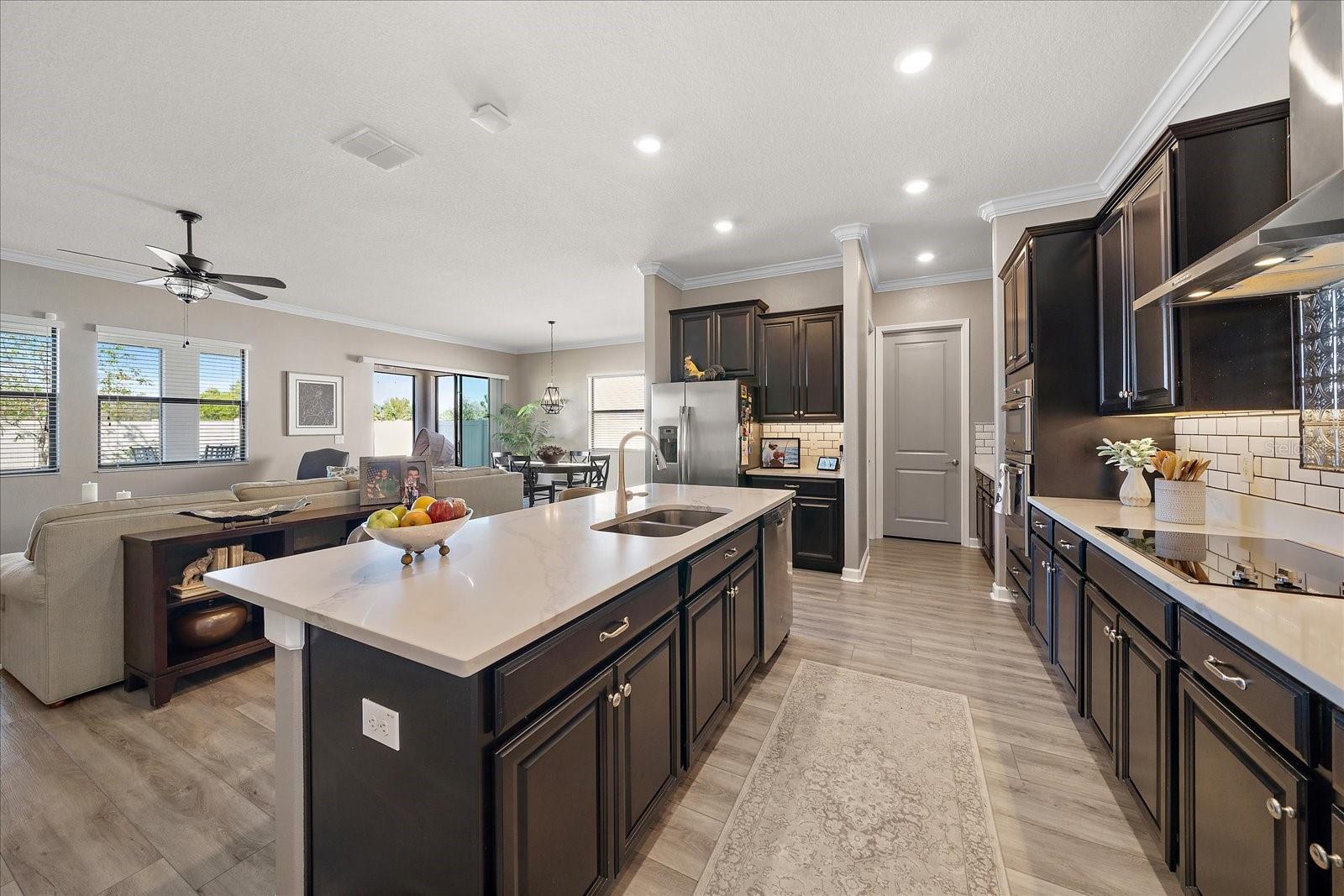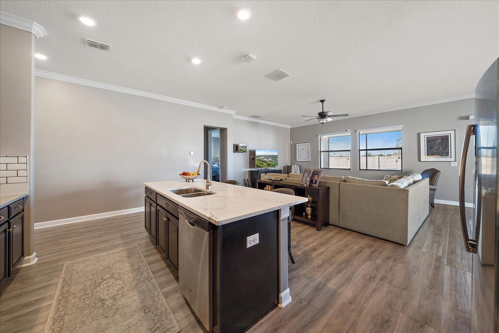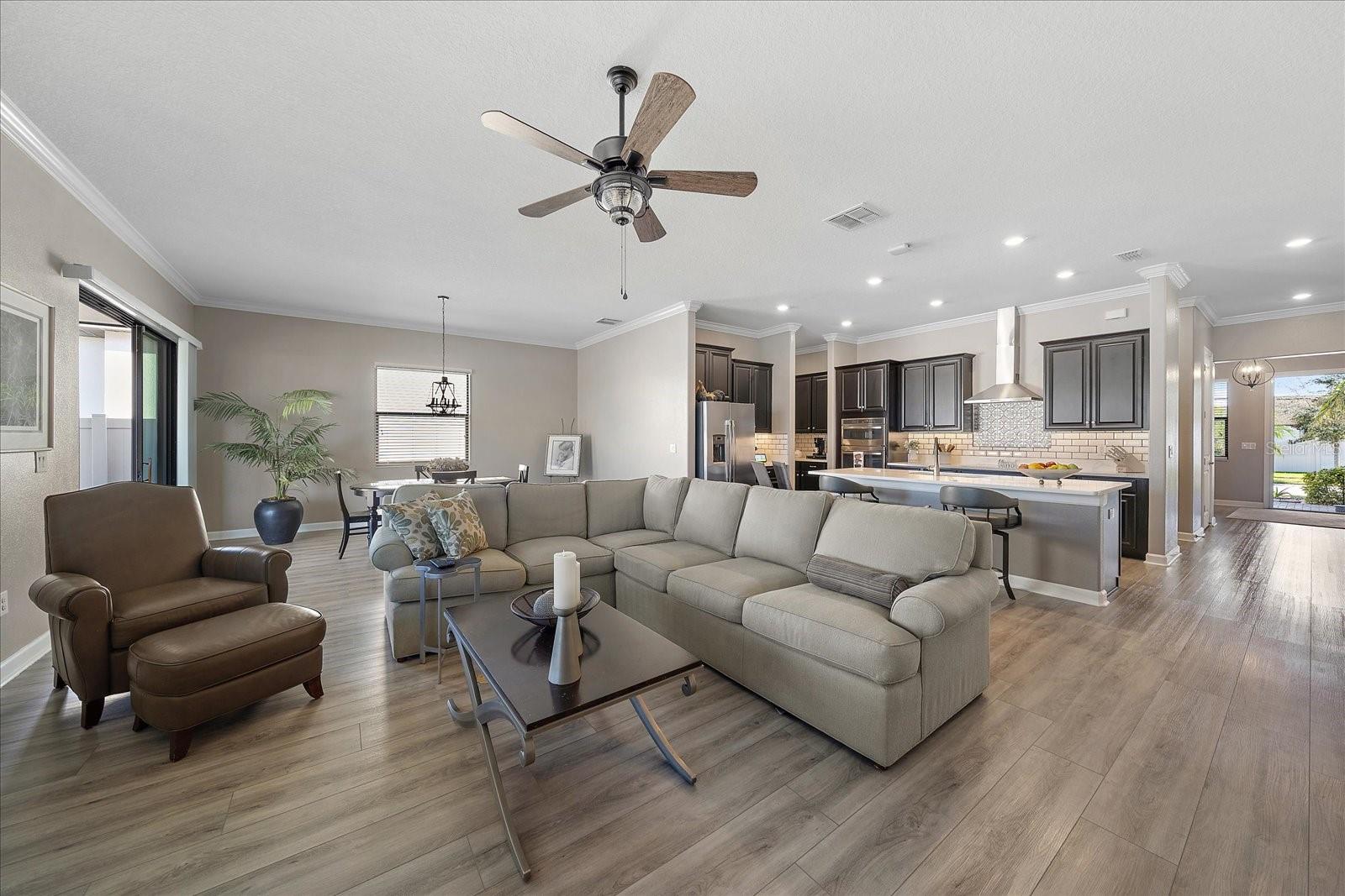 Bem-vindo a esta residência excepcional na procurada comunidade de mais de 55 Medley em Southshore Bay. Esta casa cuidadosamente projetada oferece 2.239 pés quadrados de espaço refinado, com dois quartos, dois banheiros e meio e uma sala flexível versátil que se adapta às suas necessidades de estilo de vida. A casa foi atualizada! Algumas das atualizações incluem o piso da garagem, o amaciador de água instalado, a tela nova instalada na porta da frente, os interruptores de mais escuros de luz instalados, bancadas e backsplash. As atualizações externas são a letra de paisagem, lanai, pavimentadoras estendidas, pátio cercado, atualizou a iluminação externa e instalou um ventilador de teto no lanai. Entre para descobrir o piso de tábua de vinil de luxo e a elegante moldagem da coroa. O quarto de hóspedes possui um banheiro privativo atualizado com bancadas em granito. A despensa de mordomo bem equipada, a generosa despensa e a lavanderia espaçosa aprimoram a funcionalidade da casa. A suíte principal do quarto apresenta um design de banheiro linear contemporâneo com pias duplas, uma vaidade de altura de conforto coberta com granito e um chuveiro impressionantemente espaçoso. O closet de grandes dimensões oferece espaço de armazenamento abundante para o seu guarda-roupa. Viver aqui significa desfrutar de acesso exclusivo ao Medley Community Community Center, onde o lazer e a recreação convergem. Aproveite a piscina em estilo resort com faixas de colo dedicadas, centro de fitness de última geração, sala de cartas e sala de bilhar. Mantenha-se ativo com quadras de bola de picles e bocha e saboreie refeições convenientes no restaurante no local, aberto para almoço e jantar. Como residente, você também terá acesso à espetacular lagoa metropolitana de 5 acres por lagoas de cristal na baía de Southshore. Relaxe em cabanas particulares, desafie os amigos a arear o vôlei ou simplesmente aproveitar o sol da Flórida. O parque de cães nas proximidades adiciona outra camada de conveniência da comunidade para os donos de animais. Esta casa realmente oferece a mistura perfeita de amenitie de vida e resort elegante