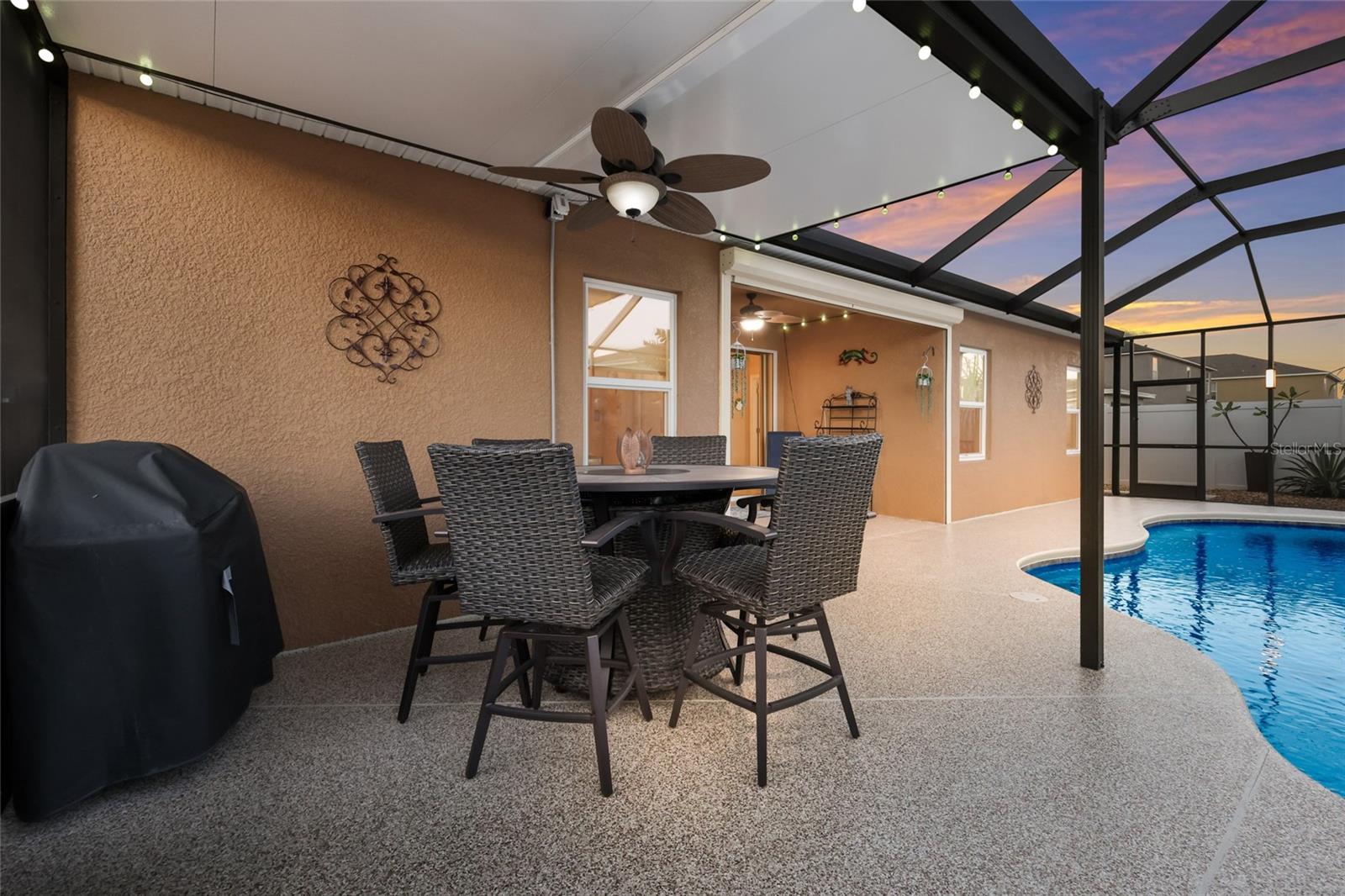 BEM-VINDO a este IMPRESSIONANTE modelo Lancaster da Lennar, localizado na altamente desejável comunidade de Ayersworth Glen. Esta casa com PISCINA lindamente ATUALIZADA de quatro quartos e três banheiros oferece 2.418 pés quadrados de espaço confortável e uma garagem para três carros, tornando-a perfeita para quem busca elegância e funcionalidade. Ao se aproximar, você vai adorar a varanda frontal recentemente protegida, ideal para desfrutar da brisa quente da Flórida. Entre e você será recebido por uma espaçosa combinação de sala familiar e sala de jantar, projetada com uma planta aberta perfeita para reunir, relaxar e hospedar jantares formais com facilidade. Continue para a combinação de cozinha e sala de estar, um espaço convidativo onde as memórias são feitas. A cozinha brilha com armários PERSONALIZADOS, um novo backsplash de azulejos, bancadas de granito e eletrodomésticos de aço inoxidável, além de uma área de refeições casual separada para as refeições do dia a dia. A sala de estar tem vista para a piscina cintilante através dos controles deslizantes de vidro, oferecendo um cenário sereno para relaxar após um longo dia. A suíte principal está cuidadosamente situada em sua própria ala para maior privacidade. Este retiro generoso oferece closet e banheiro privativo luxuoso com chuveiro de vidro azulejado, banheira de jardim relaxante e pias duplas. Os restantes três quartos são espaçosos e bem equipados, com duas casas de banho completas, onde uma delas pode servir convenientemente como banheira de piscina. Saia para o seu oásis PRIVADO. A área da varanda foi meticulosamente mantida, com piso de epóxi no deck da piscina e um amplo espaço coberto perfeito para refeições ao ar livre e entretenimento. Aproveite a piscina aquecida de ÁGUA SALGADA, cercada por uma paisagem fresca para uma verdadeira sensação de resort. A gaiola da piscina foi totalmente REVISADA e aprimorada com NOVA ILUMINAÇÃO, juntamente com um NOVO AQUECEDOR DE PISCINA, GERADOR DE SAL e BOMBA DE PISCINA para anos de diversão sem preocupações. O quintal está totalmente vedado, proporcionando excelente privacidade. Esta casa está repleta de atualizações que você não vai querer perder, como JANELAS DE IMPACTO DE FURACÃO, UM OBTURADOR DE FURACÃO para a varanda, um NOVO TELHADO e AC em 2025, pintura externa fresca, um sistema AMACIADOR DE ÁGUA com OSMOSE REVERSA e um novo galpão externo para armazenamento adicional. O piso de cerâmica é executado em toda parte para facilitar a manutenção, e o paisagismo foi aperfeiçoado da frente para trás. Ayersworth Glen oferece comodidades comunitárias fantásticas, incluindo um clube, piscina comunitária, playground, parque para cães e quadras de basquete, oferecendo algo para todos. Idealmente localizada perto de US 301, I-75, I-275, principais aeroportos, St. Pete, Tampa, escolas de primeira linha e inúmeras opções de restaurantes e compras, esta casa oferece conveniência e estilo de vida no seu melhor. Esta propriedade excepcional realmente tem tudo que você precisa para viver confortavelmente e aproveitar o melhor da vida na Flórida.