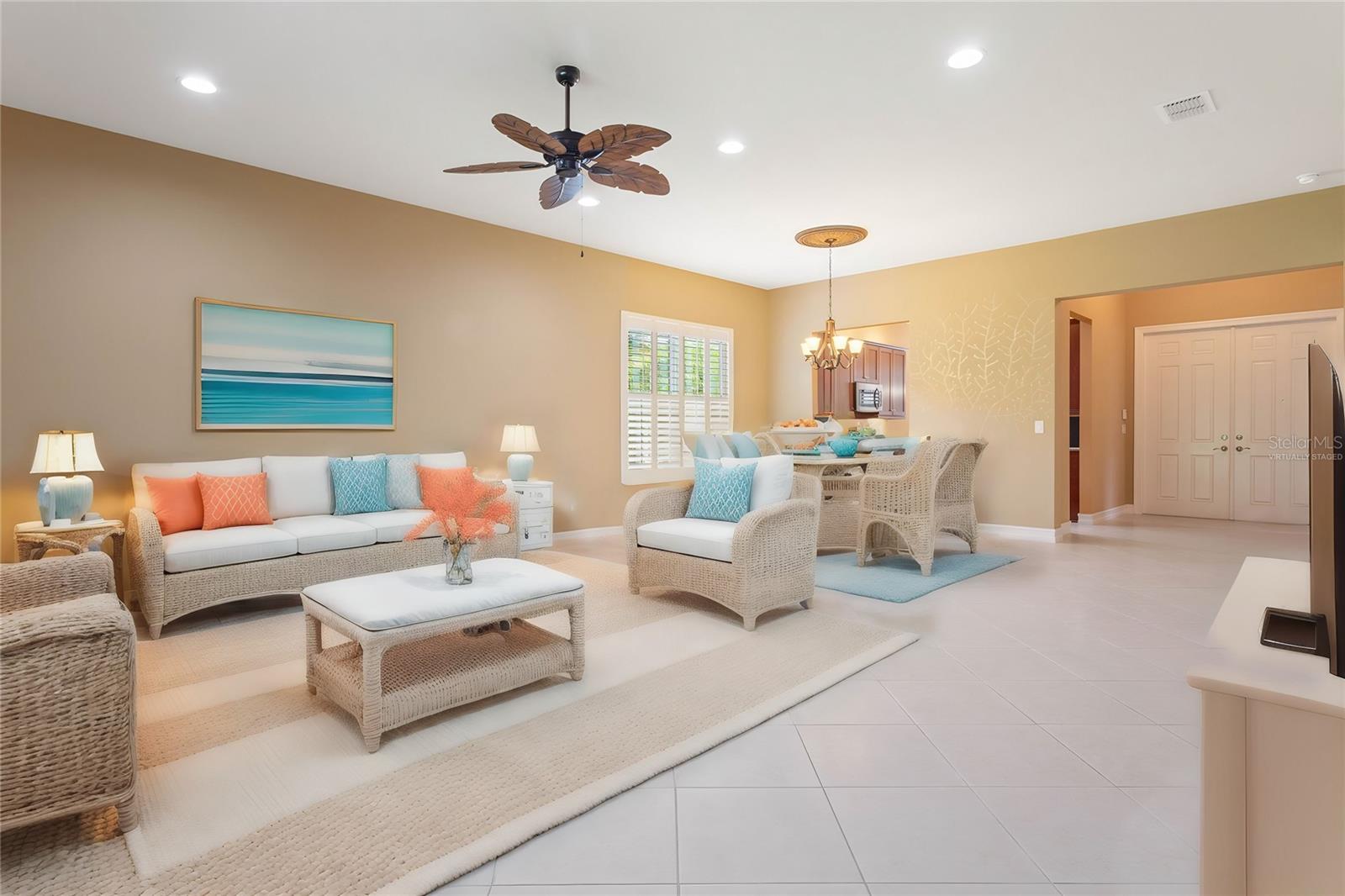 Uma ou mais fotos foram virtualmente encenadas. Este popular modelo Capri oferece 3 quartos, 2 banheiros e garagem para 2 carros. Esta casa imaculada "pronta para mudança" está localizada em Valencia Lakes, a principal comunidade em estilo resort com mais de 55 anos da Grande Tampa Bay! Ao entrar pelas portas duplas de 8', observe o dinâmico teto em caixotões de 12'6 pés de altura no hall de entrada. A maioria apreciará como a grande sala e a sala de jantar informal se abrem uma para a outra, bem como a área de estar ao ar livre. Os controles deslizantes triplos de 8 pés fora da área de estar principal fornecem acesso direto à varanda traseira coberta/protegida...o lugar perfeito para aproveitar seu próprio oásis de quintal completamente privado. Esta casa apresenta grandes pisos em toda a casa, isso mesmo, não há carpinteiro em lugar nenhum. A bela cozinha gourmet possui armários de bordo de 42", iluminação superior e inferior com sancas e saia, bancadas de granito, pia de tigela única de aço inoxidável e todos os novos eletrodomésticos, incluindo uma geladeira com porta francesa, fogão de aço inoxidável GE, micro-ondas e lava-louças Bosch. O principal -A suíte é espaçosa e tem 2 closets. O banheiro principal em estilo spa apresenta um box amplo separado com assento e azulejos decorativos, banheira romana, pias separadas, bancadas de granito e armários de bordo de 36". A sala/3º quarto tem portas francesas duplas de 6 painéis e um armário. O quarto nº 2 está localizado em sua própria ala para máxima privacidade dos hóspedes. O banheiro nº 2 possui armários de bordo, balcão de granito com "banjo top" estendido e combinação de banheira/chuveiro. A lavanderia inclui armários superiores para armazenamento e uma pia com armário, além de uma nova lavadora e secadora de grande capacidade atualizada. Esta casa espetacular está repleta de muitos recursos personalizados, como: Novo HVAC em 2020, novo aquecedor de água, sistema de amaciante de água, novo descarte, luminárias e ventiladores de teto personalizados, venezianas de madeira, espelhos de banheiro emoldurados, entrada frontal blindada, tijolo de 4' extensão do pátio para pavimentação, piso de garagem em epóxi, novo abridor de garagem, calhas de chuva, nova pintura externa e muito mais. Aproveite tudo o que os Lagos de Valência têm para oferecer. fabuloso centro de entretenimento, bistrô, piscinas, salas de jogos, academia de ginástica e centro de arte de última geração, clubes, seminários educacionais, quadras de tênis, bocha, Pickle Ball e muito mais. Deixe a diversão começar! Este é classificado como um dos melhores condomínios com mais de 55 anos do país e oferece muitos “espaços verdes” em todo o condomínio, além de excelentes atividades e entretenimento para os moradores. Esta comunidade amigável oferece conveniência para caminhadas, ciclismo, natação e carrinho de golfe. A taxa HOA mensal inclui adesão ao clube, assinatura do sistema de segurança e manutenção/irrigação do gramado sem custos adicionais. Comece a viver o sonho e agende sua exibição hoje mesmo!