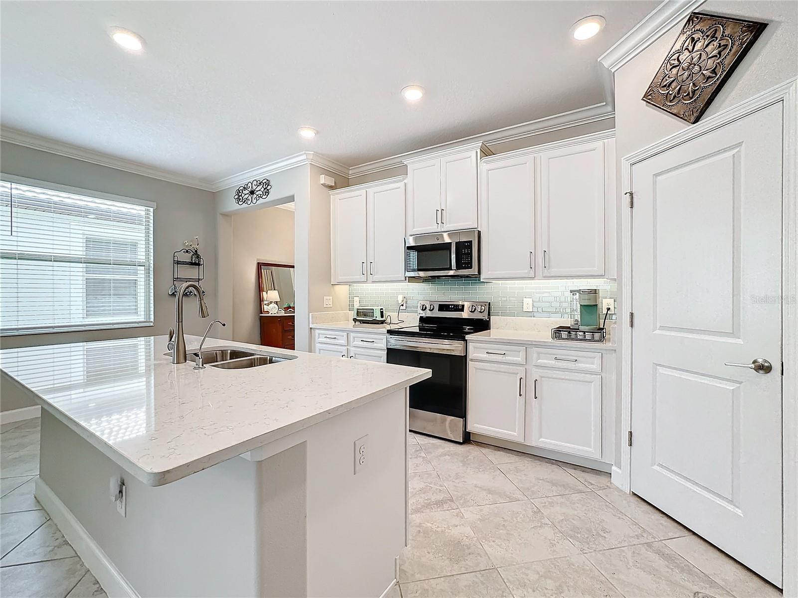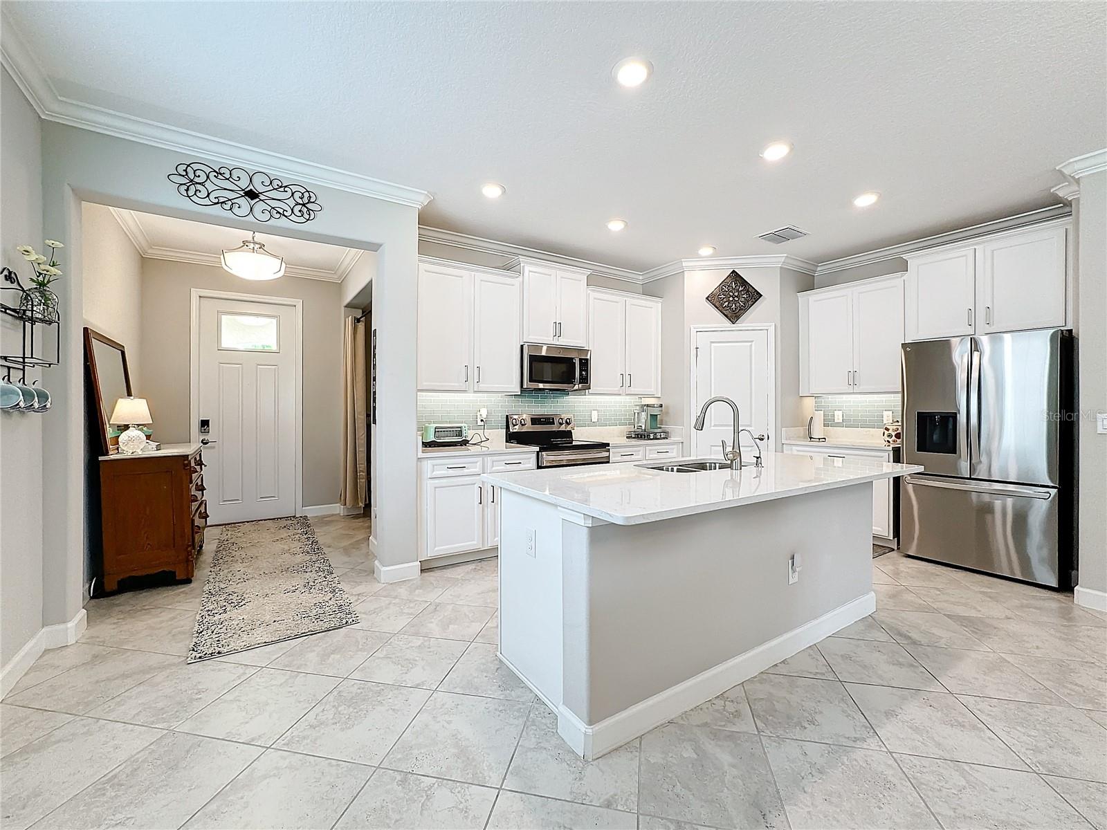 Um dos modelos Splendor unifamiliares mais populares, com 2 quartos, mais sala flexível e 2 banheiros completos, raramente chega ao mercado - mas agora um está disponível! Não perca esta rara oportunidade de considerar esta revenda que oferece grande economia nos custos de fechamento, ao contrário das novas casas para construção vendidas pelas construtoras. Também supera em muito o fascínio da nova construção com uma impressionante variedade de atualizações. A apelação do meio-fio é acolhedora, com lindas árvores maduras e exuberante folhagem tropical que leva ao pórtico frontal coberto. A porta da frente leva a um grande hall de entrada e a uma planta espaçosa e convidativa, cheia de luz natural. Paletas de cores neutras e brilhantes e sancas criam um ambiente de qualidade calma. A elegante cerâmica Cabo Shore 18x18 é colocada diagonalmente em todas as áreas principais, incluindo a sala flexível. Novos carpetes de alta qualidade foram instalados nos quartos principal e secundário em março de 2024. A cozinha gourmet é uma delícia para o chef, ostentando uma grande ilha, bancadas de quartzo da Nova Caledônia e um novo backsplash de azulejos de metrô verde-água. Os armários de painel quadrado elevado Duraform Downing Stone escalonados de 42 ”são combinados com eletrodomésticos de aço inoxidável (geladeira, forno e lava-louças novos 2023) e uma despensa ampla de tamanho generoso. O quarto principal possui um enorme closet e banheiro privativo com pia dupla, azulejos luxuosos e um banco embutido em um chuveiro separado de grande tamanho. A porta de vidro deslizante de 3 painéis de 8 pés da sala de estar leva à varanda com tela e ao lindo quintal privado, onde você pode desfrutar da beleza da Flórida com brisas suaves e céu azul durante todo o ano! A despensa possui armários adicionais instalados para armazenamento extra. Esta casa está equipada com venezianas, calhas frontais e traseiras e painéis solares instalados como parte de um programa piloto do Teco. O SISTEMA DE PAINEL SOLAR É CAPAZ DE ALIMENTAR ESTA CASA POR ATÉ 2 SEMANAS NO CASO DE QUEDA DE ENERGIA GENERALIZADA! OBSERVE QUE A CASA NÃO PERDE ENERGIA DURANTE O FURACÃO MILTON, GRAÇAS A ESTA MICRO-REDE DE ENERGIA DE BACK-UP ALIMENTADA SOLAR. Um filtro de sedimentos foi instalado em 2023. O sistema HVAC está equipado com luz UV que ajuda a purificar o ar interno. Medley em Southshore Bay é uma comunidade adulta ativa com mais de 55 anos. Os moradores desfrutam de todo o luxo que esta comunidade tem a oferecer, com um clubhouse de última geração, piscina estilo resort, uma relaxante lagoa de 5 acres, academia, quadras esportivas, trilhas e muito mais. Aqui você experimentará um grande senso de comunidade. Tampa, St. Pete e Sarasota ficam a apenas 25-45 minutos de distância e também perto do aeroporto, instalações médicas, lojas e golfe.