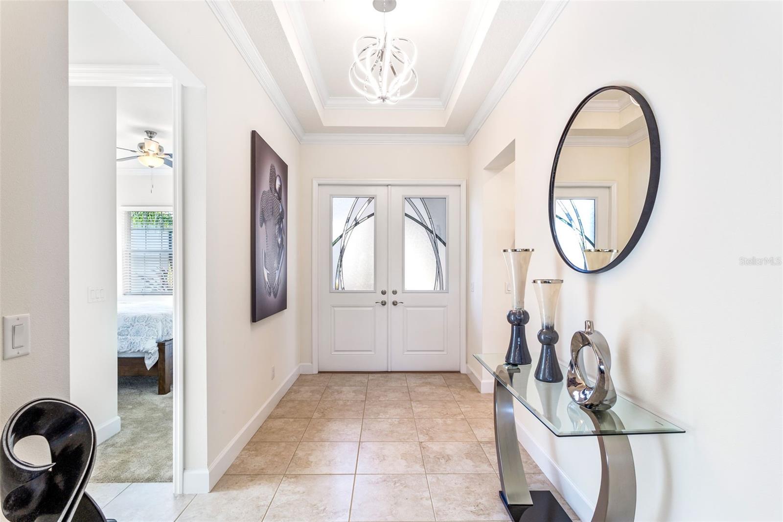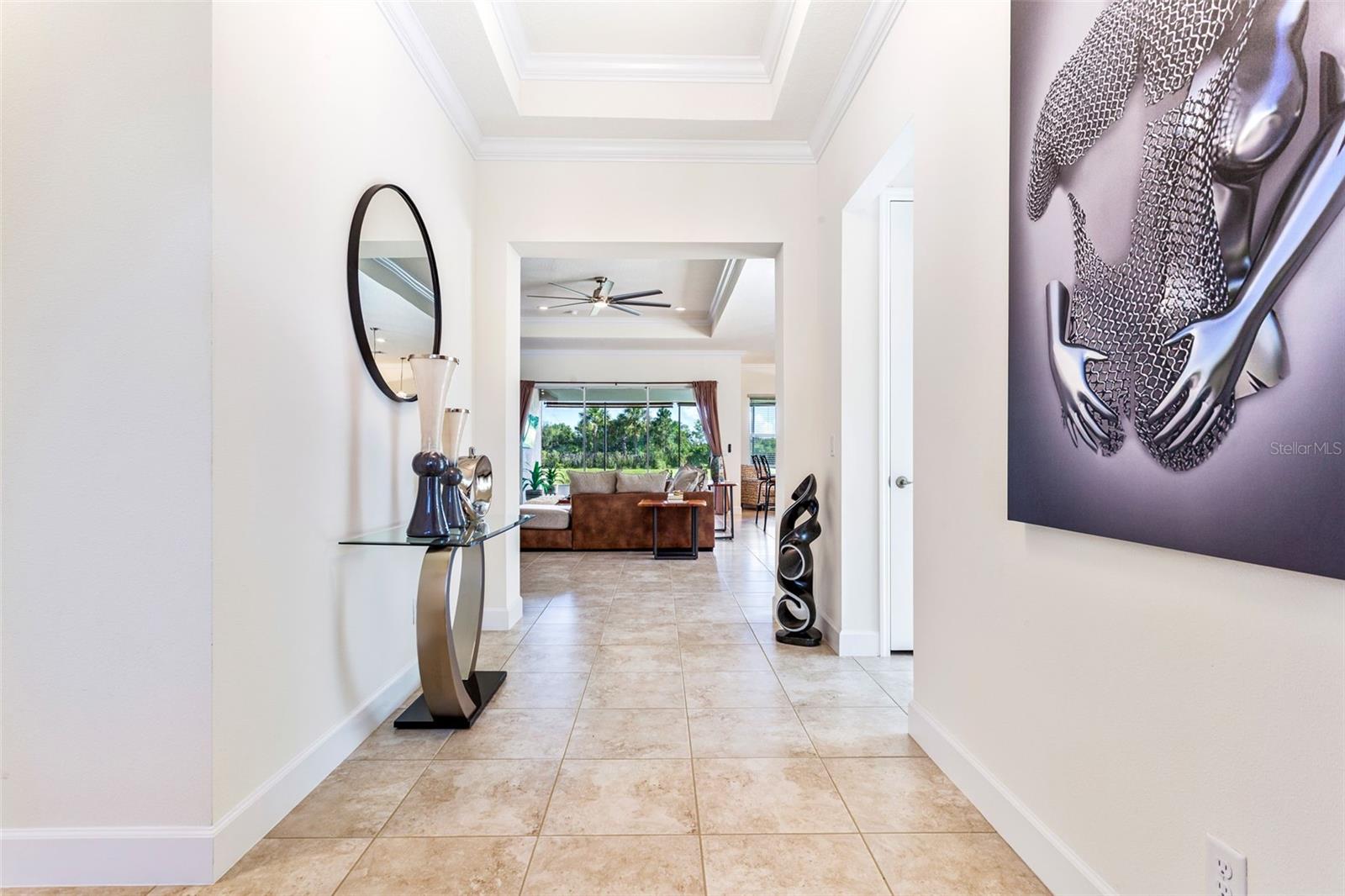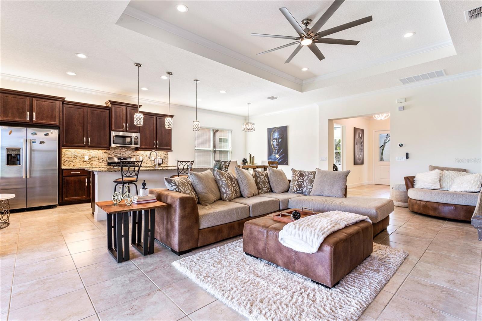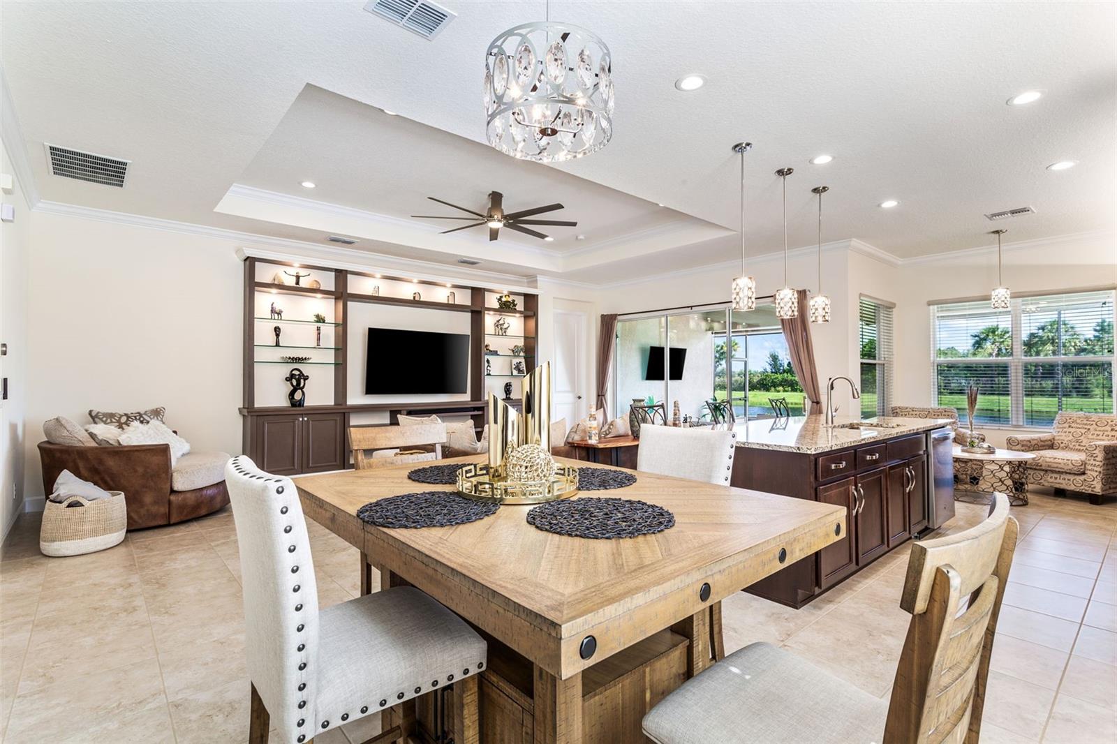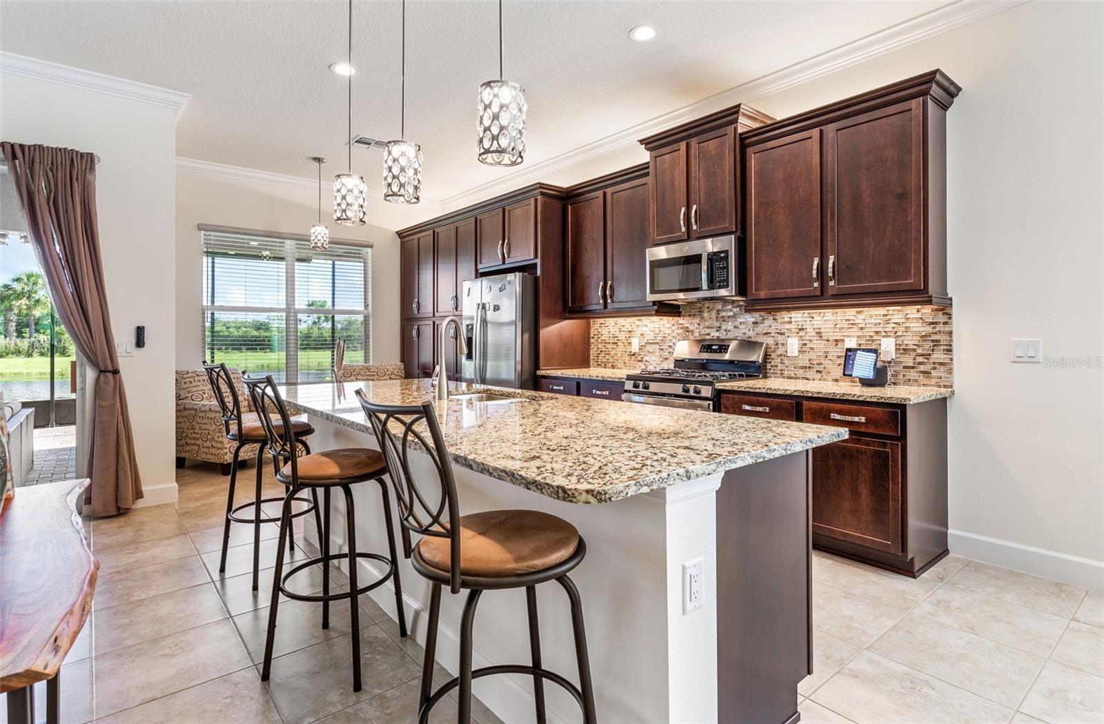 Este novo modelo Palazzo, que mal foi usado há 2 anos, está disponível totalmente mobiliado. Este apartamento de 4 quartos, 3 banheiros e garagem para 2 ½ carros na água com 2.191 pés quadrados construído em 2022. MOSTRA COMO UM MODELO. Construída pela GL Homes além dos códigos de construção atuais, esta é uma casa construída em blocos de qualidade com um telhado de telha durável. Os recursos incluem bordas decorativas de paisagem e calçadas e calçadas pavimentadas aprimoradas. Observe a entrada com tela, permitindo brisa cruzada e grandes portas duplas com painéis decorativos de vidro com chumbo. Ao entrar, você notará tetos em caixotões e sancas na entrada, na sala de família e no quarto principal, juntamente com rodapés de 5 ¼ ”em toda a casa, adicionando uma sensação de elegância. Os recursos adicionais incluem uma parede de entretenimento personalizada que aprimora a funcionalidade e a estética da sala familiar. Luminárias de alta qualidade e ventiladores de teto foram instalados em toda a casa. A cozinha gourmet é adornada com balcões de granito, eletrodomésticos em aço inoxidável, fogão a gás, armários de madeira com sancas, backsplash de azulejos de vidro, iluminação inferior e superior dos armários e elegantes luminárias pendentes. A espaçosa suíte principal com closet, chuveiro separado com azulejos atualizados, pias separadas e toalete privativo com vista para o lago. A varanda estendida com tela está parcialmente sob o teto, com guarda-sóis para assistir TV, além de muita área externa para desfrutar da natureza ao redor do lago e da área de conservação. Lanai está preparada para churrasqueira e pia. Itens adicionais incluídos são sistema de tratamento de água, lavadora, secadora e pia. Entre imediatamente, sério! Tudo isso em Valencia Del Sol, a principal comunidade ativa para adultos com mais de 55 anos na área metropolitana de Tampa e localizada perto de Tampa, São Petersburgo e Sarasota. Aproveite a vida em estilo resort! Algumas comodidades incluem uma área de recreação ao ar livre com piscina aquecida estilo resort, quadras de tênis, picles, parque para cães. O clube oferece um enorme salão social para concertos e danças, uma academia, salas de jogos, café, vários clubes, shows e muito mais ! Ligue para esta casa e viva como se estivesse de férias todos os dias!