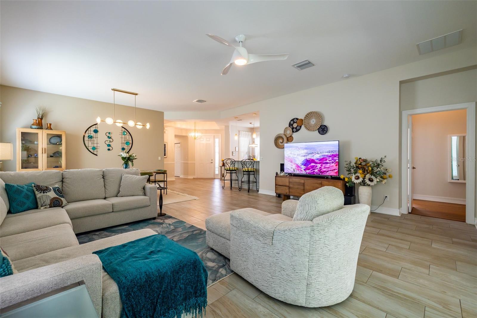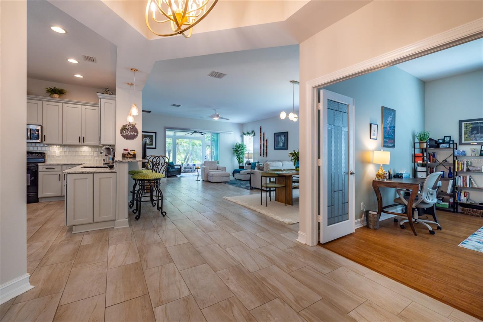 Este 2.138SF POSITANO certamente atenderá e superará suas necessidades e desejos. Recentemente pintado em SW Svelte Sage com acabamento em Westhighland White e com um paisagismo imaculado, este POSITANO tem grande apelo nas ruas. Um pórtico frontal com tela é um lugar maravilhoso para relaxar e desfrutar de um pouco de vida ao ar livre. Ao entrar no foyer com seu teto de bandeja de 10'-11' adornado com um deslumbrante lustre pendente Tiller Gold Leaf de design Possino Euro, você terá uma vista incrível desta planta aberta. À esquerda do hall de entrada encontra-se uma grande cozinha com espaço para o Chef e Sous-Chef. Possui armários de bordo de 42 ”pintados em BENJAMIN MOORE Silver Cloud e cobertos com balcões de quartzo CAMBRIA Praa Sands, cobertos com backsplash de vidro óptico. Uma pia dupla composta de granito preto, fogão GE e micro-ondas, geladeira Frigidaire de 3 portas e despensa com controles deslizantes tornam a cozinha maravilhosamente funcional. A dinette possui duas janelas, um lustre moderno e é um ótimo espaço para refeições diárias ou íntimas. A sala de jantar possui um lindo lustre linear WEST ELM Bezel de 6 luzes e acomoda confortavelmente 10 pessoas. A ampla sala grande tem um controle deslizante de 3 painéis de 12 pés para a sala Flórida. As áreas comuns e úmidas possuem porcelanato 12”x24” e os quartos possuem piso de bambu. A sala Florida desfruta de luz natural, possui ventilador de teto, duas luzes embutidas e é um verdadeiro oásis. O quarto principal tem teto falso com ventilador de teto, janela de 9' com 3 painéis, porta de vidro completa para o quarto Flórida, dois closets personalizados e um lindo banheiro privativo. O banheiro privativo será o seu refúgio e possui uma banheira de hidromassagem romana, um box amplo envidraçado com borda de assento, uma penteadeira azul com pias duplas e torneiras douradas, balcões de quartzo Praa Sands, um espelho emoldurado e um W/C para a cômoda. No centro da casa encontra-se o escritório/arrumos com portas francesas duplas de vidro. Como você usará esse espaço? O espaçoso quarto de hóspedes fica na frente da casa, proporcionando privacidade e conforto. O segundo banheiro possui box amplo e uma linda penteadeira. O conforto ambiental é garantido por um SEER GOODMAN HVAC de 4 toneladas e 17,5 toneladas com controles de umidade, um amaciante de água Culligan Iron Soft Plus, um tanque de água quente AO SMITH de 50 galões com um tanque de expansão, 2 painéis elétricos SQUARE D de 150AMP, um alarme monitorado ADT sistema, e as janelas têm persianas sanfonadas para proteção contra furacões. Finalmente, a garagem 20x20 possui 3 prateleiras suspensas e prateleiras independentes. Por fora, por dentro, de frente para trás, este POSITANO brilha. Aproveite a vida em estilo resort em Valencia Lakes, a principal comunidade de adultos ativos com mais de 55 anos de Tampa Bay. Esta comunidade procurada tem um incrível clube de 40.000 pés quadrados que oferece shows de entretenimento, danças, uma infinidade de clubes, uma academia de ginástica 24 horas por dia, 7 dias por semana, piscina resort, piscina olímpica, aulas de ginástica, salas de jogos, pickleball, tênis e muito mais. Convenientemente localizado perto de hospitais, centro de Tampa, aeroporto de Tampa e a uma curta distância de carro da Disney, portos de cruzeiros, Sarasota e algumas das melhores praias do país! Aproveite o dia para começar a viver sua vida idílica hoje.