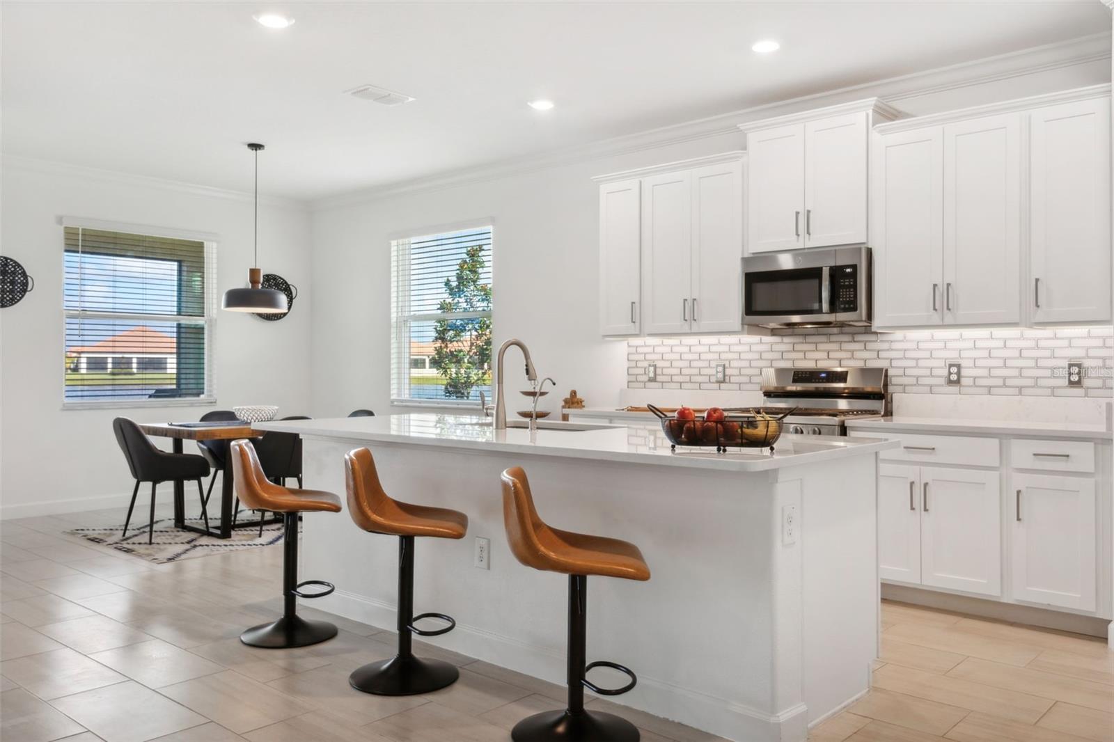 Lindo 2Br & LG. Flex Room Home com fachada de lago em medley em Southshore Bay! Esta casa "Premier" sem vizinhos traseiros, oferece uma oportunidade esplêndida para desfrutar de uma incrível casa e estilo de vida! Esta comunidade de mais de 55 adultos ativos e fechados oferece muito! Este 2Br, + lg. Flex Room, 2Ba, & Oversized 2 Car Garage Home tem um pátio enorme e exibido para assistir ao melhor da Mãe Natureza também! Relaxe em um planta aberta, bancadas de quartzo, armários de madeira maciça, iluminação e ventiladores atualizados, tetos altos, ilha central grande, gama de gás natural, geladeira Wi-Fi e despensa walk-in com sua área de cozinha. Venha ver a coroa moldagem, lindas ladrilhos de porcelana em toda a área de estar, tons de controle deslizantes personalizados e muito mais com a área da sala da família - perfeita para entretenimento. Esta casa oferece um layout privado, com design de plano dividido da sua suíte primária com vista para a vista para a água, um armário de entrada/ caminhada, banheiro grande (com porta de banho personalizada) e amplo balcão e vaidade! Aproveite seu hóspede/ 2º quarto com um 2º banheiro com acomodação com um layout conveniente. Você também terá muitas opções com sua versátil sala de flexão/den/escritório. Sua lavanderia dedicada impressionará, com seus armários de tamanho e embutido! A área de garagem de dois carros de grandes dimensões possui racks de armazenamento pesado (montagem no teto) para adicionar espaço e sua entrada/entrada de automóveis é elegantemente projetada para a pavimentadora! Seu exterior também possui irrigação completa (frente e traseira) e paisagismo profissional por toda parte! Por fim, a casa possui um sistema de aquecimento de água sem tanques sob demanda sob demanda para desfrutar! Sua comunidade tripulou opções de entrada/saída tripuladas (principal) e não manipuladas para facilitar o deslocamento para tantas áreas desejáveis. O Medley, em Southshore Bay, oferece uma enorme variedade de opções recreativas, incluindo pickleball, tribunais de bocha, um parque de cães, trilhas e caminhos amigáveis ao carrinho de golfe. Seu clube comunitário oferece um café e bares, mesa de sinuca, sala de reuniões/jogos, salão formal disponível para eventos especiais e um quiosque de correio central. Os moradores também podem desfrutar da piscina aquecida no estilo resort e trilhas para caminhada-ao alcance da incrível lagoa de cristal de 5 acres. As taxas HOA incluem Internet e cabo básico, manutenção externa do gramado, cobertura morta e corte. Venha ver que recursos incríveis esta casa e a comunidade de Southshore Bay têm reservado para você! Você ficará feliz por ter feito!