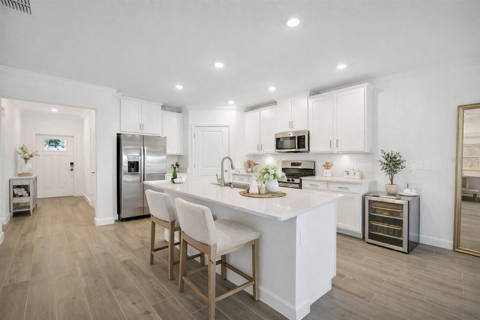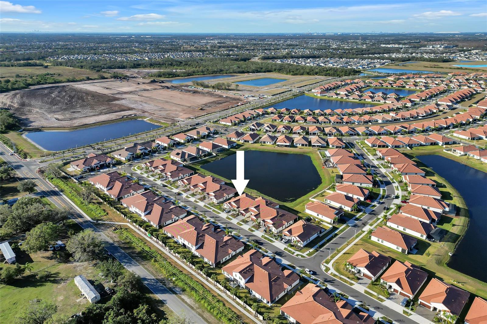 Bem-vindo a esta villa de estilo mediterrâneo nunca antes habitada, construída em 2024, localizada na comunidade 55+ Medley at Southshore Bay. Esta residência possui telhado de telha, calçada pavimentada e está situada em um bairro com portão duplo e serviço de guarda 24 horas, oferecendo privacidade, segurança e tranquilidade. A casa oferece aproximadamente 1.395 pés quadrados com dois quartos espaçosos e um layout aberto e cheio de luz. A cozinha de tamanho generoso inclui um balcão estendido ideal para sentar e entreter, uma despensa, eletrodomésticos de aço inoxidável, fogão e forno a gás e amplos armários. Portas de vidro deslizantes de grandes dimensões abrangem a área de estar traseira, permitindo luz natural abundante e fluxo contínuo de interior para exterior. Desfrute de um pátio coberto com vista para um lago tranquilo com um quintal aberto, proporcionando vistas serenas e um ambiente tranquilo. Os recursos adicionais incluem aquecedor de água sem tanque, lavadora e secadora a gás, venezianas e construção moderna projetada para conforto e durabilidade. Com associação privada, o Medley Clubhouse é reservado exclusivamente para aproximadamente 850 residências Medley, oferecendo entretenimento focado nos residentes e eventos com curadoria trazidos diretamente para a comunidade. As comodidades incluem um clube de última geração, café e bar, academia com aulas e treinadores, sala de bilhar, salão de baile com palco e espaço para eventos, quadras de pickleball, quadras de bocha, trilhas panorâmicas e a impressionante lagoa de 5,5 acres. Convenientemente localizada em Wimauma, Flórida, com fácil acesso a Tampa e Sarasota, esta casa oferece uma vida refinada em estilo resort em um ambiente seguro e bem conservado. Uma rara oportunidade de possuir uma villa imaculada e desfrutar do estilo de vida Medley.