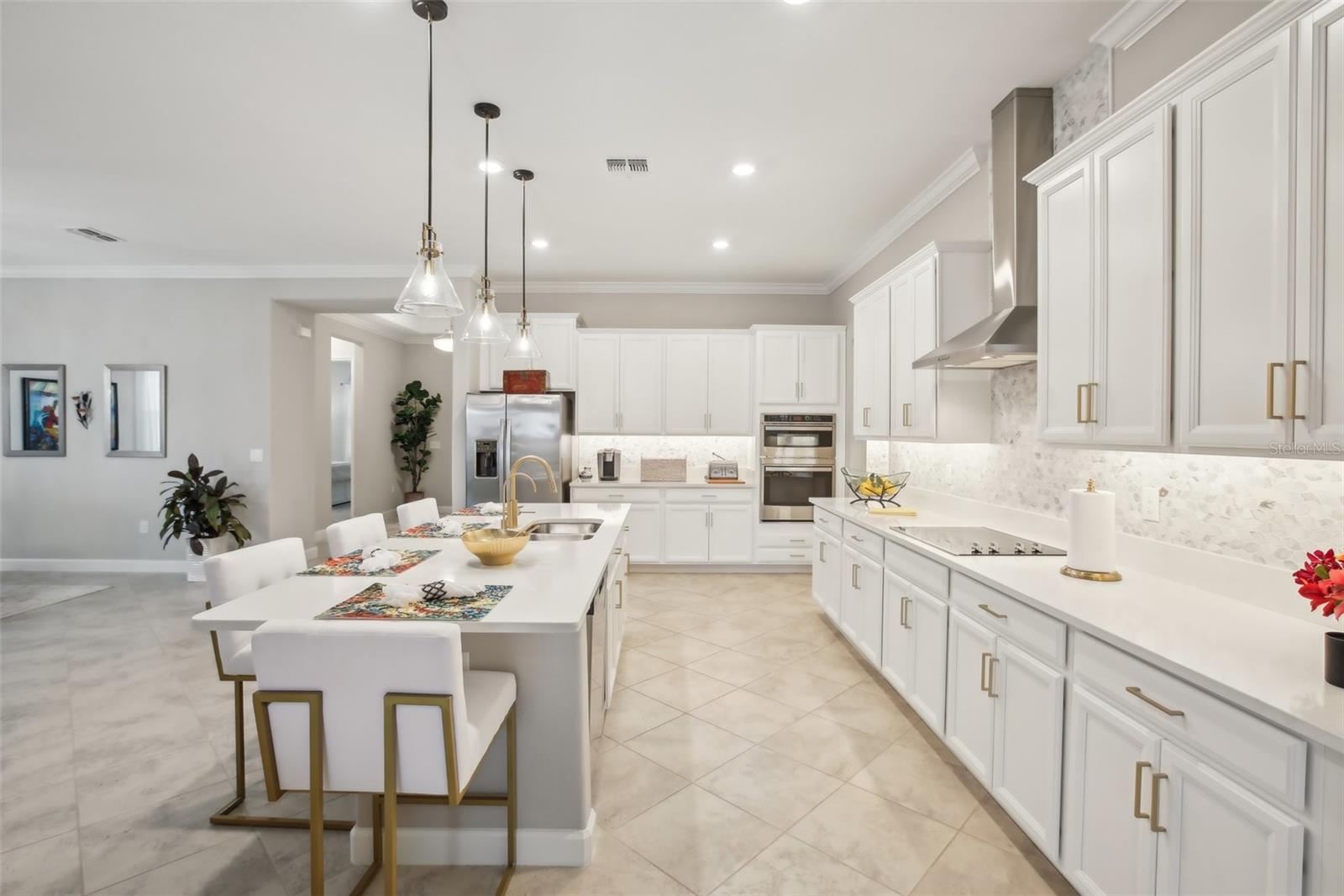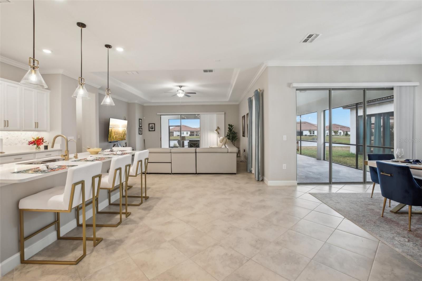 Bem -vindo à sua casa dos sonhos, com habilidade, com conforto e estilo, onde todos os detalhes são adaptados para a experiência de vida final! Ao entrar, você será recebido por um layout espaçoso com três quartos exuberantes, incluindo um quarto primário generoso que promete descanso e relaxamento. Cada um dos três banheiros reflete sofisticação com equipamentos modernos e toques atenciosos, criando uma atmosfera semelhante a um spa bem em casa. O coração da casa é sem dúvida sua área de estar de conceito aberto, tornando-o perfeito para entreter amigos e familiares. Os tetos altos da bandeja e a moldagem da coroa elevam a sensação de espaço, enquanto o hardware de gabinete dourado atualizado cuidadosamente selecionado e elegante backsplash na cozinha complementam a iluminação atualizada na ilha da cozinha e na sala de jantar, garantindo que todas as refeições pareçam uma celebração. Para aqueles que adoram cozinhar, a cozinha é um sonho que se torna realidade com sua despensa extra-grande, garantindo que todos os seus ingredientes e gadgets sejam bem armazenados, mas facilmente acessíveis. O expansivo Lanai, com seu piso acrílico robusto e elegante que promete nunca quebrar ou manchar, oferece uma transição perfeita para o exterior. É o local perfeito para cafés tranquila da manhã ou reuniões noturnas animadas sob o céu estrelado e a impressionante vista para a água. Viver aqui significa mais do que apenas desfrutar de uma bela casa - trata -se de abraçar um estilo de vida do resort. Mergulhe na piscina comunitária aquecida, relaxe no bar e no café do Clubhouse ou permaneça ativo nas salas de condicionamento físico e peso de última geração. E com o serviço de gramado incluído, você pode passar seus fins de semana relaxando, em vez de cortar. Para não esquecer, esta comunidade é adequada para animais de estimação, apresentando um encantador parque de cães e aproveite a conveniência incluída da Lagoa da Baía de Southshore, encapsulando a essência da vida na praia da Flórida e da diversão da família. Nesta casa, é quase novidade e, se você deseja polvilhar seu estilo pessoal sem esforço. Acima da garagem de três carros, há uma enorme sala de armazenamento/oficina que pode ser finalizada em um escritório ou quarto adicional. O comprador tem a opção de adquirir móveis sofisticados personalizados para esta casa por um custo adicional. Em suma, essa residência não é apenas um lugar para morar - é um espaço para prosperar, entreter e relaxar em uma comunidade que parece umas férias contínuas. (Algumas fotos são praticamente encenadas)