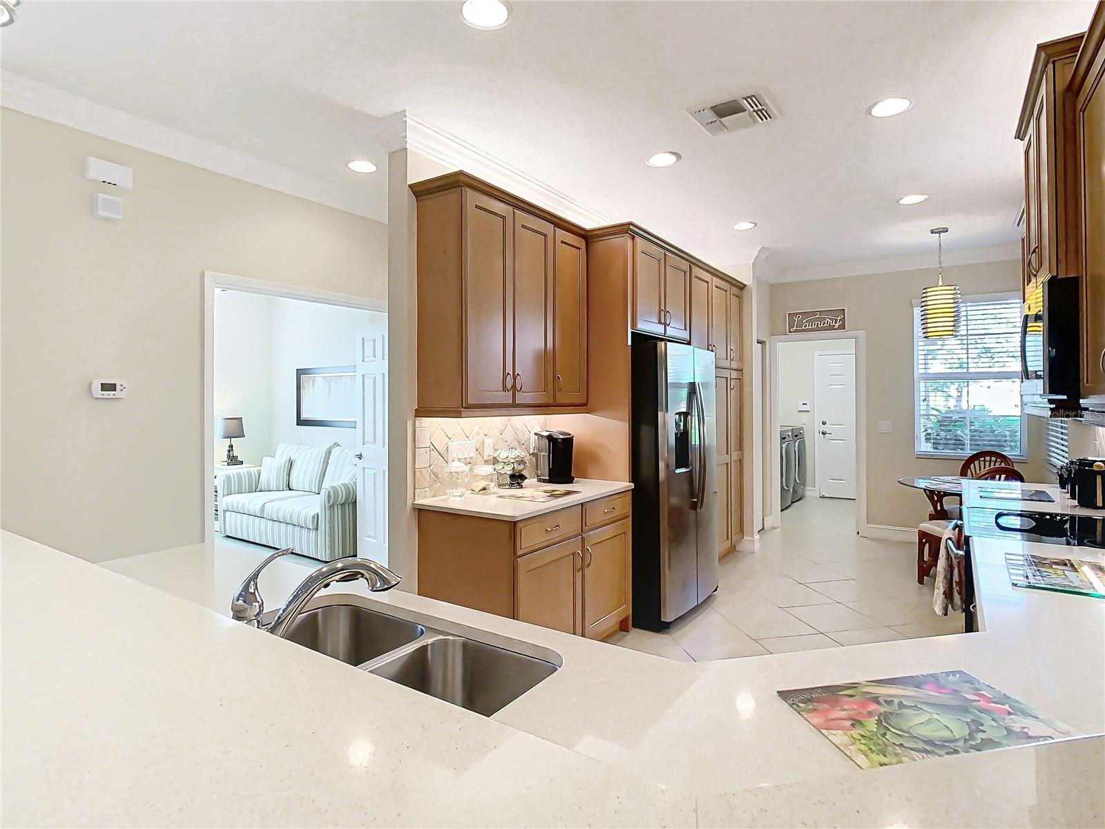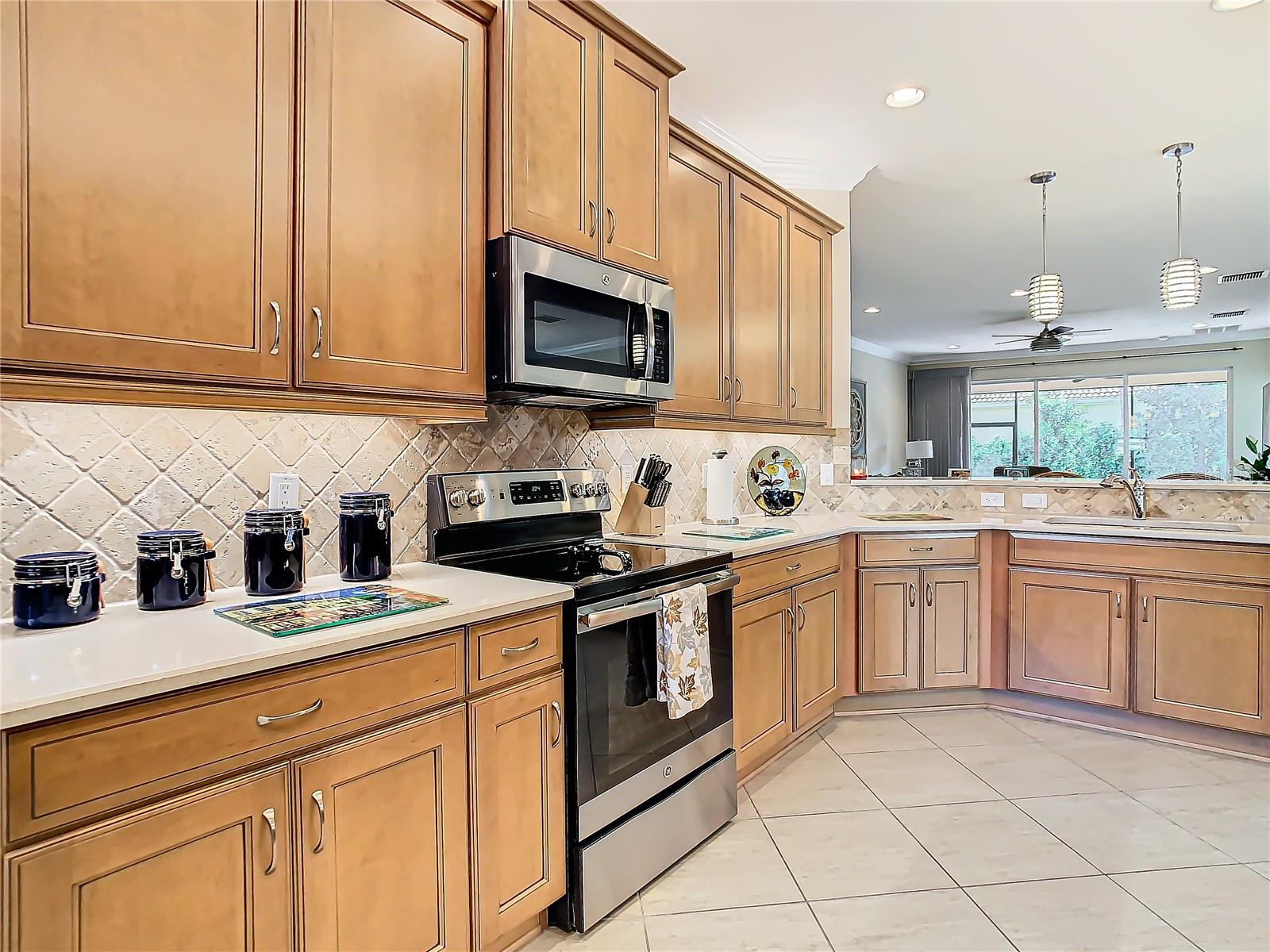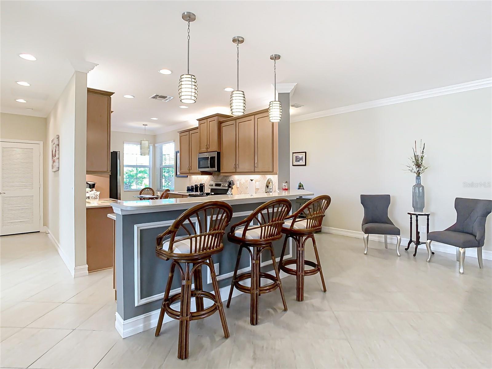 Localizada em uma das seções mais recentes dos lagos de Valência, esta excepcional modelo de Augusta Villa foi construída há apenas alguns anos e ainda tem essa “nova sensação em casa”! O local é único; é construído em um lote de canto muito grande e oferece um sereno Vista de água procurada e quintal privado nas costas e um quintal de frente bem cuidado com fronteiras decorativas de concreto ornamental. A verdadeira propriedade de primeira classe Os BDRMs primários e do 2º lugar são acertados. backsplash de qualidade de ladrilhos de tumblestone 4x4. A barra de servir elevada é estendida por 18 ”para assentos adicionais. Os aparelhos de aço inoxidável da GE atualizados incluem um fogão, microondas, geladeira de porta dupla, nova máquina de lavar louça LG e novo descarte de lixo. A cozinha de Maplewood-Pecan 42 "armários apresentam iluminação sobre/sob o gabinete, moldagem de coroa, sistema de deslizamento de gavetas com uma despensa de gabinete embutida e personalizada com gavetas de lançamento. Muito espaço para refeições informais. A Lista de infusão de vidro decorativo duplo tem um banco de canto embutido para o conforto e a mobilidade. Segmento de armários embutidos projetados profissionalmente com uma mesa e armazenamento de arquivos/livros. iluminação. A Utility Room possui arruela/secadora de carga frontal LG e um pia de utilidade. Todas as luzes e fãs foram atualizados com iluminação embutida adicional na sala de LV, BDRM primário, Den/3rd BDRM e Lanai! Recursos adicionais são um sistema de amaciador de água, persianas de furacões, pisos epóxi na garagem, aquecedor de água novo e um HVAC com habilmente mantido. Valência Lakes é uma comunidade de carrinho de golfe para adultos de 55 anos e mais ativa, com área de recreação ao ar livre de 40 acres com piscina aquecida no estilo resort, piscina de volta e resistência, 40.000 pés quadrados de clube, bistrô de luxo, em breve, har-tru tênis Tribunais, academia, basquete de meia quadra, pickleball e quadras de bocha, parque de cães, parque de beisebol, jardim comunitário, centenas de clubes e atividades, área de armazenamento de trailers/barcos. Mais de 100 acres reservados como preservação da natureza; Aproveite a tranquilidade e a solidão de vistas pacíficas, pássaros e vida selvagem pela água. Grande senso de comunidade com grandes vizinhos amigáveis. Por favor, ligue para uma exibição particular e experimente esta comunidade maravilhosa por si mesmo. Tampa, St. Pete e Sarasota a 30 a 45 minutos. Perto do aeroporto, instalações médicas, compras e golfe.