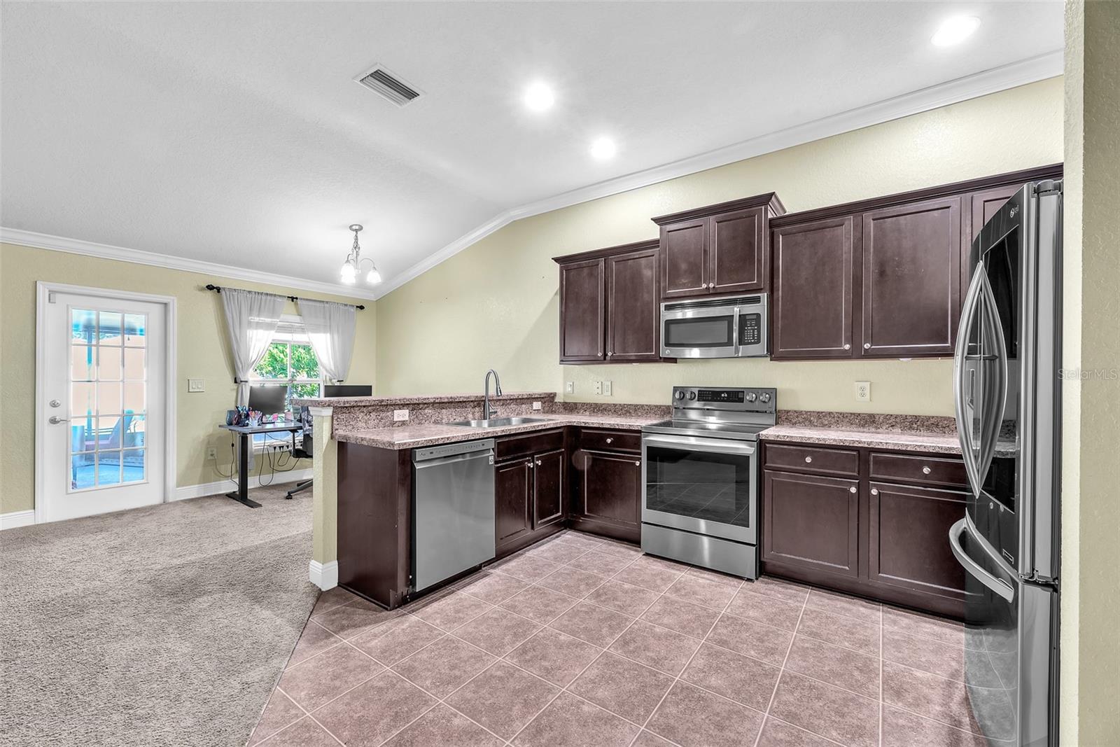 Bem -vindo a Ayersworth Glen. Esta linda história de 2123 pés quadrados oferece 4 quartos, 2 banheiros, garagem de 2 carros e um coberto de grandes dimensões e exibido em Lanai. A cozinha possui belos armários de madeira, utensílios de aço inoxidável, luzes embutidas e estão abertas para a grande sala e o canto do café da manhã. Os quartos estão em um plano dividido para muita privacidade. Fora da sala de jantar formal, fica o quarto principal com dois armários. O banho principal inclui uma vaidade de pia dupla e uma combinação de banheira/chuveiro. Os quartos 2 e 3 estão divididos entre um banho completo. O quarto 4 possui portas duplas e pode ser usado como um estudo particular ou área de estar, se desejar. A moldura da coroa está localizada em todas as áreas de estar. A lavanderia inclui LG Washer & Secer mais recente. A frente da casa inclui uma triagem na área da varanda com belo paisagismo e coalhada de concreto. O quintal tem um enorme 16x35 'coberto/rastreado em Lanai com conexões de ventilador e duas portas de entrada. O quintal é totalmente cercado e oferece uma variedade de árvores frutíferas (banana, manga e goiaba) e um belo galpão de armazenamento de tamanho. Esta comunidade apresenta uma grande piscina de estilo resort, parque de cães, quadra de basquete, clube e fitness center. Fácil acesso à I-75, compras, restaurantes e uma rápida viagem para o centro de Tampa ou USF. Venha ver esta linda casa hoje!
