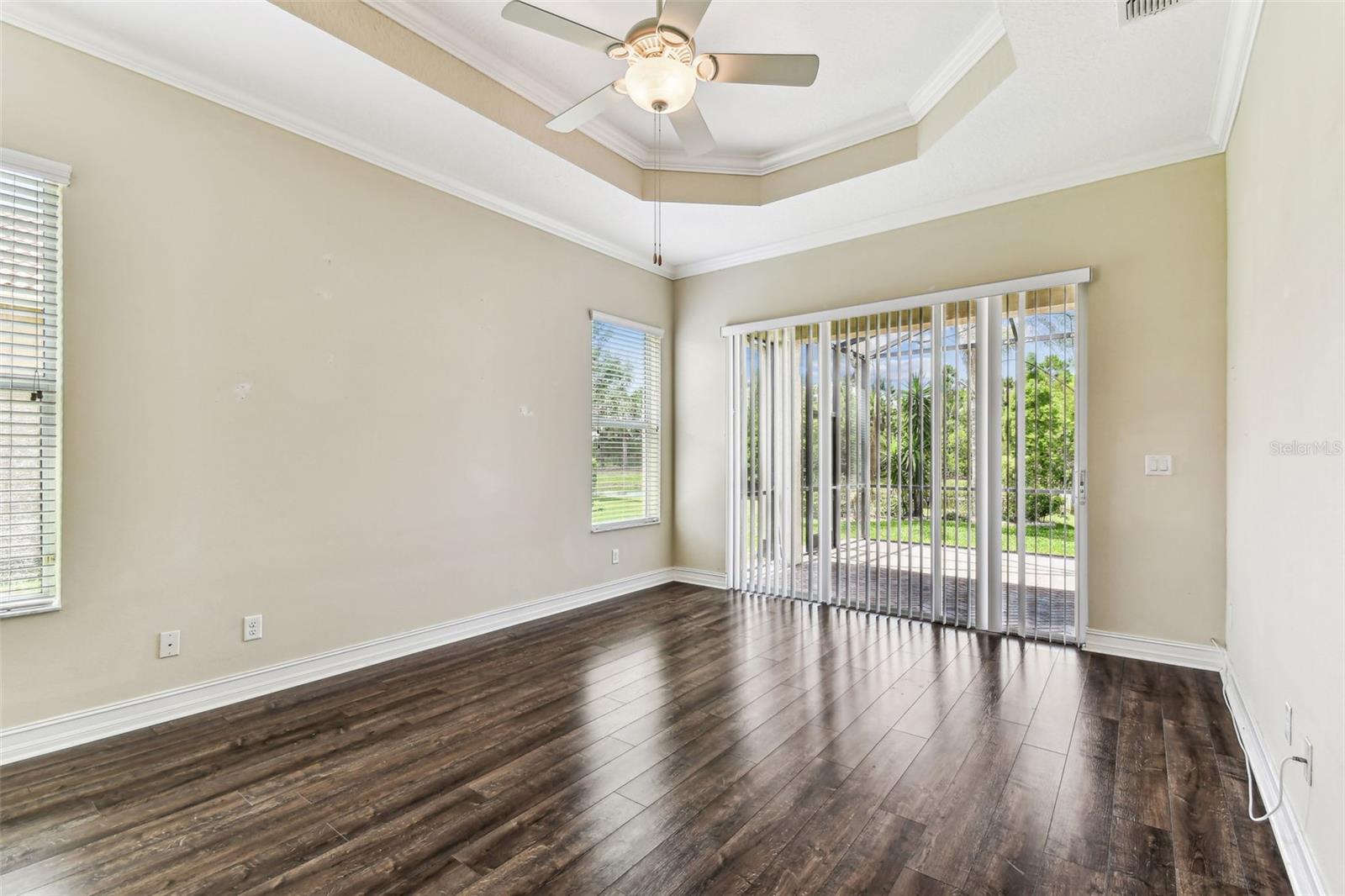 O Pride of Propriedade mostra ao longo deste modelo GL Homes Florence, localizado em impressionante Valência Lakes, um dos principais 55 comunidades adultas de Tampa Bay. A casa tem 3 quartos, 2 banheiros e um piso plano aberto, com vistas para a lagoa, tanto da Lanai estendida e da suíte do proprietário. Puxando para a casa, você notará a garagem da pavimentadora e o paisagismo atualizado com bordas de tijolos. Entre pela porta frontal de vidro de comprimento total e seja recebido no vestíbulo com um teto alto de 13 ', moldagem por coroa e ladrilhos de cerâmica diagonais grandes que estão no total, mas dois quartos. À direita do hall de entrada, na frente da casa, fica o segundo quarto com piso de vinil com efeito de madeira de luxo, que tem janelas de sacada com persianas com vista para o jardim da frente e a lagoa adjacente. Ao lado do quarto há dois armários de linho para armazenamento adicional e o banheiro secundário com uma pia de granito e banheira com chuveiro acima. O terceiro quarto de tamanho generoso (ou escritório) possui um armário embutido e portas francesas duplas. À frente do hall de entrada, está a planta baixa dos modelos de Florence, que possui uma sala de jantar, cozinha, lanchonete e sala de estar. The Dining room has wainscoting, a modern light fixture, mirror and will comfortably fit a table for 8. The gourmet Kitchen features decorative wainscoting, recessed lights, 42” solid wood and glass cabinetry with above and below lighting, including a built-in pantry, granite counters including a large island with room for multiple barstools, double sinks and stainless-steel appliances! The Dinette with bay windows is an ideal space for both routine and Refeições íntimas da sala de estar com iluminação computada, alto-falantes de som surround e controles deslizantes triplos para o lanai pavimentado totalmente estendido com belas vistas para o jardim e o lago. Os balcões de quartzo, um banheira de imersão em jardim, um grande chuveiro com ladrilhos de teto acentuado por ladrões de listagem, bancada de assento e barra de garagem. Sabendo que o gramado e os jardins do seu lote de canto serão habilmente bem cuidados pelo HOA. Pickleball courts, 6 USTA clay tennis courts, 4 Bocce lanes, 4 Shuffleboard lanes, one of the area’s best softball fields, basketball half-court, RV and Boat storage facilities, community Garden and a dog park!. It's conveniently located just minutes from medical facilities, shops, restaurants and I-75, with quick access to downtown Tampa, Tampa airport, cruise ports, and a Pletora das melhores praias do país em Sarasota, Clearwater e São Petersburgo.