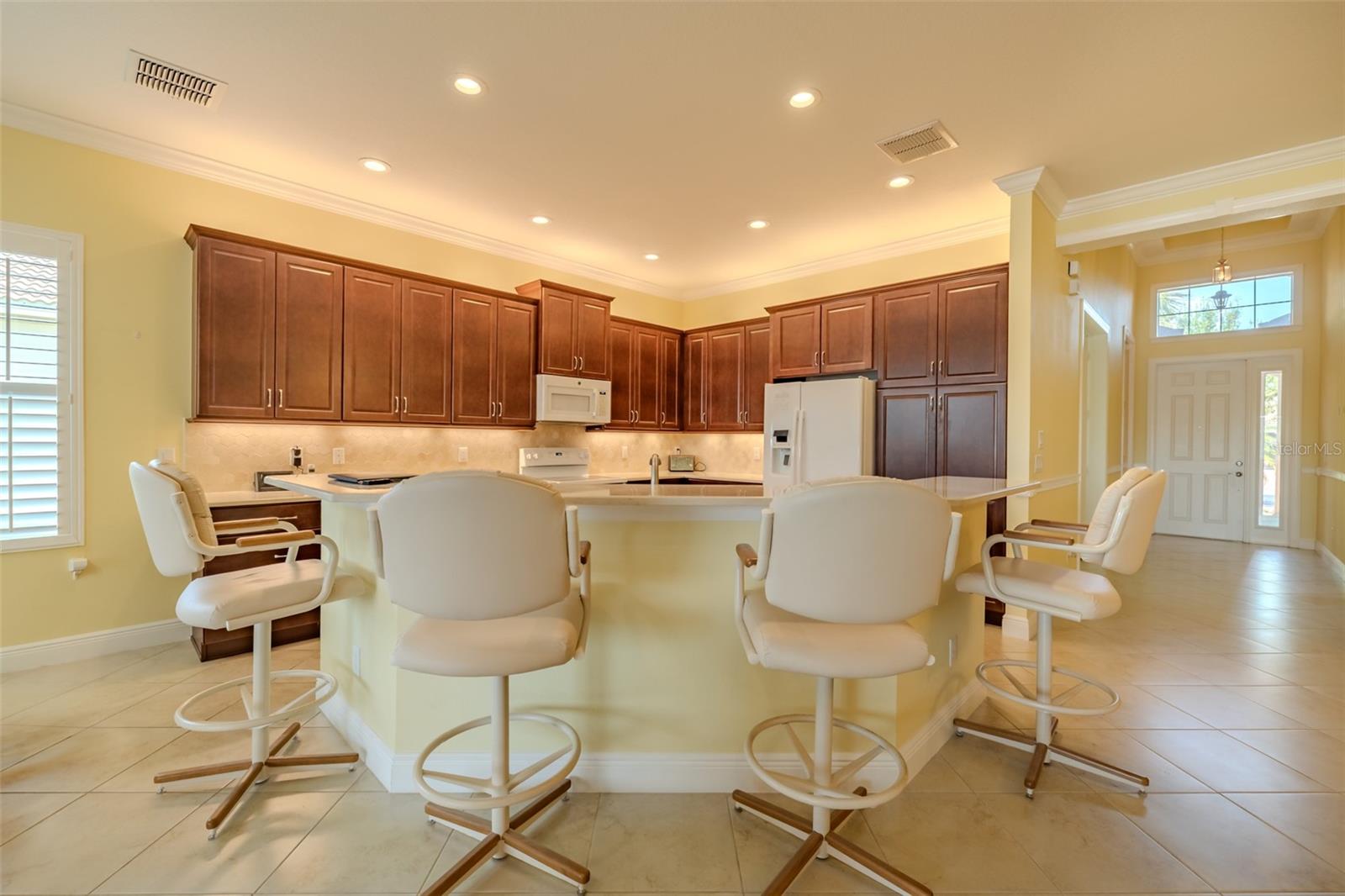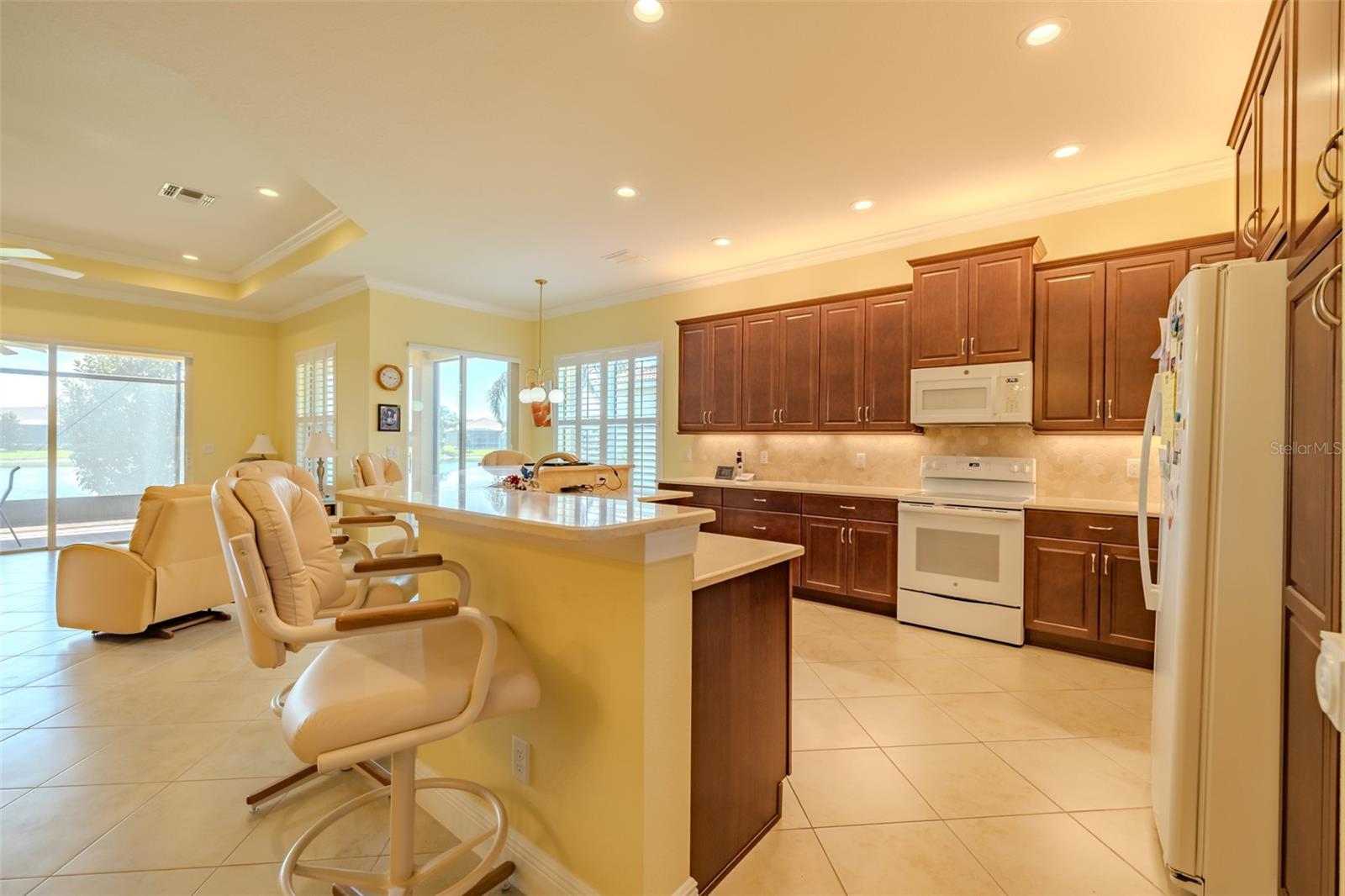 Aproveite este dia e comece a viver sua vida idílica em Valência Lakes, a principal comunidade adulta ativa de Tampa Bay. Este modelo Barbados Build Homes 2018 oferece 2.268 SF sob A/C, uma sala de tela/tela muito grande com uma tremenda vista para a água oeste e uma garagem para 3 carros. Na aproximação, observe o paisagismo amigável da Flórida, o extenso espaço entre as casas, a entrada de automóveis de largura total, as persianas de acordeão e a frente e os fundos da casa. Este Barbados tem um apelo de rua discretamente bonito. Ao entrar na casa, um hall de entrada com um imponente teto de bandeja de 13'-14 'oferece um espaço de boas-vindas especial e uma vista maravilhosa para dentro e através da casa. Moldagem da coroa e Millwork personalizados são executados em toda a casa. A direita do hall de entrada é o quarto 2 que possui um ventilador de teto iluminado, persianas de plantações na janela da sacada e um armário personalizado. À frente deste Bedrom está um banheiro completo de três peças. O meio do caminho e a direita do hall de entrada é o terceiro quarto que apresenta duplas francesas, um closet personalizado e um ventilador de teto. Pode ser um ótimo espaço para moda como escritório ou covil. Como você optará por utilizar este espaço? A frente do hall de entrada está um planta aberta que oferece uma sala de jantar, sala grande, cozinha e lanchonete. A sala de jantar apresenta um lustre lindo formado em vidro de depressão rosa vintage acentuado com ouro, destacando um espaço confortável que acomodará confortavelmente 8 pessoas. A frente da sala de jantar está uma grande sala grande que apresenta um teto de bandeja de 10'-11 'com um ventilador de teto, uma porta de vidro deslizante de 12' adornado com um tom deslizante retrátil. Adjacente à grande sala está a lanchonete que é um espaço perfeito para refeições diárias ou íntimas. A Dinette se repete com luz natural fornecida por uma porta de vidro deslizante e uma grande janela. A cozinha possui uma ilha de trabalho com uma barra de café da manhã de contra-altura, uma pia dupla de bacia e amplo espaço. Armários de bordo sólidos de 42 ”com 4 gavetas de panela e uma despensa com prateleiras deslizantes, utensílios GE, balcões de quartzo e um backsplash arabesco de pedra tornam esta cozinha funcional e bonita. O quarto principal está na parte traseira da casa, e oferece uma excelente separação dos outros dois quartos. O teto e um maravilhoso banheiro privativo Os confortos são assegurados por um HVAC de vários estágios do Goodman, um sistema de amaciador de água de Culligan e um novo aquecedor de água de 50 galões.